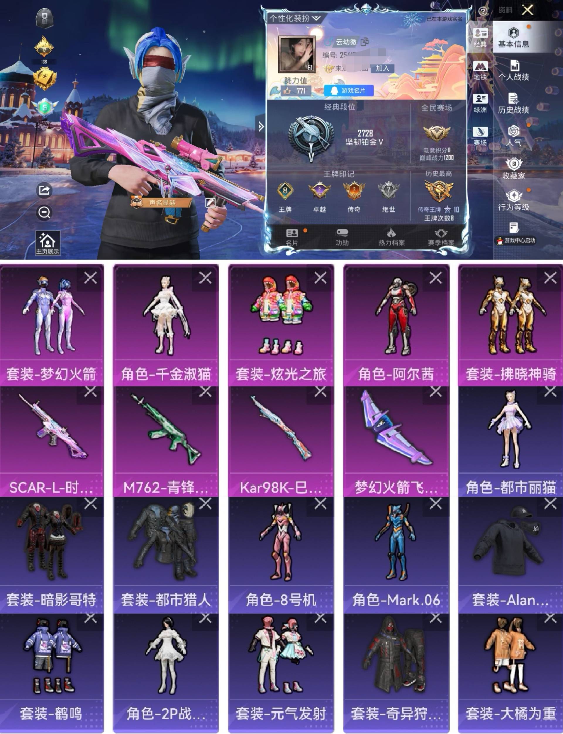 [14285487]h6476伤感网络男神身法素材号 无二次 苹果q-段位铂金 8印记 141套装199呛皮 【5粉装】 梦幻火箭 拂晓神骑 炫光之旅 阿尔茜 角色-千金淑猫 【3特效呛】 scar-l-时空协奏 6级 m762-青锋波束 5级 kar98k-巳巳如意 5级 【热门】 都市猎人 暗影哥特 角色-8号机 角色-mark.06 角色-2p战斗服款 大橘为重 角色-都市丽猫 绒宝小鹅 角色-风铃 锦衣飞扬 铁血战翼 alan walker 奇异狩猎者 【1飞行器】 梦幻火箭飞行器 0违规