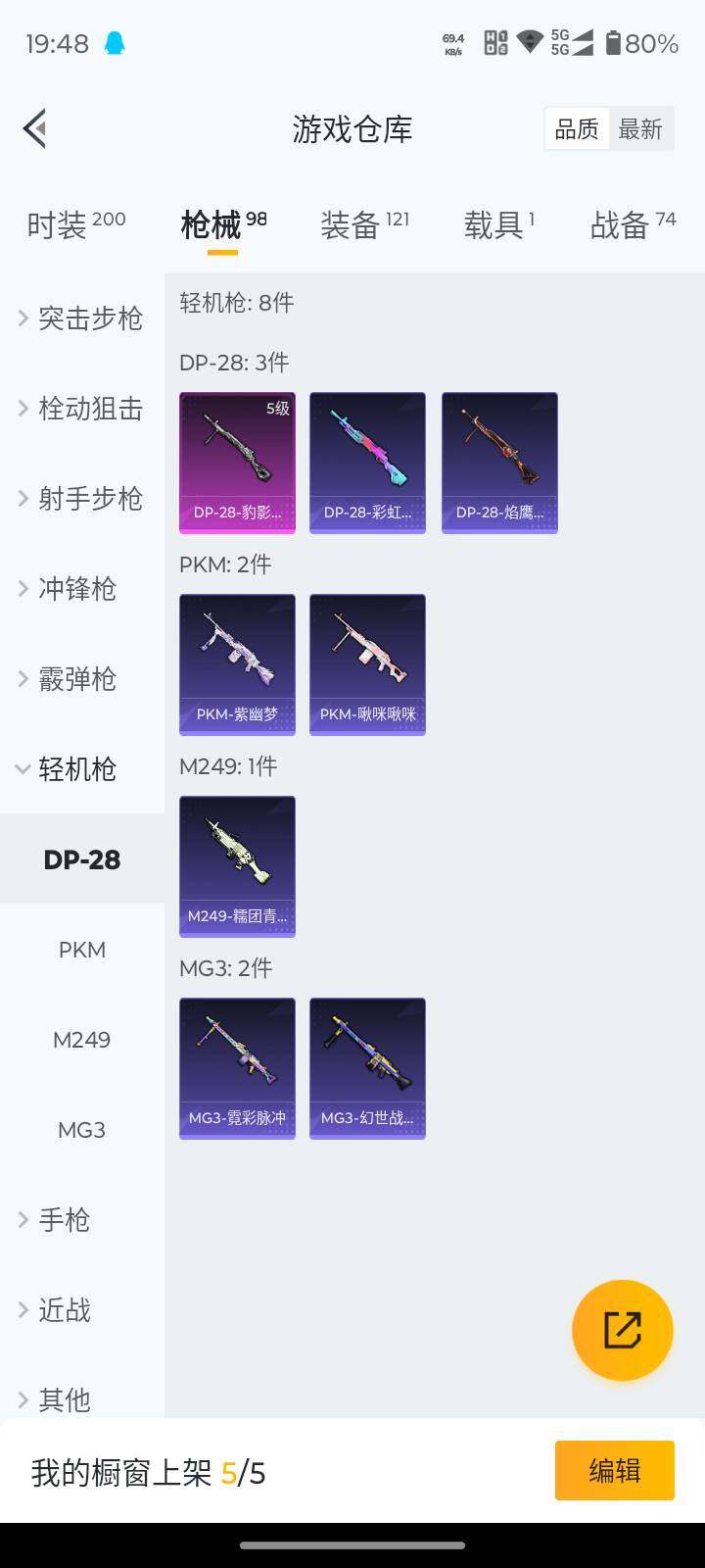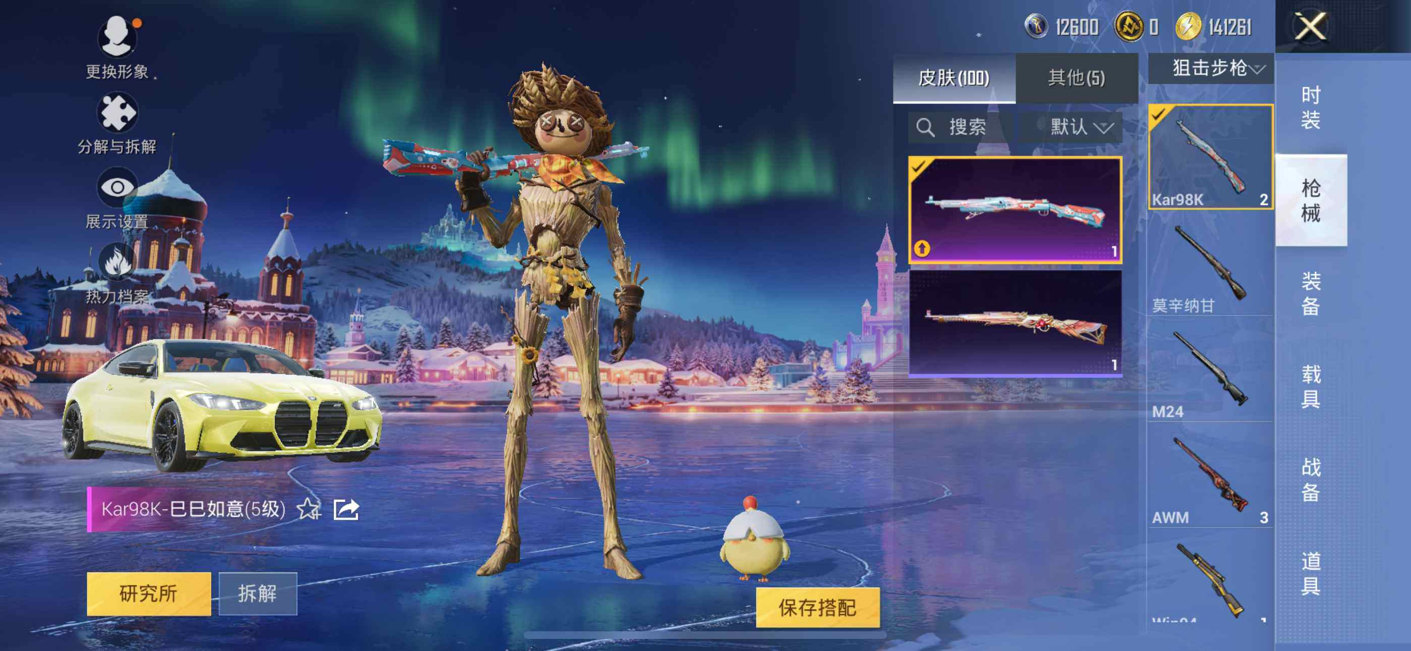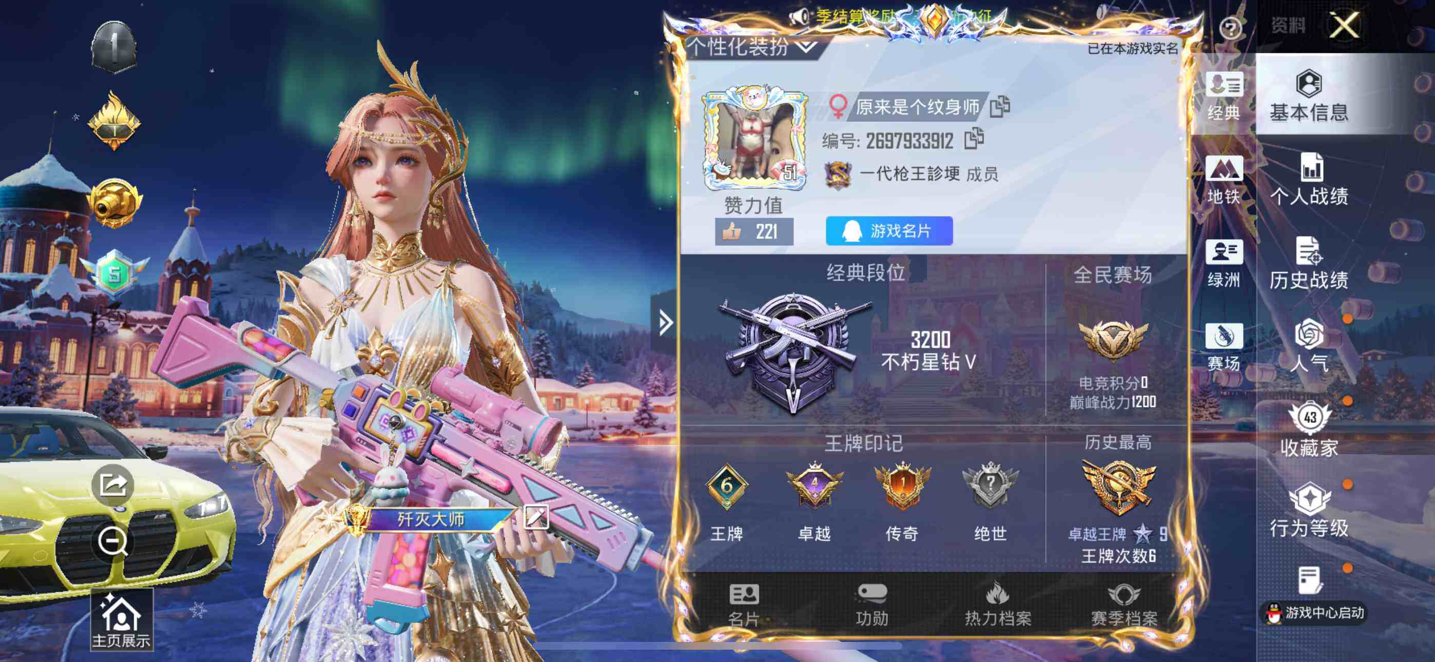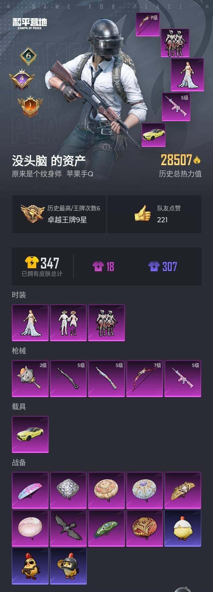 6014-3粉装-5特效呛-1载具-1粉色飞行器-28507热力值-6王牌印记-53套装-98呛皮 【热门品类】:角色-六号稻草人 【粉色载具】:宝马m4(圣保罗黄) 【粉色套装】:粉装-闪光银龙,粉装-牡丹亭·游园,角色-智耀战神 【粉色呛皮等级】:m416-电玩时刻五级,kar98k-巳
