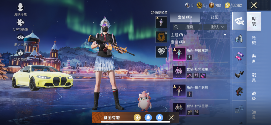【1载具1粉装1特效 宝马m4圣保罗黄】苹果q-1载具1粉装1特效呛2热门33套装52呛皮 15620热力值 3印记 历史超级王牌12星 【1载具】 宝马m4圣保罗黄 【1粉装】 异瞳寒姬 【1特效呛】 dp-28-豹影疾电 5级 【2热门】 呆萌铁蟹 破蛋小黄鸡 -区服:苹果手q-服饰币:7101-金币:100262-点券:5-当前热力值:15620-王牌次数:3-点券:5-时装