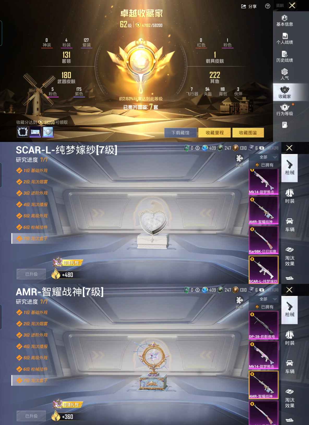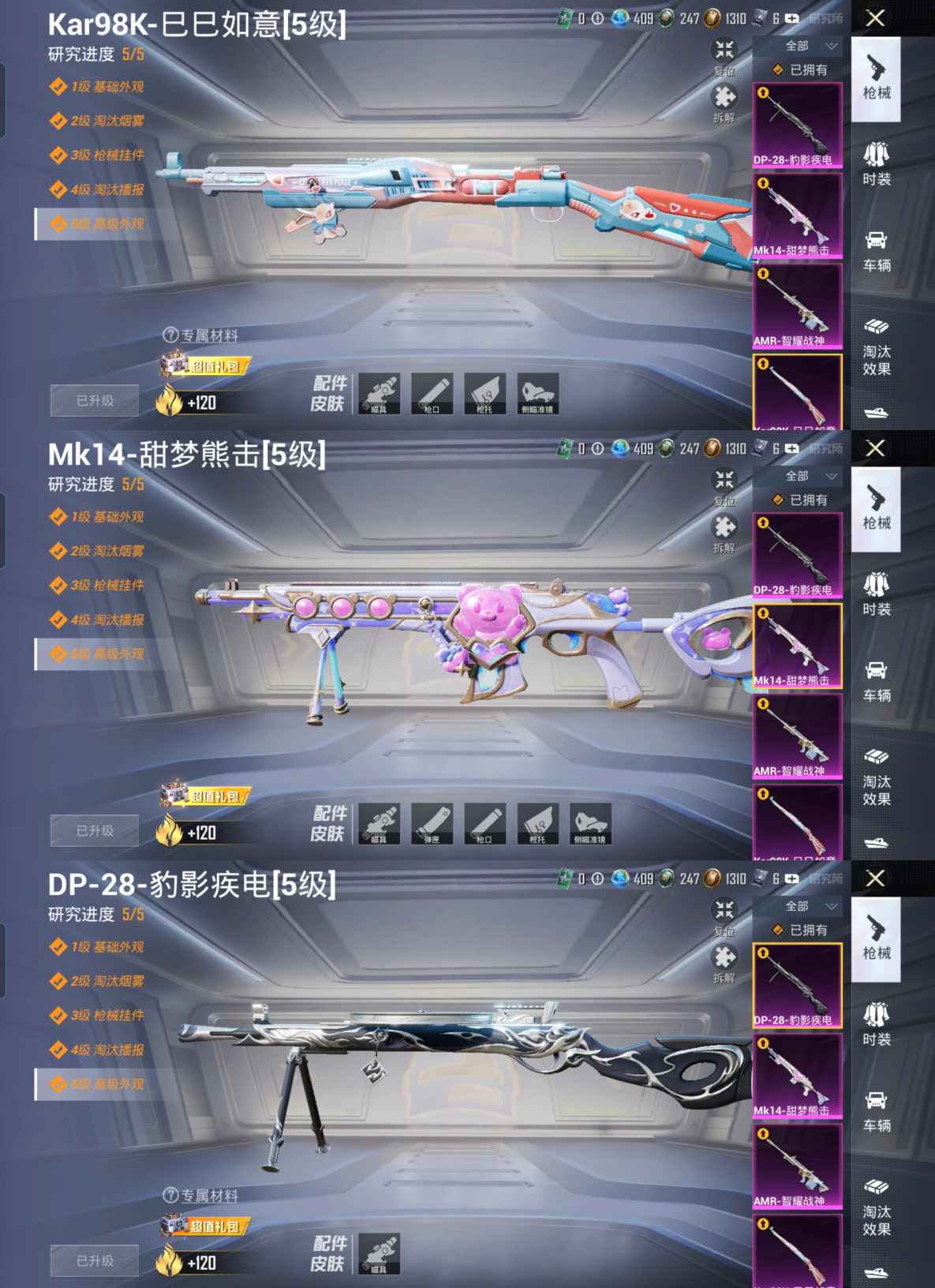 【1载具4粉装5特效 2b战斗服款 2p战斗服款 智耀战神-7级 纯梦嫁纱-7级】安卓q-1稀有1载具4粉装5特效呛4热门131套装197呛皮 62157热力值 9印记 历史超级王牌11星 【1稀有】 awm-黄金龙骨 【1载具】 玛莎拉蒂q蓝色 【4粉装】 异瞳寒姬 樱桃泡泡 炫光之旅 信仰神谕 【5特效呛】 scar-l-纯梦嫁纱 7级 kar98k-巳巳如意 5级 dp-28-豹影疾