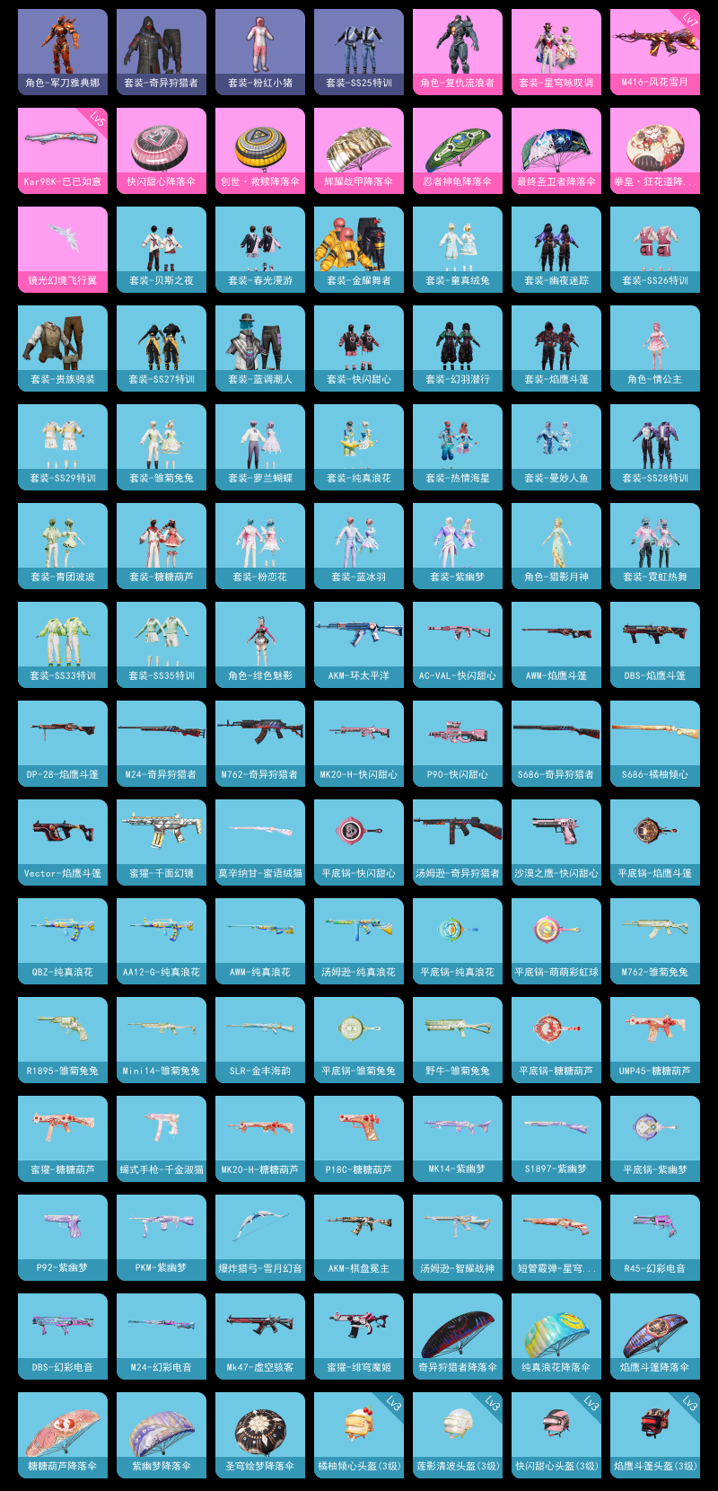 【和平精英】【txhp4510】2粉装,3特效呛,1载具,历史最高段位:绝世王牌15星 王牌印记9次 热力值:37603,78套装,119呛械,161装备,85战备;套装:角色-复仇流浪者,套装-星穹咏叹调,套装-特训学院,套装-黑色伏地魔,套装-竞技名士,套装-长空猛禽,套装-海岛探路者,套装-旭日情侣,套装-六六大吉,套装-贵族骑装,套装-燃烧卡路里,套装-魅力单车,套装-幻世保卫者,套装-森林游猎者,套装-奇异狩猎者,套装-金耀舞者,套装-蓝调潮人,套装-缤纷果语,套装-龙魂突击队,套装-元素星魂,套装-粉红小猪,套装-鹤鸣,套装-霓虹街区,套装-白熊同盟,套装-战术大师,套装-曼妙人鱼,套装-热情海星,套装-纯真浪花,角色-军刀雅典娜,套装-绯格组合,套装-王牌教练,套装-龟仙人,套装-ss25特训,套装-香桃花海,套装-冰河战士,套装-ss26特训,套装-快闪甜心,套装-春光漫游,套装-空岛之星,套装-童真绒兔,套装-贝斯之夜,套装-焰鹰斗篷,套装-幽夜迷踪,套装-幻羽潜行,套装-ss27特训,套装-恋语绒绒,套装-老实芭蕉,套装-ss28特训,角色-情公主,套装-海盐绵绵冰,套装-蝶变,套装-ss29特训,套装-雏菊兔兔,套装-萝兰蝴蝶,角色-绯色魅影,套装-异域银装,套装-星途旅人,套装-ss30特训,套装-青团波波,角色-光矢逐梦,套装-糖糖葫芦,套装-ss31特训,套装-智谋强哥,套装-紫幽梦,套装-粉恋花,套装-ss33特训,角色-猎影月神,套装-ss32特训,套装-蓝冰羽,套装-顶瓜瓜,套装-大橘大利,套装-霓虹热舞,套装-元气之梦,套装-ss34特训,套装-薄荷星砂,套装-ss35特训,套装-ss36特训,套装-萌鸡速递;呛皮:scar-l-玉兔迎春,scar-l-星途旅人,scar-l-海盐豹豹,akm-霓虹街区,akm-彩虹符号,akm-环太平洋,akm-棋盘冕主,akm-霓彩脉冲,蜜獾-千面幻镜,蜜獾-天降萌叽,蜜獾-糖糖葫芦,蜜獾-绯穹魔姬,蜜獾-乌木金纹,famas-霓彩脉冲,famas-乌木金纹,m762-奇异狩猎者,m762-彩虹符号,m762-雏菊兔兔,aug-天降萌叽,aug-异域银装,m16a4-冰河战士,7级m416-风花雪月,m416-夜灯,ac-val-天降萌叽,ac-val-快闪甜心,mk47-虚空骇客,q-彩虹符号,q-纯真浪花,groza-绯红回忆,groza-海盐豹豹,win94-乌木金纹,amr-乌木金纹,m200-乌木金纹,5级kar98k-巳巳如意,kar98k-彩虹符号,kar98k-顶峰精英,awm-天降萌叽,awm-焰鹰斗篷,awm-纯真浪花,m24-奇异狩猎者,m24-幻彩电音,莫辛纳甘-蜜语绒猫,slr-金丰海韵,slr-霓彩脉冲,mini14-炫彩节奏,mini14-香桃花海,mini14-雏菊兔兔,mk20-h-快闪甜心,mk20-h-星途旅人,mk20-h-糖糖葫芦,mk20-h-乌木金纹,vss-香桃花海,mk14-冰河战士,mk14-紫幽梦,mk14-薄荷星砂,m417-玩趣呆呆,uzi-天降萌叽,uzi-冰河战士,uzi-啾咪啾咪,uzi-炫彩糖果,p90-快闪甜心,p90-玩趣呆呆,p90-巳巳如意,p90-乌木金纹,aks-74u-鸡智如我,aks-74u-乌木金纹,ump45-生命誓言,ump45-海盐豹豹,ump45-糖糖葫芦,ump45-极意拳锋,vect-生命誓言,vect-焰鹰斗篷,汤姆逊-奇异狩猎者,汤姆逊-纯真浪花,汤姆逊-智耀战神,mp5k-乌木金纹,野牛-雏菊兔兔,dbs-焰鹰斗篷,dbs-幻彩电音,dbs-乌木金纹,aa12-g-纯真浪花,s686-奇异狩猎者,s686-生命誓言,s686-橘柚倾心,s686-巳巳如意,spas-12-狂鲨锋刃,spas-12-乌木金纹,s12k-霓彩脉冲,s1897-紫幽梦,s1897-糯团青竹,pkm-紫幽梦,m249-彩虹符号,m249-糯团青竹,5级dp-28-豹影疾电,dp-28-焰鹰斗篷,p18c-糖糖葫芦,沙墨之鹦-快闪甜心,蝎式手呛-千金淑猫,r45-幻彩电音,短管霰弹-星穹咏叹调,r1895-雏菊兔兔,p92-紫幽梦,平底锅-快闪甜心,平底锅-空岛之星,平底锅-焰鹰斗篷,平底锅-萌萌彩虹球,平底锅-纯真浪花,平底锅-雏菊兔兔,平底锅-糖糖葫芦,平底锅-紫幽梦,平底锅-属我最6,破片手留单-呆爆全场,破片手留单-星途旅人,破片手留单-拽到爆炸,破片手留单-巳巳如意,盐雾蛋-冰氧夏日,十子怒-异域银装,铝热弹-炫彩糖果,爆炸猎弓-雪月幻音;载具:仰望u7阿盖尔紫;降落伞:镜光幻境飞行翼,空岛之星尾迹,异域银装飞行器,顶峰精英尾迹; 详情看图18王牌印记 8.3w热力值 4粉(暗夜之虎)6特(满级至情)胖达头盔