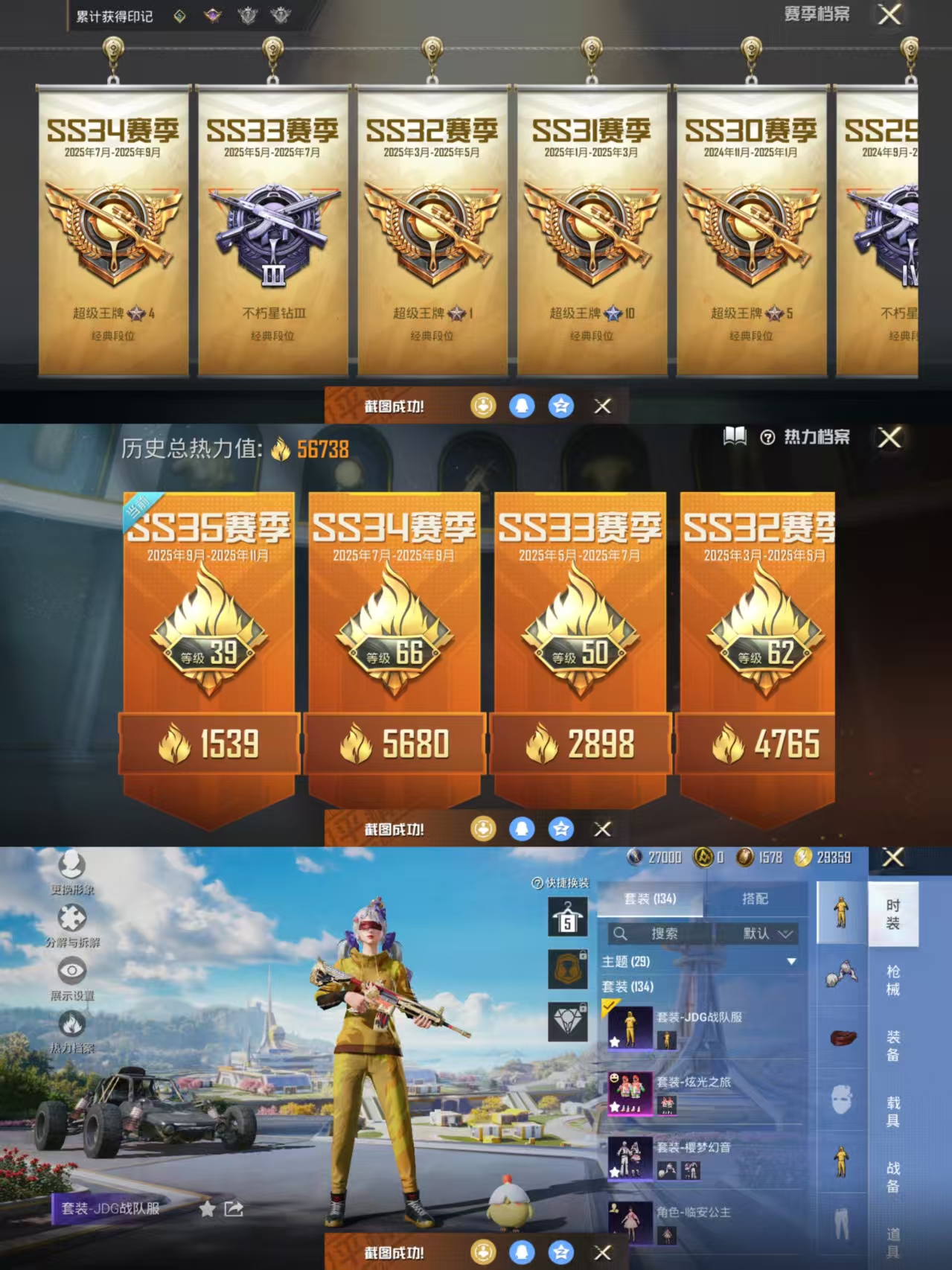 【2粉6特效】安卓q-2稀有2粉装6特效呛9热门134套装206呛皮 56738热力值 5印记 历史卓越王牌10星 【2稀有】 akm-缤纷海域 浪漫天命 【2粉装】 炫光之旅 星穹咏叹调 【6特效呛】 aks-74u-星穹咏叹调 5级 kar98k-巳巳如意 5级 dp-28-豹影疾电 5级 aug-暖羊咩咩 5级 pkm-天星战神 7级 groza-镜光