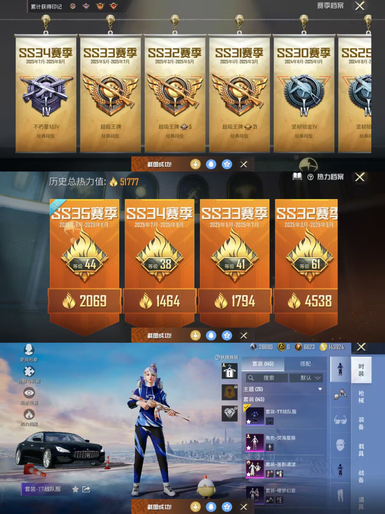 【素材号1载具2粉3特效】安卓q-1载具2粉装3特效呛8热门145套装170呛皮 51777热力值 10印记 历史绝世王牌21星 【1载具】 玛莎拉蒂q蓝色 【2粉装】 荧海星豚 莲影清波 【3特效呛】 kar98k-巳巳如意 5级 dp-28-豹影疾电 5级 aug-暖羊咩咩 5级 【8热门】 龟仙人 迅捷狂鲨 tt战队服 团圆交子 瑞龙福将 破蛋小黄鸡 极速红龙