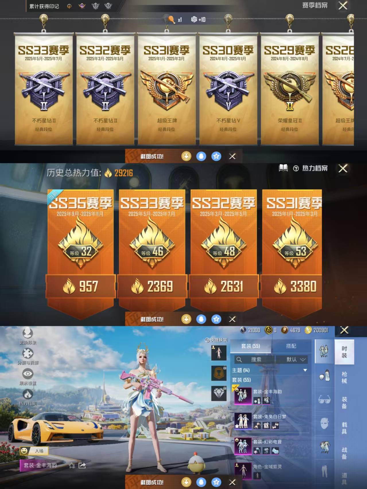 【1载具3粉装4特效呛身法号】安卓q-2稀有1载具3粉装4特效呛3热门55套装91呛皮 29216热力值 2印记 历史卓越王牌11星 【2稀有】 akm-缤纷海域 浪漫天命 【1载具】 路特斯ev黄色 【3粉装】 金丰海韵 金域紫灵 幻彩电音 【4特效呛】 m416-电玩时刻 5级 kar98k-巳巳如意 1级 ump45-量子极限 5级 kar98k-创世救赎
