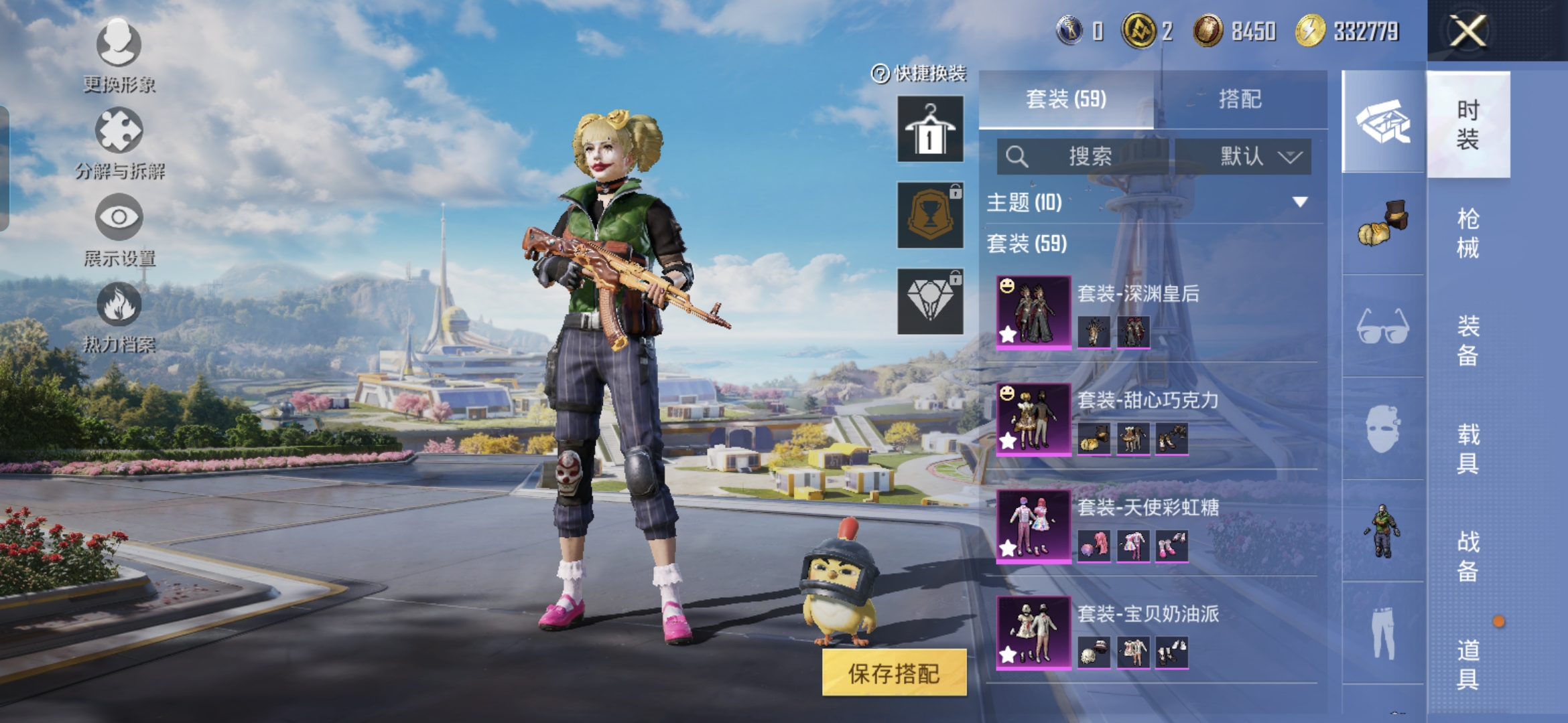【身法号 巧克力三姐妹 狂徒小丑 裁决冥王 深渊皇后 荒野猎神】安卓q-5粉装3特效呛4热门59套装49呛皮 20754热力值 历史荣耀皇冠ⅴ 【5粉装】 宝贝奶油派 天使彩虹糖 甜心巧克力 深渊皇后 荒野猎神 【3特效呛】 akm-甜心宝贝 5级 kar98k-巳巳如意 3级 dp-28-豹影疾电 3级 【4热门】 雪山精英 爱崽白熊 狂徒小丑 裁决冥王 【2头盔