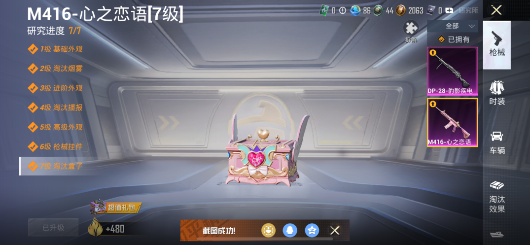 【1载具2特效呛心之恋语 7级】苹果q-1载具2特效呛2热门35套装48呛皮 18266热力值 6印记 历史超级王牌13星 【1载具】 仰望u9赤霞丹朱 【2特效呛】 m416-心之恋语 7级 dp-28-豹影疾电 2级 【2热门】 龟仙人 破蛋小黄鸡 【1背包】 梦幻火箭背包 炫彩糖果飞行器 仰望u9赤霞丹朱 m416-心之恋语 dp-28-豹影疾电 黑色