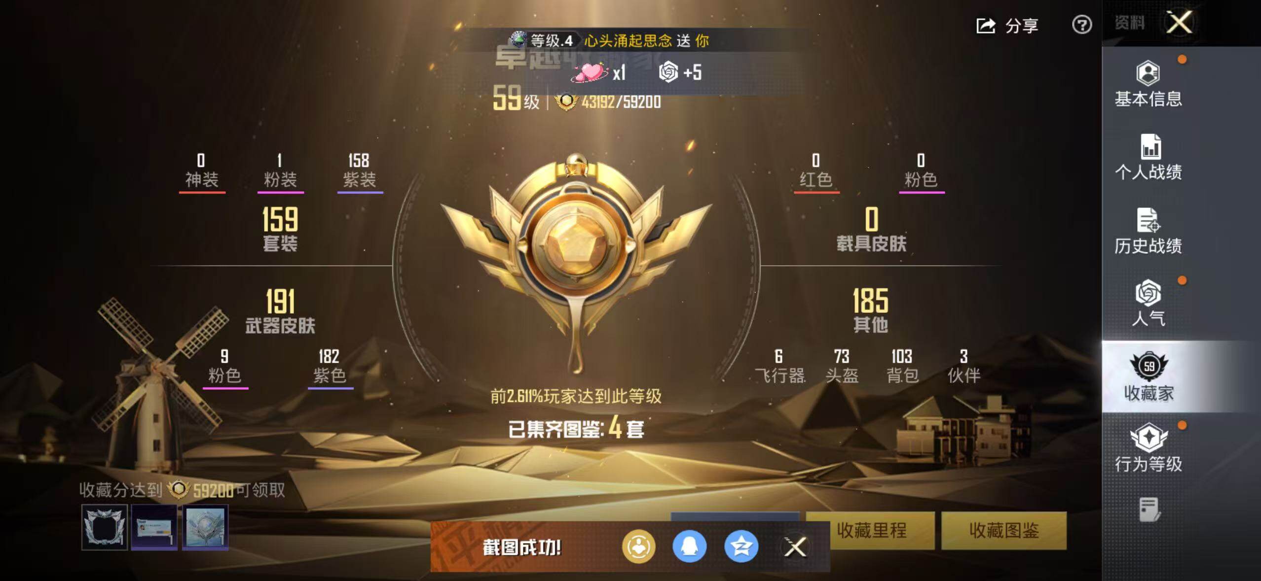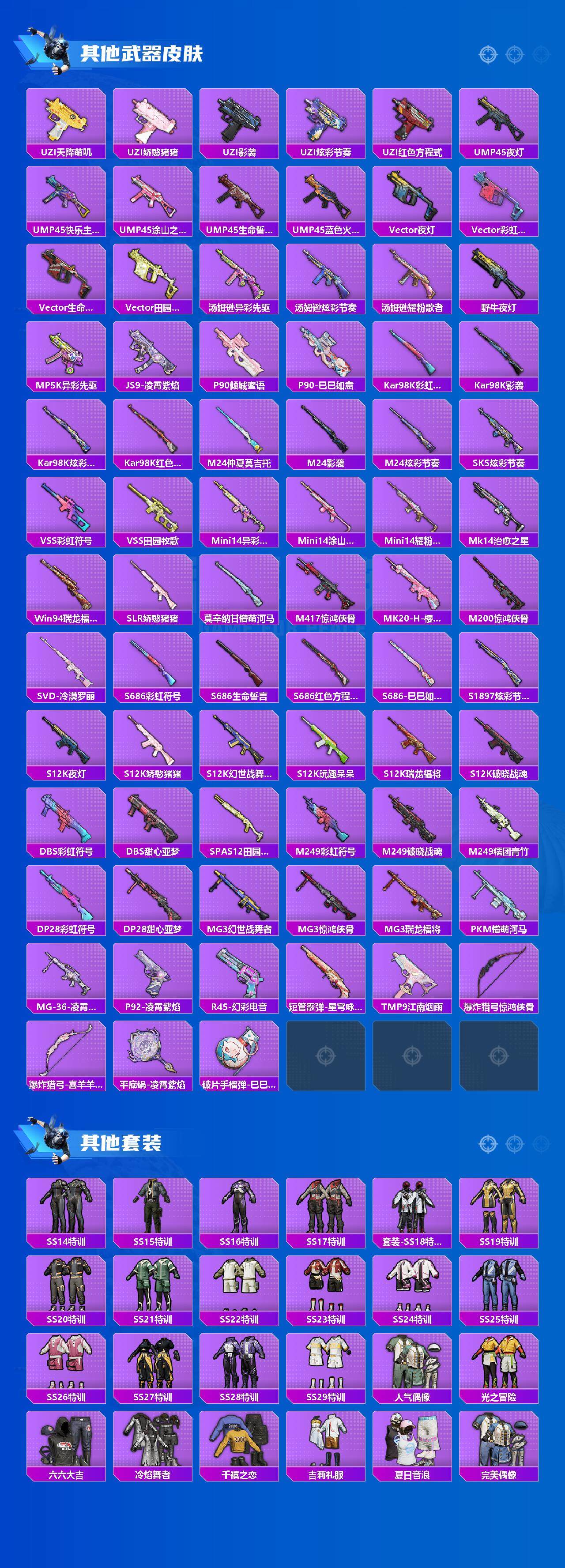 5966-1粉装-9特效呛-0载具-0粉色飞行器-58028热力值-13王牌印记-159套装-207呛皮 【热门品类】:套装-浪漫天命,套装-小丑鱼,角色-军刀雅典娜,套装-龟仙人 【粉色套装】:角色-烟云彩露 【粉色呛皮等级】:akm-绿萝繁花五级,scar-l-锦绣绵绵五级,m416