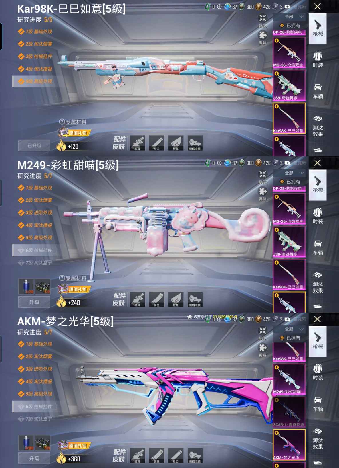 安卓q-1稀有10粉装9特效呛9热门176套装241呛皮 75380热力值 4印记 历史卓越王牌7星 【1稀有】 浪漫天命 【10粉装】 奇迹舞步美雪 凤凰座一辉 异瞳寒姬 未来歌姬 星穹咏叹调 花间之火 暗夜鎏金 冰霜白皇 炙焰红王 彩虹甜喵 【9特效呛】 m416-五爪金龙 6级 kar98k-巳巳如意 5级 mg-36-沧焰双生 5级 dp-28-豹影疾电