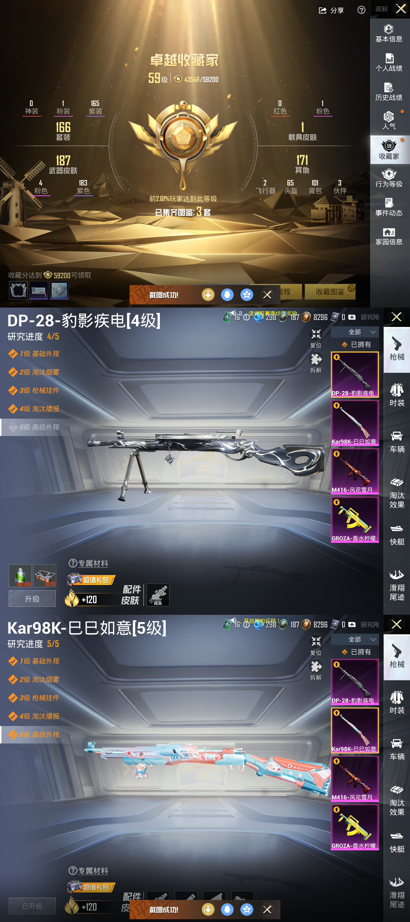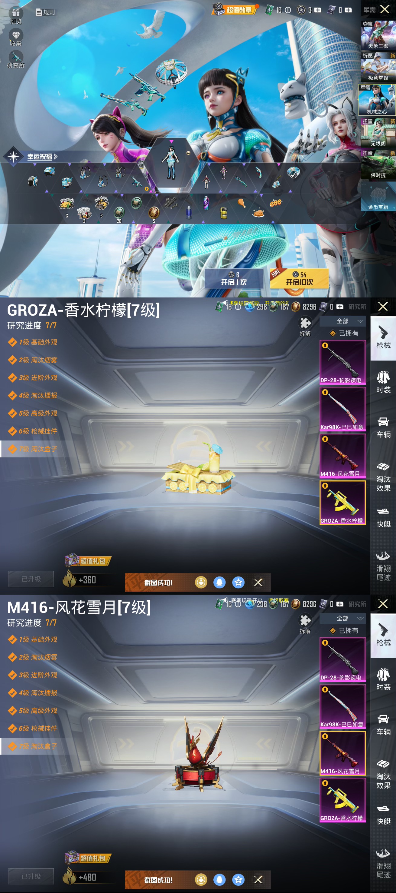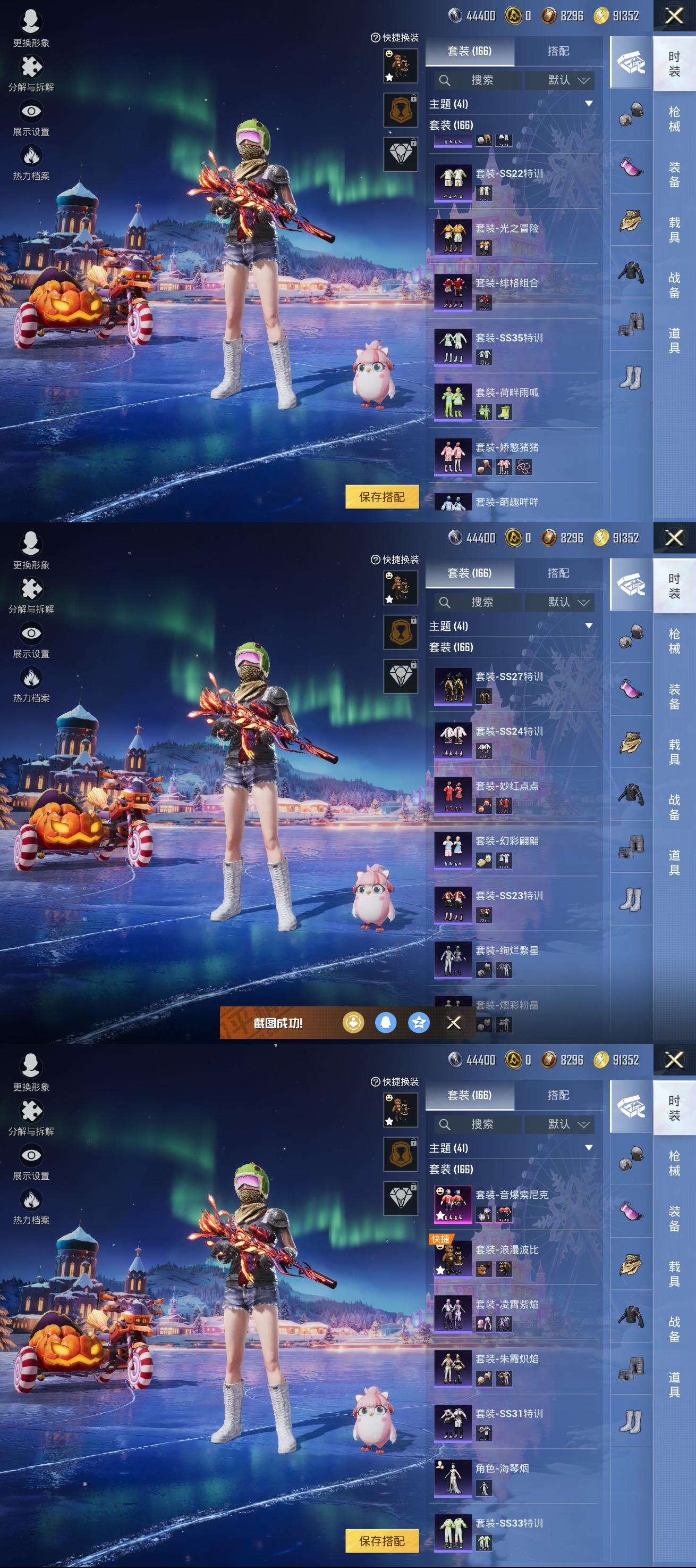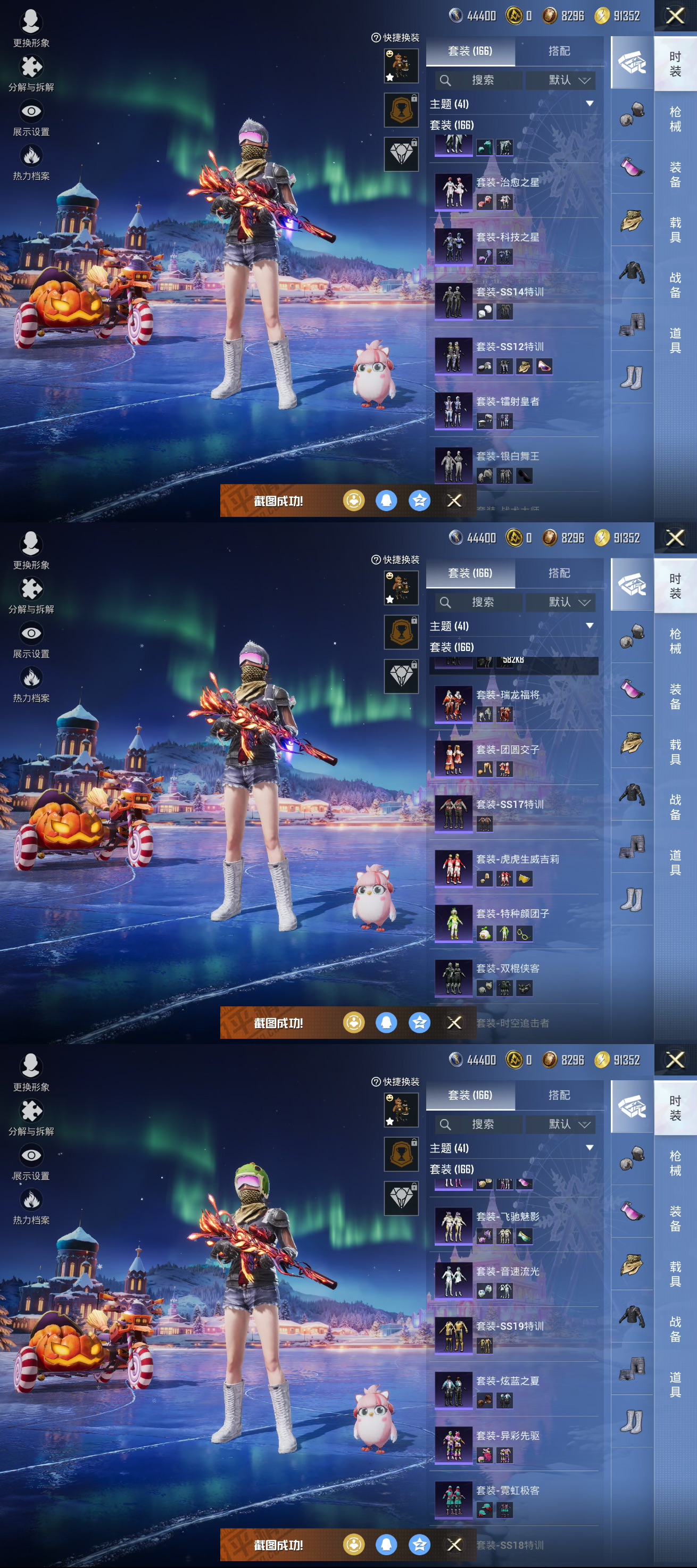 【1载具1粉装4特效】苹果q-1载具1粉装4特效呛14热门166套装216呛皮 64718热力值 9印记 历史超级王牌20星 【1载具】 鬼马风驰 【1粉装】 音爆索尼克 【4特效呛】 kar98k-巳巳如意 5级 dp-28-豹影疾电 4级 groza-香水柠檬 7级 m416-风花雪月 7级 【14热门】 小丑鱼 雪山精英 鹰眼刺客 浪漫波比 团圆交子 瑞龙