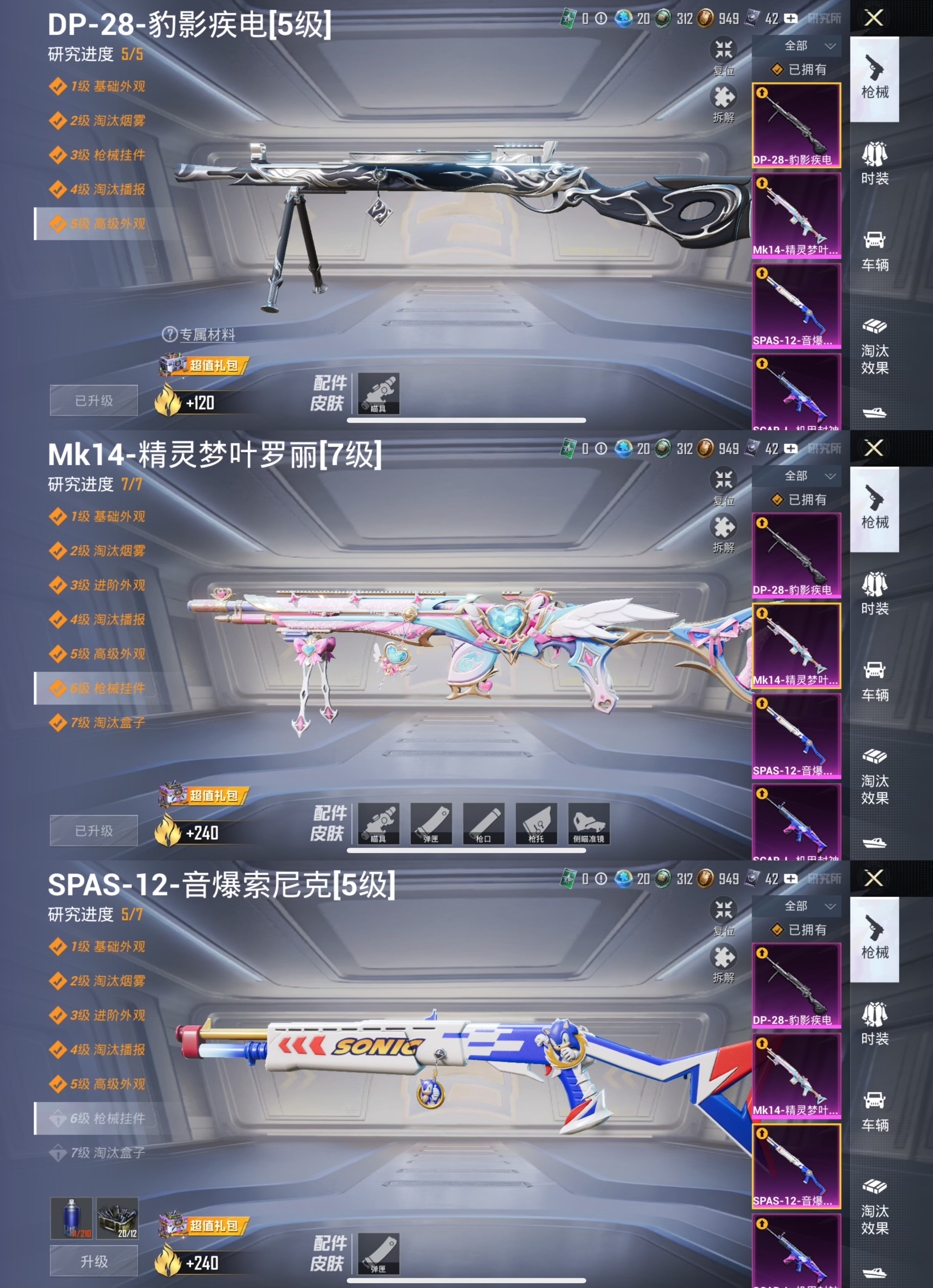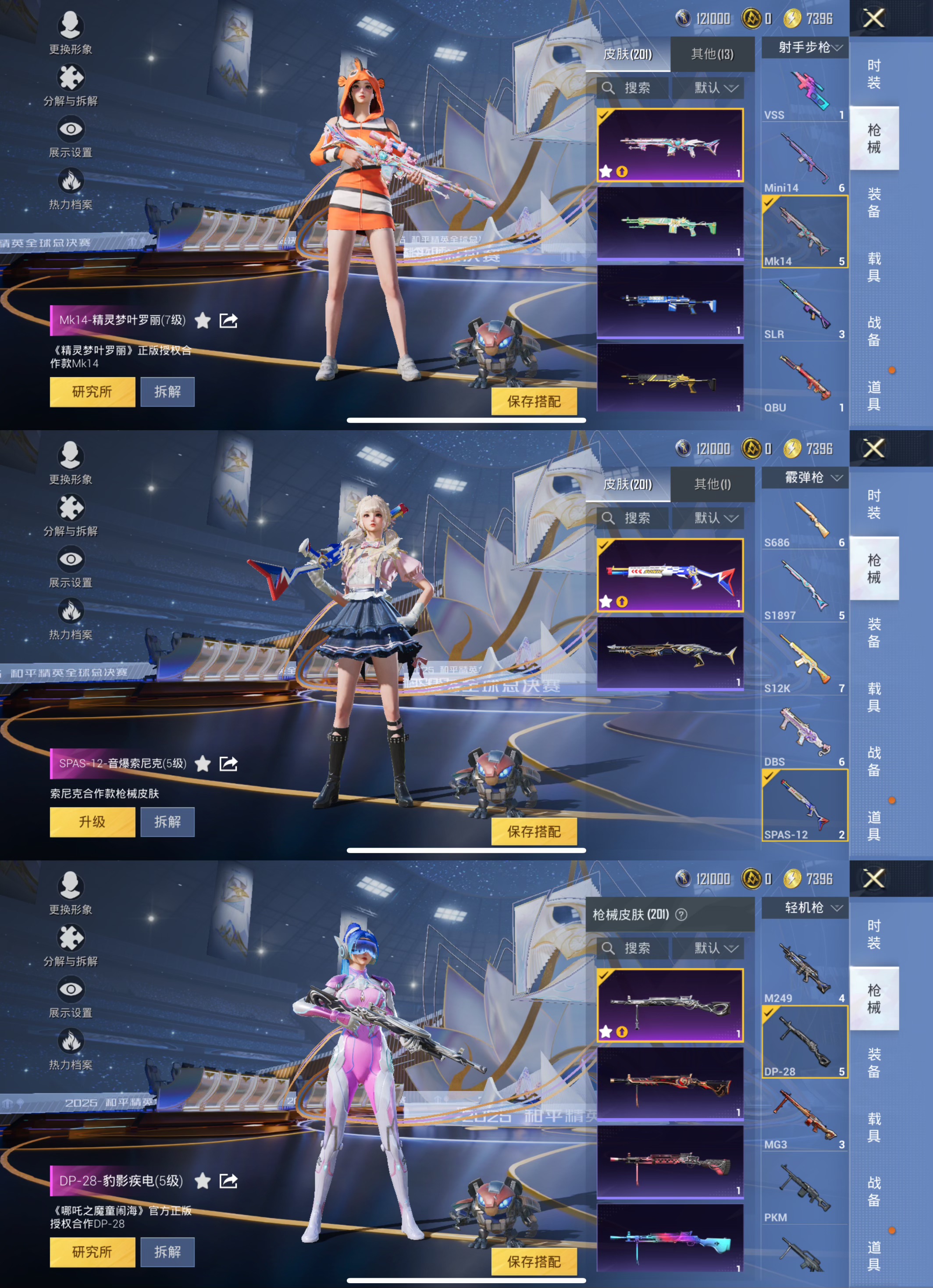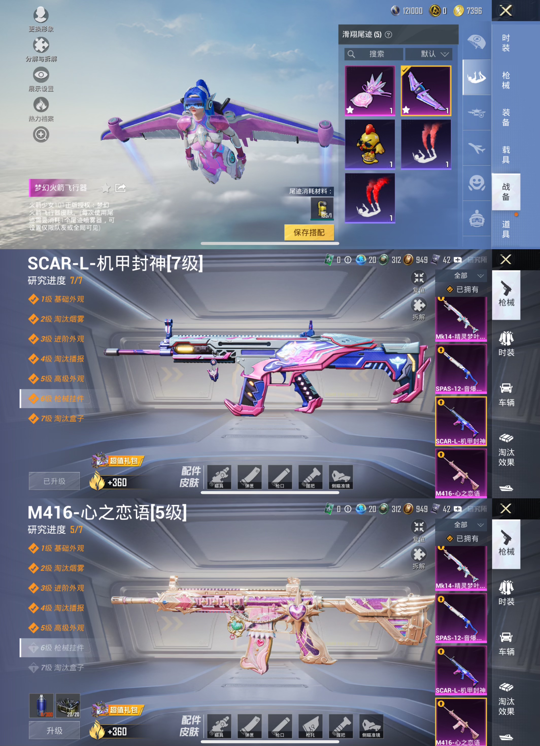 【6粉装5特效 梦幻火箭 小丑鱼 心之恋语 萌熊伴侣一套】 苹果q-6粉装5特效呛15热门146套装200呛皮 59963热力值 8印记 历史超级王牌17星 【6粉装】 梦幻火箭 小丑鱼 美雪 异瞳寒姬 创世救赎 呆萌星弥 【5特效呛】 m416-心之恋语 5级 dp-28-豹影疾电 5级 mk14-精灵梦叶罗丽 7级 spas-12-音爆索尼克 5级 scar