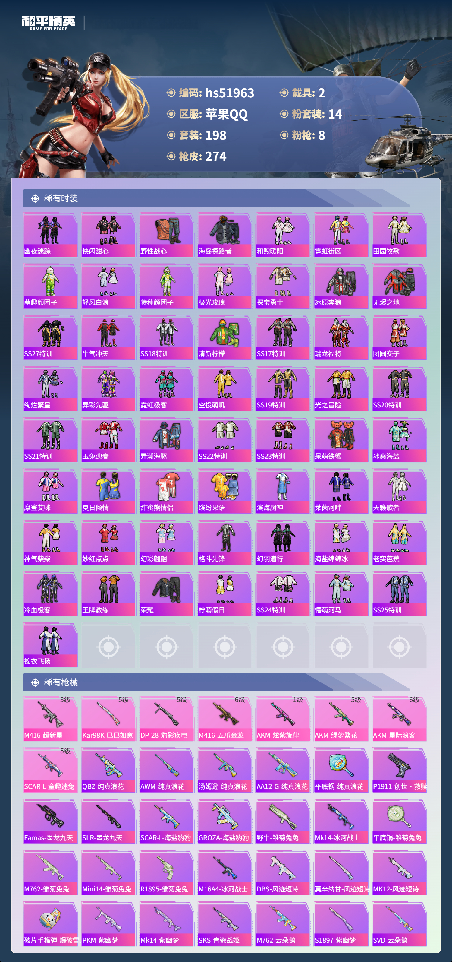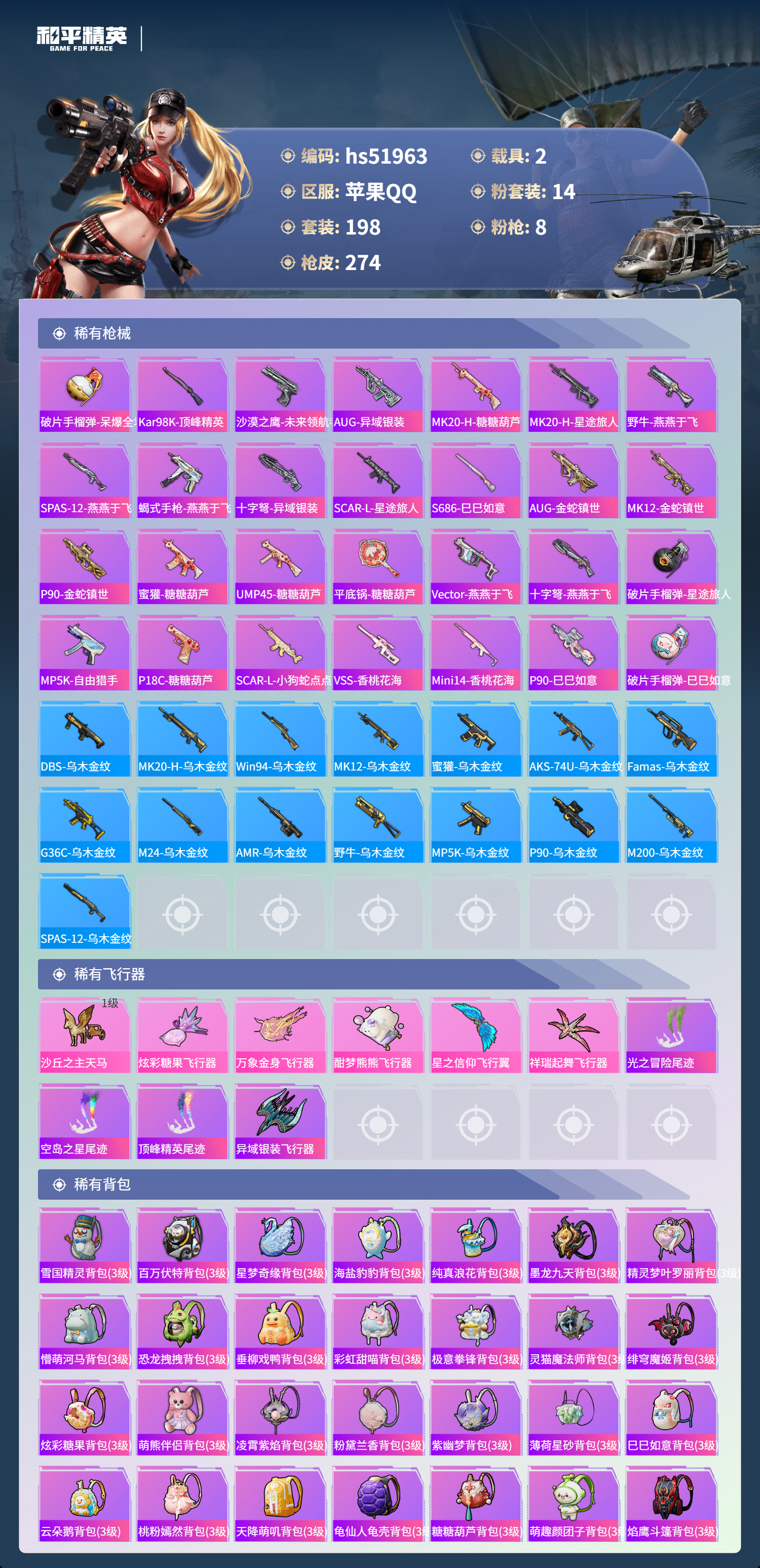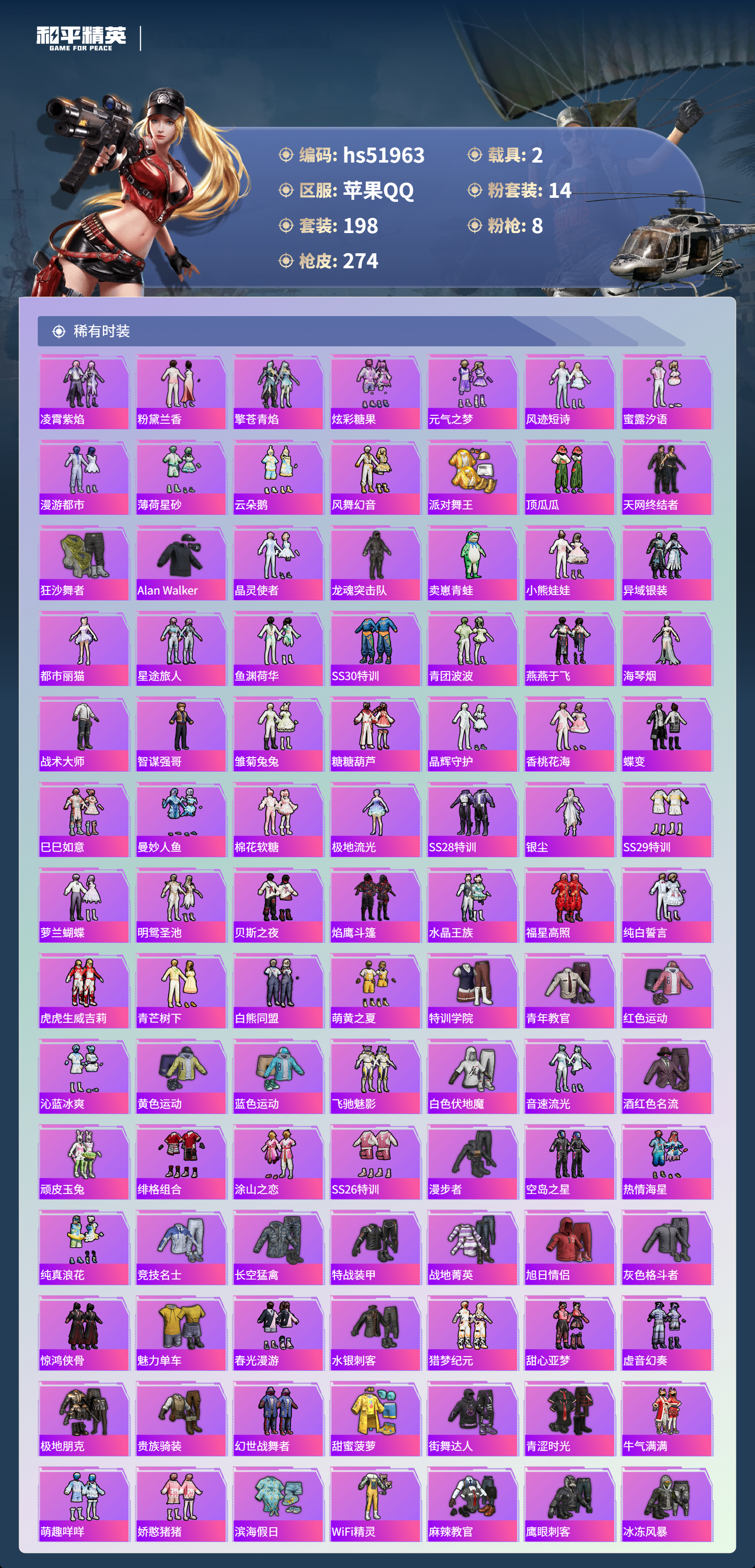 hs51963 苹果手q-18王牌印记-1红装-14粉装-8特效呛-2载具-95654热力值-198套装-274呛皮-4卓越印记-3传奇印记【1红装】沙丘之主-图卡盟/4级【14粉装】套装-怪诞乔克角色-樱桃泡泡套装-梦幻火箭套装-精灵娃娃套装-雪国幻梦套装-炙焰红王套装-极限特训角色-零号机款机体服套装-幻影战神套装-放客神游角色-异瞳寒姬套装-青空秋雨角色-白勺歌