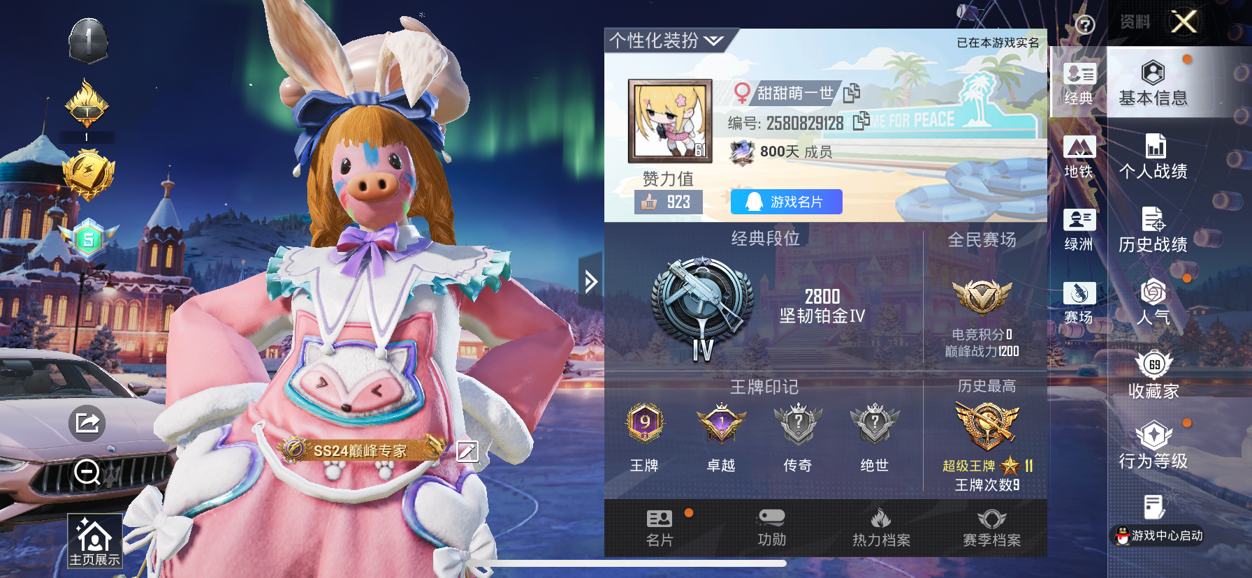 【和平精英】【txhp4520】22粉装,8特效呛,1载具,历史最高段位:超级王牌11星 王牌印记9次 热力值:67767,127套装,192呛械,275装备,112战备;套装:套装-宝贝奶油派,套装-天使彩虹糖,套装-缤纷油彩,套装-花间之火,套装-冰霜白皇,套装-童趣迷兔,套装-炙焰红王,套装-彩虹鹿灵,套装-山涧鹿灵,套装-蜜桃特工,角色-洛天依,套装-恐龙拽拽,套装-精灵娃娃,套装-酣梦娃娃,套装-傲雪凌霜,套装-甜梦小狐,套装-太空嘟嘟,套装-银红美神,套装-垂柳戏鸭,角色-歌者泠鸢,套装-暗夜鎏金,角色-千金淑猫,套装-特训学院,套装-青年教官,套装-白色伏地魔,套装-竞技名士,套装-长空猛禽,套装-漫步者,套装-甜蜜告白,套装-龙腾端午,套装-鹰眼刺客,套装-人气偶像,套装-蓝彩潮人,套装-魅力单车,套装-野性战心,套装-破晓战魂,套装-幻世战舞者,套装-深海小丑鱼,套装-甜蜜熊情侣,套装-缤纷果语,套装-龙魂突击队,套装-麻辣教官,套装-破蛋小黄鸡,套装-奇趣企鹅,套装-淡雅花蕊,套装-玲珑飞花,套装-银河圣歌,套装-暗夜契约,套装-白熊同盟,套装-萌黄之夏,套装-抹茶蜜豆,套装-探宝勇士,套装-牛气满满,套装-战术大师,套装-牛气冲天,套装-飞行日记,套装-曼妙人鱼,套装-热情海星,套装-纯真浪花,套装-暖风夏荷,套装-暗夜魅影,套装-水晶王族,套装-ss20特训,套装-粉团憨憨,套装-软羊咩咩,套装-奶芙汪汪,套装-猎梦纪元,套装-甜心亚梦,套装-虚音幻奏,套装-ss21特训,套装-萌趣咩咩,套装-娇憨猪猪,套装-夏雨游龙,套装-荷畔雨呱,套装-俏皮奶喵,套装-酸甜橘柚,套装-玉兔迎春,套装-ss22特训,套装-和煦暖阳,套装-田园牧歌,套装-轻风白浪,套装-琉璃情波,套装-照水倚天,套装-紫芒星,套装-光之冒险,套装-ss23特训,套装-香榭午后,套装-白兰地假日,套装-神气柴柴,套装-懵萌河马,套装-妙红点点,套装-幻彩翩翩,套装-王牌教练,套装-柠萌假日,套装-ss24特训,套装-龟仙人,套装-绝对偶像,套装-冰河战士,套装-ss27特训,套装暗影刺翼,套装-街头风暴,套装-海盐绵绵冰,套装-湖畔霞光,套装-雏菊兔兔,套装-萝兰蝴蝶,套装-星途旅人,角色-临安公主,套装-ss30特训,套装-青团波波,套装-棉花软糖,套装-糖糖葫芦,套装-ss31特训,套装-鱼渊荷华,套装-燕燕于飞,套装-智谋强哥,套装-ss33特训,套装-云朵鹅,套装-巳巳如意,套装-ss32特训,套装-雪绒豹,套装-大橘大利,套装-极速光影,套装-霓虹热舞,套装-炫彩糖果,套装-ss34特训,套装-薄荷星砂,套装-ss35特训;呛皮:5级m762-甜心娃娃,m762-甜心宝贝,m762-彩虹甜喵,m762-暗夜鎏金,m762-第五大道,m762-天降萌叽,m762-雏菊兔兔,m762-云朵鹅,7级scar-l-童趣迷兔,scar-l-夏日绵绵冰,scar-l-玉兔迎春,scar-l-星途旅人,mk47-林间仙鹿,mk47-天之羽翼,mk47-乌木金纹,mk47-妙红点点,akm-恐龙拽拽,akm-筑梦精灵,ac-val-甜心亚梦,ac-val-乌木金纹,ac-val-彩虹甜喵,ac-val-魅影蝠王,ac-val-天降萌叽,蜜獾-娇憨猪猪,蜜獾-垂柳戏鸭,蜜獾-天降萌叽,蜜獾-糖糖葫芦,蜜獾-乌木金纹,5级m416-风花雪月,m416-红色方程式,m416-糯团青竹,7级groza-焦糖拿铁,groza-影袭,groza-春暖花开,groza-异彩先驱,groza-田园牧歌,groza-懵萌河马,aug-耀粉歌者,aug-天降萌叽,aug-异域银装,aug-冰晶雪宝,g36c-不夜海上花,g36c-懵萌河马,m16a4-甜心亚梦,m16a4-幻世战舞者,m16a4-冰河战士,q-洛神天依,q-妙趣可丽,q-纯真浪花,famas-乌木金纹,awm-恐龙拽拽,awm-纯真浪花,5级kar98k-巳巳如意,kar98k-影袭,kar98k-魅影蝠王,m24-影袭,m24-炫彩节奏,m24-仲夏莫吉托,m24-乌木金纹,莫辛纳甘-乌木金纹,莫辛纳甘-懵萌河马,svd-云朵鹅,win94-乌木金纹,amr-妙红点点,m200-仲夏莫吉托,m200-乌木金纹,vss-星之彼岸,vss-田园牧歌,vss-彩虹符号,vss-香桃花海,mk14-童趣迷兔,mk14-乌木金纹,mk14-冰河战士,slr-娇憨猪猪,slr-彩虹符号,slr-守护天翼,slr-金丰海韵,slr-极冰使者,m417-绒雪飘舞,mini14-炫彩节奏,mini14-耀粉歌者,mini14-林间仙鹿,mini14-香桃花海,mini14-雏菊兔兔,sks-焦糖拿铁,mk20-h-星途旅人,mk20-h-糖糖葫芦,mk20-h-乌木金纹,5级ump45-启明星,ump45-蓝色火焰,ump45-生命誓言,ump45-春暖花开,ump45-海盐豹豹,ump45-糖糖葫芦,uzi-影袭,uzi-娇憨猪猪,uzi-墨染幽兰,uzi-天降萌叽,uzi-冰河战士,uzi-月影灵韵,uzi-炫彩糖果,vect-生命誓言,vect-暗夜玫瑰,vect-田园牧歌,vect-燕燕于飞,野牛-青春冒险家,野牛-雏菊兔兔,野牛-燕燕于飞,aks-74u-乌木金纹,汤姆逊-耀粉歌者,汤姆逊-炫彩节奏,汤姆逊-甜梦小狐,汤姆逊-暗夜鎏金,汤姆逊-纯真浪花,汤姆逊-樱桃泡泡,p90-筑梦精灵,p90-巳巳如意,p90-乌木金纹,mp5k-乌木金纹,s1897-春暖花开,s1897-炫彩节奏,s1897-星夜魔法师,s1897-糯团青竹,s12k-夏日绵绵冰,s12k-童趣迷兔,s12k-娇憨猪猪,s12k-垂柳戏鸭,s12k-幻世战舞者,s12k-玩趣呆呆,spas-12-太空嘟嘟,spas-12-田园牧歌,spas-12-燕燕于飞,spas-12-云朵鹅,spas-12-乌木金纹,dbs-甜心亚梦,dbs-圣光天使,dbs-彩虹甜喵,dbs-歌者泠鸢,dbs-第五大道,dbs-彩虹符号,dbs-乌木金纹,s686-生命誓言,s686-橘柚倾心,s686-王牌投手,s686-巳巳如意,aa12-g-纯真浪花,mg3-甜心娃娃,mg3-甜梦小狐,mg3-幻世战舞者,mg3-乌木金纹,mg3-妙红点点,mg3-第五大道,4级dp-28-暗夜鎏金,5级dp-28-豹影疾电,dp-28-甜心宝贝,dp-28-相思残雪,dp-28-甜心亚梦,m249-糯团青竹,m249-妙红点点,m249-金丰海韵,m249-无面战甲,pkm-小鹦鹉bebe,pkm-懵萌河马,pkm-小狗蛇点点,蝎式手呛-金丰海韵,蝎式手呛-燕燕于飞,r1895-雏菊兔兔,p18c-糖糖葫芦,r45-幻彩电音,短管霰弹-竹节火铳,沙墨之鹦-云朵鹅,平底锅-甜心宝贝,平底锅-飞行日记,平底锅-甜