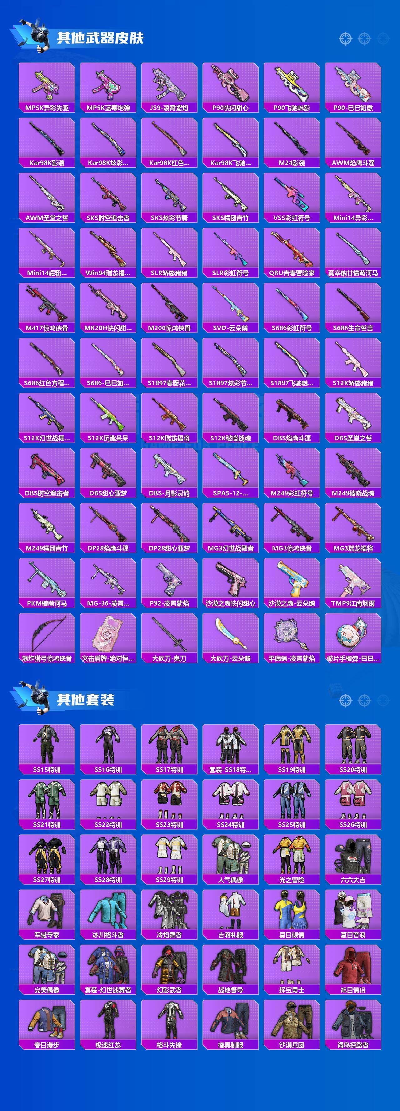 6052-2粉装-4特效呛-0载具-2粉色飞行器-57879热力值-16王牌印记-168套装-203呛皮 【热门品类】:套装-深海小丑鱼,套装-小丑鱼,套装-金羽特工,套装-忍者信条 【粉色套装】:粉装-未来歌姬,角色-月影灵韵 【粉色呛皮等级】:kar98k-巳巳如意五级,12-雪月幻