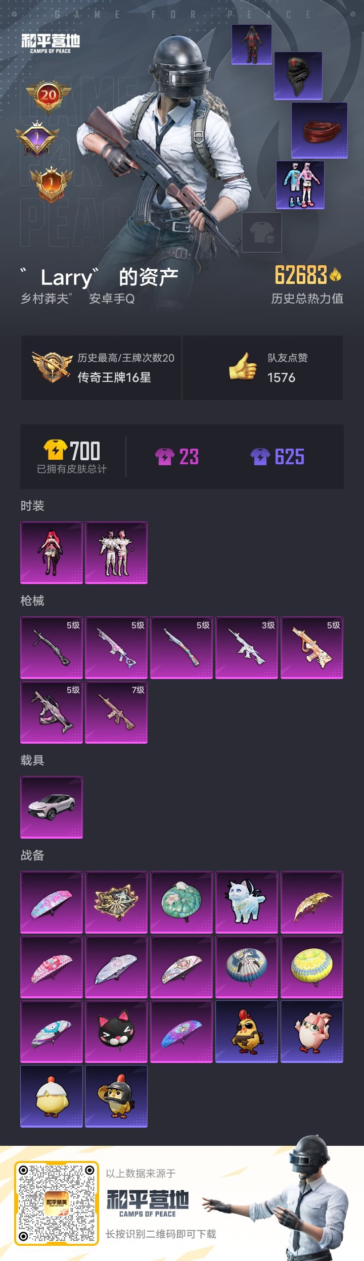 2粉装 7特效呛 1载具 20印记 可二次 可修改实名 【热门装扮】:绯穹魔姬海渊国主动感兔斯基软萌银虎激萌罗小黑潮萌小黄鸭 【载具】:路特斯eletre花绽灰 【稀有呛皮】:aug-暖羊咩咩m416-女娲灵识kar98k-巳巳如意groza-镜光银凌14-甜梦熊击dp
