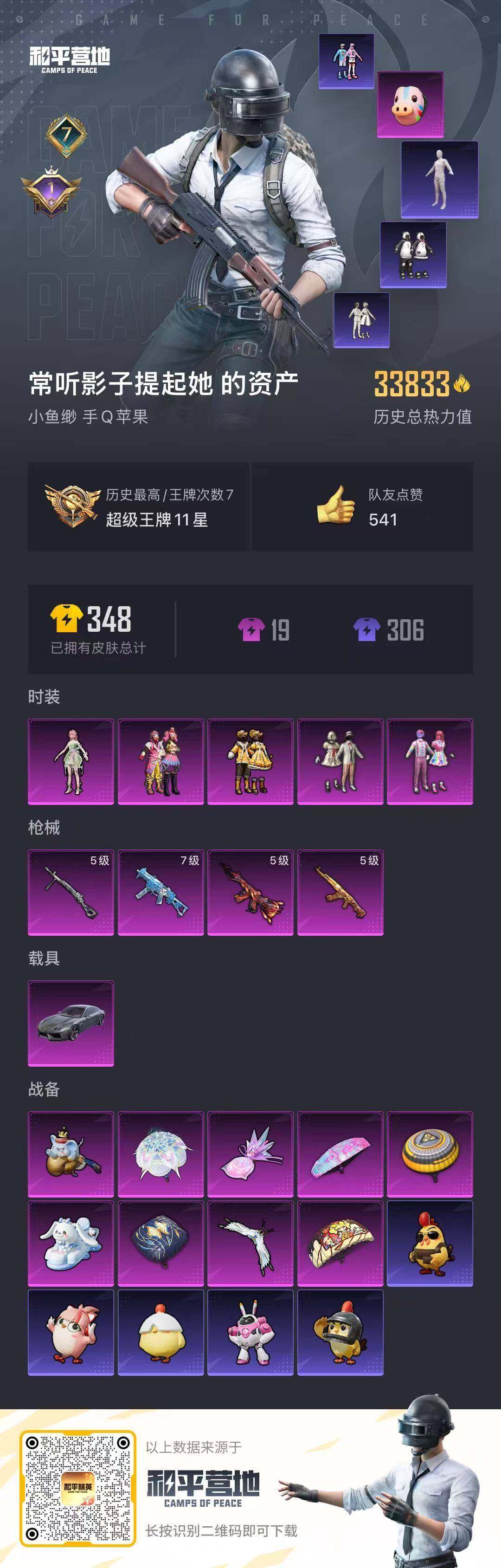 yzj12118 可二次 苹果q-1稀有1载具5粉装4特效呛7热门 极品身法女号 木乃伊 猪妹 胖达 罗小黑 ak甜心宝贝5级 p45精灵满级 风花雪月5级 巧克力头盔 小熊背包 68套装89呛皮 33833热力值 7印记 历史超级王牌11星 【1稀有】 木乃伊 【1载具】 兰博轿车灰色 【5粉装】 宝贝奶油派 天使彩虹糖 花灵 缤纷油彩 黄伞悠悠 【4特效呛】 akm-甜心宝贝 5级 u