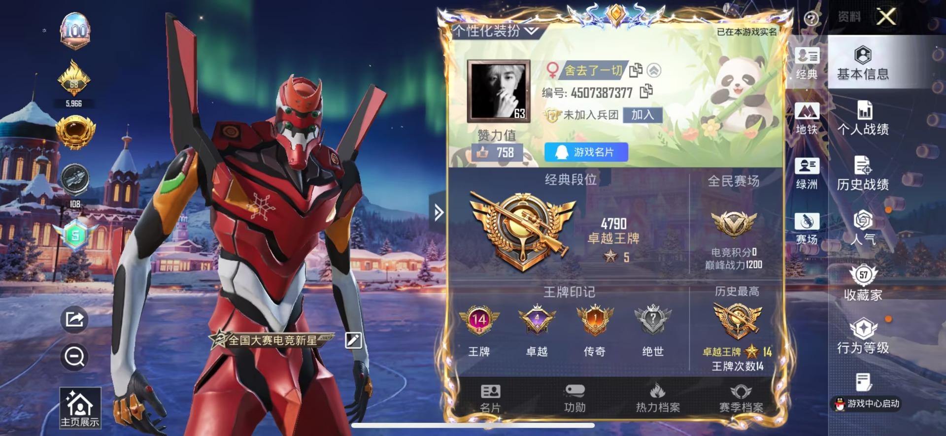 4粉装 5特效呛 14印记 可二次 可修改实名 【热门装扮】:2号机款机体服红螳螂幻彩电音洛天依烟云彩露梦魇先生 【稀有呛皮】:kar98k-巳巳如意14-甜梦熊击dp-28-豹影疾电m416五爪金龙mg3洛神天依 【七级特效呛】:七级m416-五爪金龙七级mg3-洛神天