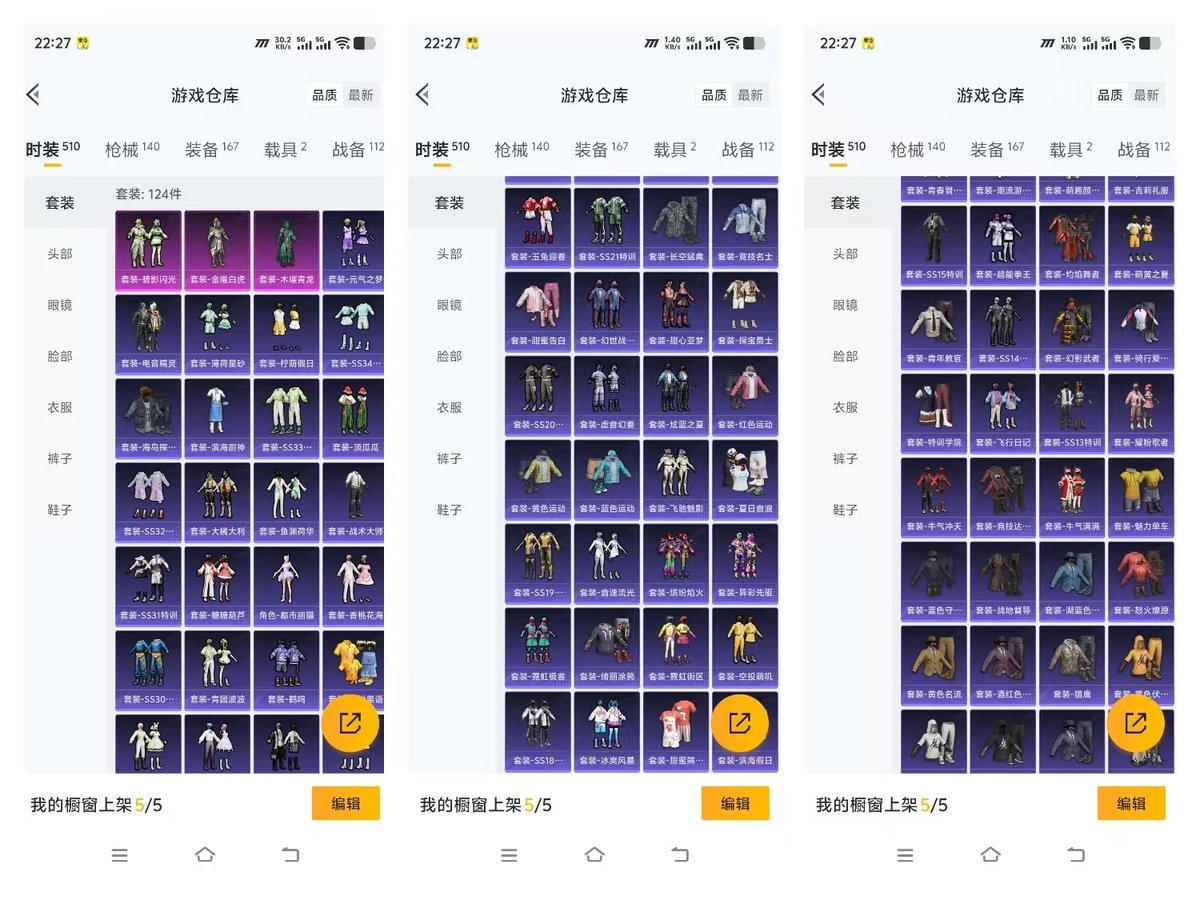 _2292451-实名:可修改时装数:510载具数:2呛械数:140战备数:112热门装扮:木曜青龙金曜白虎碧影闪光载具:特斯拉roadster水滴蓝兰博基尼aventadsvj翡翠绿稀有呛皮:uzi筑梦精灵kar98k-巳巳如意dp-28-豹影疾电