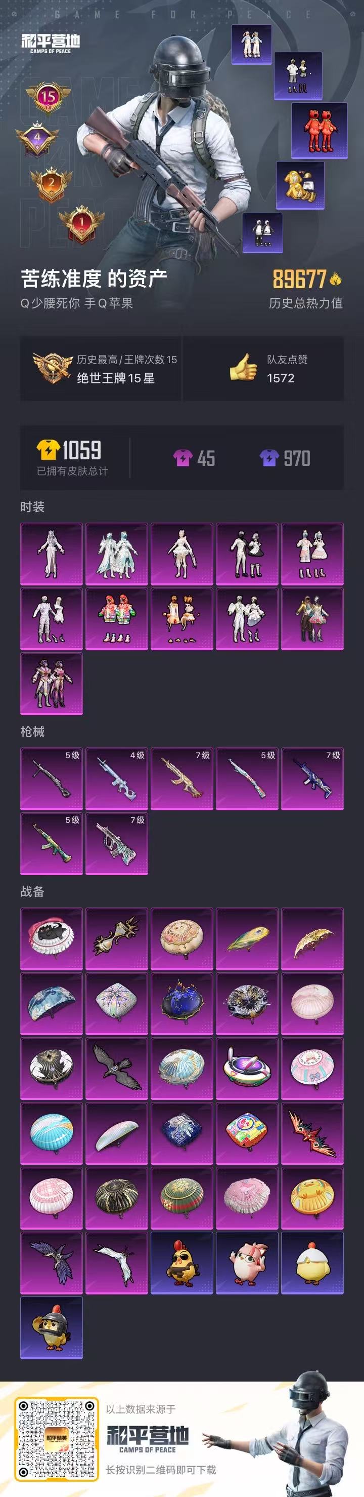 【和平精英】【txhp4379】11粉装,7特效呛,0载具,历史最高段位:绝世王牌15星 王牌印记15次 热力值:89677,209套装,264呛械,354装备,202战备;套装:套装-蝶舞迷情,套装-天之羽翼,套装-橘柚倾心,套装-寒光使者,套装-银红美神,套装-冰川幽秘,套装-炫光之旅,套装-镜光幻境,套装-蜜语绒猫,角色-千金淑猫,角色-冷漠罗丽,套装-特训学院,套装-猎鹰,套装-青年教官,套装-红色运动,套装-黄色运动,套装-黄色伏地魔,套装-白色伏地魔,套装-黑色伏地魔,套装-竞技名士,套装-深蓝色名流,套装-猛禽,套装-长空猛禽,套装-霸义无双,套装-黎明保卫者,套装-冷焰舞者,套装-灼焰舞者,套装-浪漫天命,套装-青春校园,套装-甜蜜告白,套装-春日漫步,套装-龙腾端午,套装-幻影武者,套装-街头潮人,套装-蓝彩潮人,套装-千禧之恋,套装-魅力单车,套装-绮丽涂鸦,套装-坚韧舞者,套装-竞技达人朋克,套装-野性战心,套装-超能勇士,套装-破晓战魂,套装-都市魅力,套装-荣耀,套装-派对舞王,套装-烈火街头,套装-幻世战舞者,套装-青涩时光,套装-缤纷果语,套装-滨海厨神,套装-alan walker,套装-龙魂突击队,套装-元素星魂,套装-胖达圆圆,套装-极速红龙,套装-格斗先锋,套装-旷野奇兵,套装-麻辣教官,套装-破蛋小黄鸡,套装-金鼠迎春,套装-军械专家,套装-鹤鸣,套装-霓虹街区,套装-纯白誓言,套装-软萌银虎,套装-白熊同盟,套装-萌黄之夏,套装-夏日音浪,套装-顽皮玉兔,套装-薄荷蓝莓,套装-牛气满满,套装-白糯汤圆,套装-战术大师,套装-牛气冲天,套装-ss18特训,套装-耀粉歌者,套装-飞行日记,套装-竞技角斗士,套装-曼妙人鱼,套装-热情海星,套装-纯真浪花,套装-电音精灵,角色-英勇保护者,套装-ss17特训,套装-瑞龙福将,套装-团圆交子,套装-福星高照,套装-豚鼠丹丹,套装-异彩先驱,套装-霓虹极客,套装-空投萌叽,套装-ss19特训,套装-兔兔白日梦,套装-飞驰魅影,套装-音速流光,套装-炫蓝之夏,套装-ss20特训,套装-恶魔喵喵,套装-甜心亚梦,套装-虚音幻奏,套装-圣诞惊喜,套装-ss21特训,套装-萌趣咩咩,套装-娇憨猪猪,套装-夏雨游龙,套装-红熊茄茄,套装-梦幻奶油,套装-玉兔迎春,套装-ss22特训,套装-和煦暖阳,套装-田园牧歌,套装-轻风白浪,套装-碧波幻想,套装-绚烂繁星,套装-光之冒险,套装-绯格组合,套装-ss23特训,套装-香榭午后,套装-白兰地假日,套装-龙舌兰冰茶,套装-甜梦熊熊,套装-神气柴柴,套装-懵萌河马,套装-灵蜜圈圈,套装-妙红点点,套装-幻彩翩翩,套装-王牌教练,套装-柠萌假日,套装-青玉碎影,套装-ss24特训,套装-日照花林,套装-恋恋初桃,套装-龟仙人,套装-涂山之恋,套装-ss25特训,套装-金戈铁马,套装-惊鸿侠骨,套装-锦衣飞扬,套装-元气发射,套装-香桃花海,套装-牛仔情诗,套装-果汁能量,套装-龙的传人,套装-冰河战士,套装-ss26特训,套装-快闪甜心,套装-春光漫游,套装-漫游都市,套装-空岛之星,套装-无暇誓言,套装-童真绒兔,套装-贝斯之夜,套装-焰鹰斗篷,套装-幽夜迷踪,套装-幻羽潜行,套装-ss27特训,套装-恋语绒绒,套装-老实芭蕉,套装-ss28特训,角色-银尘,角色-mark.06,套装-街头风暴,套装-海盐绵绵冰,套装-蝶变,套装-粉日山川,套装-小熊娃娃,套装-ss29特训,套装-雏菊兔兔,套装-萝兰蝴蝶,套装-异域银装,套装-星途旅人,角色-俏兔智灵,套装-ss30特训,套装-青团波波,套装-棉花软糖,套装-糖糖葫芦,套装-纯白跃动,套装-绒宝小鹅,套装-ss31特训,套装-鱼渊荷华,套装-燕燕于飞,套装-智谋强哥,套装-晶灵使者,套装-紫幽梦,套装-粉恋花,套装-晶辉守护,套装-ss33特训,套装-云朵鹅,套装-巳巳如意,套装-ss32特训,套装-彩虹兔,套装-蓝冰羽,套装-顶瓜瓜,套装-雪绒豹,套装-大橘大利,套装-星渊小夜曲,套装-星影赞美诗,玩偶服-懒羊羊,玩偶服-美羊羊,套装-元气之梦,套装-ss34特训,套装-擎苍青焰,套装-朱霞炽焰,套装-游乐,套装-凌霄紫焰,套装-薄荷星砂,套装-ss35特训,套装-萌鸡速递;呛皮:ac-val-甜心亚梦,ac-val-乌木金纹,ac-val-彩虹甜喵,ac-val-天降萌叽,ac-val-快闪甜心,groza-影袭,groza-蓝莓炮弹,groza-异彩先驱,groza-恐龙拽拽,groza-田园牧歌,groza-懵萌河马,groza-海盐豹豹,7级m762-鬼刀,m762-绯红前夜,m762-甜心宝贝,m762-瑞龙福将,m762-风花雪月,m762-第五大道,m762-天降萌叽,m762-萌物绒绒,m762-雏菊兔兔,m762-云朵鹅,m416-蓝色火焰,m416-绯红前夜,m416-红色方程式,m416-魔法学院,m416-暗夜行者,m416-糯团青竹,7级aug-超新星,aug-甜蜜菠萝,aug-耀粉歌者,aug-天降萌叽,aug-2p战斗服款,aug-异域银装,aug-紫晶流影,5级akm-绿萝繁花,akm-春暖花开,akm-彩虹符号,akm-龙的传人,famas-霓彩脉冲,famas-乌木金纹,m16a4-甜心亚梦,m16a4-幻世战舞者,m16a4-莲影清波,m16a4-冰河战士,m16a4-千金淑猫,mk47-洛神天依,mk47-乌木金纹,mk47-妙红点点,mk47-炫光之旅,蜜獾-娇憨猪猪,蜜獾-天降萌叽,蜜獾-精灵梦叶罗丽,蜜獾-糖糖葫芦,蜜獾-绯穹魔姬,蜜獾-乌木金纹,7级scar-l-青春物语,scar-l-红色方程式,scar-l-未来战士,scar-l-玉兔迎春,scar-l-星途旅人,scar-l-海盐豹豹,q-洛神天依,q-飞驰魅影,q-未来歌姬,q-纯真浪花,g36c-懵萌河马,g36c-星穹咏叹调,g36c-乌木金纹,arx-凌霄紫焰,awm-恐龙拽拽,awm-垂柳戏鸭,awm-圣堂之誓,awm-焰鹰斗篷,awm-纯真浪花,amr-妙趣可丽,amr-暗夜行者,amr-妙红点点,amr-镜光幻境,amr-乌木金纹,5级kar98k-巳巳如意,kar98k-梦幻火箭,kar98k-彩虹符号,kar98k-炫彩节奏,kar98k-飞驰魅影,kar98k-顶峰精英,kar98k-最终圣卫者,win94-瑞龙福将,win94-乌木金纹,svd-云朵鹅,莫辛纳甘-乌木
