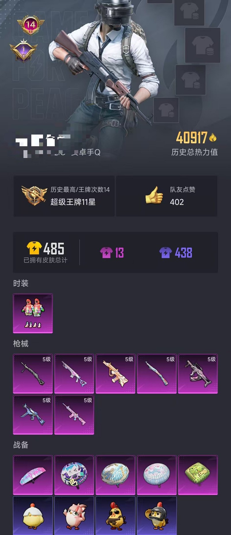 可二次【1粉装7特效呛 可秒换绑】 安卓q区-40917热力值-14印记-105套装-146呛皮 【1粉装】 炫光之旅【7特效呛】 m416-电玩时刻5级 ump45-量子极限5级 mk14-甜梦熊击5级 groza-镜光银凌5级 kar98k-巳巳如意5级 dp-28-豹影疾电5级 aug-暖羊咩咩5级【27热门】 m416-蓝色火焰 groza-彩虹符号 长空猛禽 牛气冲天 霓虹街区 鹰眼刺客 白色伏地魔 ss27特训 ss26特训 ss25特训 ss24特训 ss23特训 ss22特训 mk14-纯梦嫁纱 akm-缤纷海域 scar-l-玉兔迎春 m762-天降萌叽 mk47-乌木金纹 uzi-娇憨猪猪 ump45-蓝色火焰 dbs-彩虹符号 m249-彩虹符号 mg3-幻世战舞者 akm-虎虎生威 m16a4-魔法学院【1飞行器】 红色滑翔尾迹 营地id:767453942