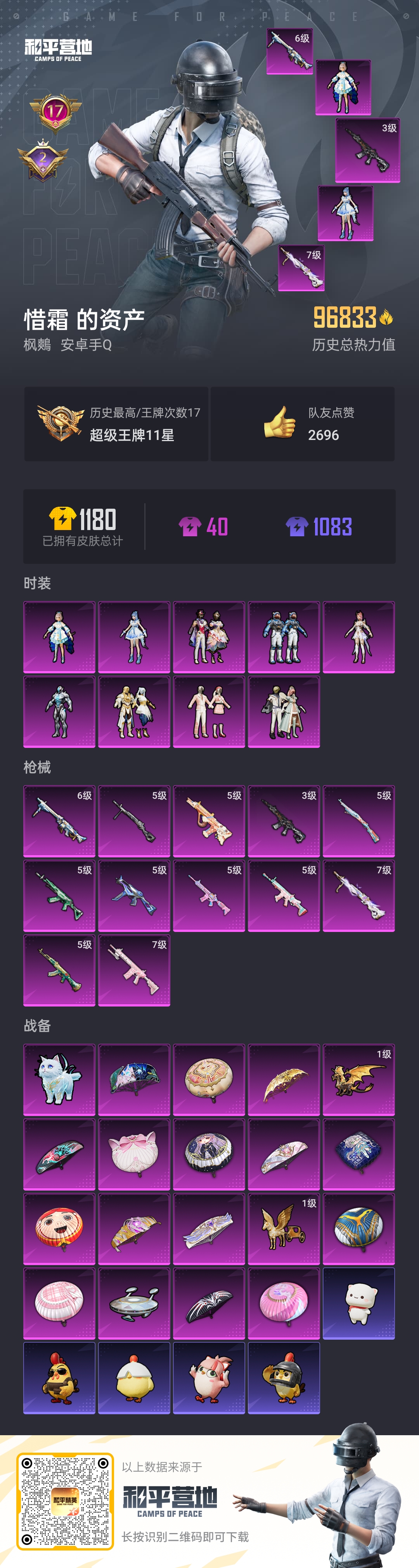 2294756-332]ky489-安卓q-9粉装12特效呛12热门215套装298呛皮 96833热力值 17印记 历史超级王牌11星 【9粉装】 圣堂之誓 奇迹舞步美琪 洛天依 天星战神 星穹咏叹调 未来领航者 冰炎战车 筑梦精灵 第五大道 【12特效呛】 scar-l-锦绣绵绵 5级 m416-墨龙九天 3级 m416-电玩时刻 5级 akm-绿萝繁花 5级 kar98