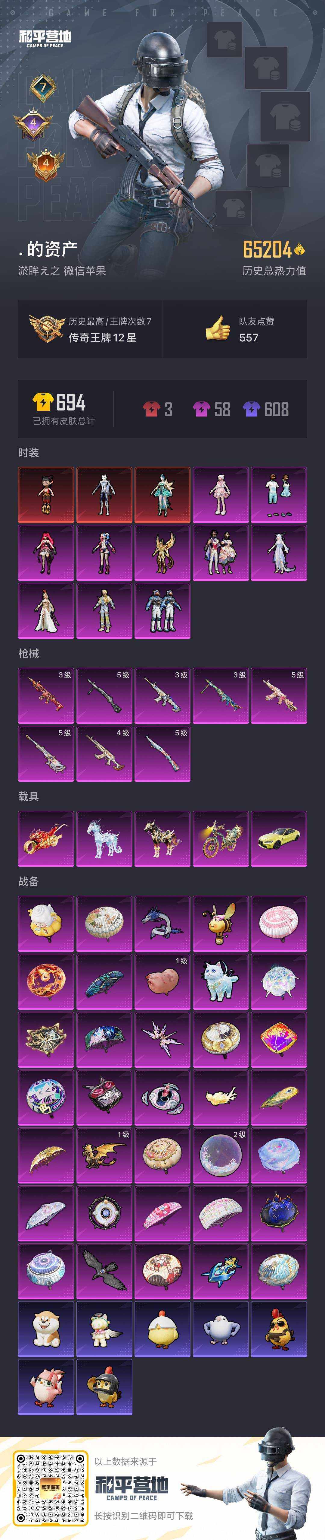 2294841-可二次-苹果 微信-3神装-10粉装-8特效呛-5载具-12粉色飞行器-65204热力值-7王牌印记-105套装-172呛皮 【红色神装等级】:魔童闹海-哪吒三级,灵猫魔法师-塞维尔一级,辉羽雀灵-初翊一级 【红色角色神装】:魔童闹海-哪吒,灵猫魔法师-塞维尔,辉羽雀灵-初翊 【热门品类】:套装-浪漫天命,套装-深海小丑鱼,套装-小丑鱼,套装-粉红小猪,角色-ma