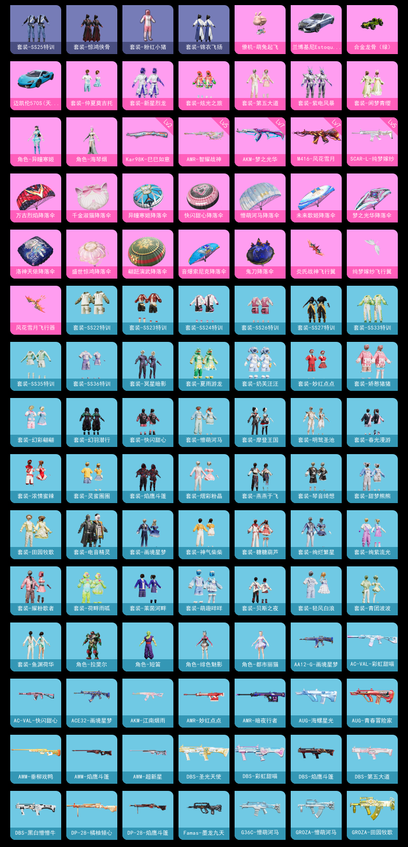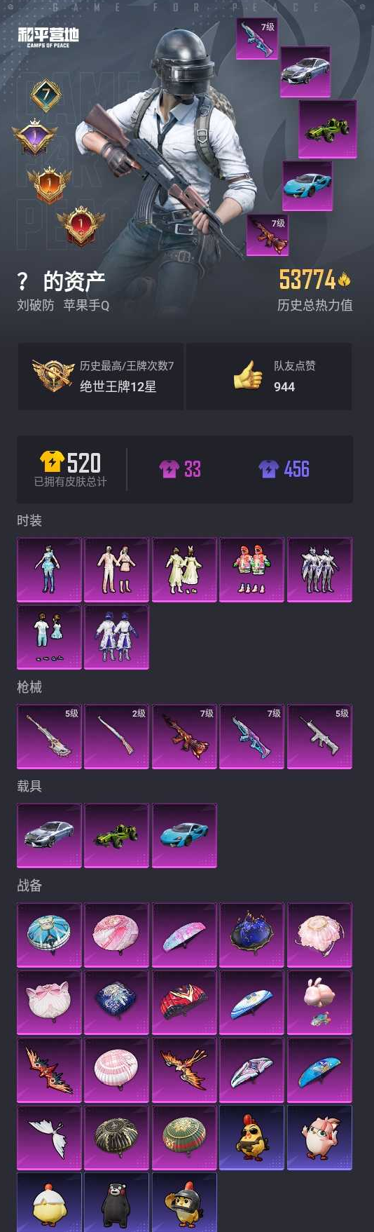【和平精英】【lyhp17532】7粉5特效呛3载 新星烈龙 第五大道 炫光之旅 多呛型 满级m4风花雪月 满级ak梦华 scar-l童话 三车型 三币车 迈凯伦 合金龙骨 7粉装,5特效呛,3载具,历史最高段位:绝世王牌12星 王牌印记7次 热力值:53774,94套装,147呛械,176装备,80战备;套装:套装-新星烈龙,套装-紫电风暴,套装-第五大道,套装-仲夏莫吉托,套装-闲梦青缨,套装-炫光之旅,角色-异瞳寒姬,套装-竞技名士,套装-长空猛禽,套装-千禧之恋,套装-耀眼新星,套装-坚韧舞者,套装-野性战心,套装-荣耀,套装-青涩时光,套装-缤纷果语,套装-冰川特警,套装-极速红龙,套装-粉红小猪,套装-破蛋小黄鸡,套装-疯狂小兔子,套装-鹤鸣,套装-霓虹街区,套装-萌黄之夏,套装-战术大师,套装-耀粉歌者,套装-电音精灵,套装-浓情蜜辣,套装-奶芙汪汪,套装-萌趣咩咩,套装-娇憨猪猪,套装-夏雨游龙,套装-荷畔雨呱,套装-ss22特训,套装-田园牧歌,套装-轻风白浪,套装-绚烂繁星,套装-熠彩粉晶,套装-光之冒险,套装-绯格组合,套装-ss23特训,套装-莱茵河畔,套装-甜梦熊熊,套装-神气柴柴,套装-懵萌河马,套装-灵蜜圈圈,套装-妙红点点,套装-幻彩翩翩,套装-王牌教练,套装-柠萌假日,套装-青玉碎影,套装-ss24特训,套装-绚紫流光,套装-冥星暗影,套装-青芒树下,角色-短笛,套装-龟仙人,套装-涂山之恋,套装-ss25特训,套装-惊鸿侠骨,套装-锦衣飞扬,套装-摩登王国,套装-龙的传人,套装-冰河战士,套装-ss26特训,套装-快闪甜心,套装-春光漫游,套装-空岛之星,套装-明鸳圣池,套装-贝斯之夜,套装-焰鹰斗篷,套装-幻羽潜行,套装-ss27特训,套装-老实芭蕉,角色-拉斐尔,套装-街头风暴,套装-海盐绵绵冰,角色-绯色魅影,角色-都市丽猫,套装-星途旅人,套装-ss30特训,套装-青团波波,套装-糖糖葫芦,套装-ss31特训,套装-鱼渊荷华,套装-燕燕于飞,角色-海琴烟,套装-ss33特训,套装-ss32特训,套装-ss34特训,套装-ss35特训,套装-琴音绮想,套装-画境星梦,套装-ss36特训;呛皮:q-未来歌姬,aug-青春冒险家,aug-海螺星光,aug-天降萌叽,aug-绝对恒星,groza-田园牧歌,groza-懵萌河马,m762-第五大道,m762-天降萌叽,7级m416-风花雪月,m416-红色方程式,m416-糯团青竹,m416-摩登王国,m416-璀璨流光,蜜獾-娇憨猪猪,蜜獾-天降萌叽,蜜獾-糖糖葫芦,蜜獾-乌木金纹,ac-val-乌木金纹,ac-val-彩虹甜喵,ac-val-快闪甜心,7级akm-梦之光华,akm-破晓战魂,akm-龙的传人,akm-江南烟雨,g36c-懵萌河马,5级scar-l-纯梦嫁纱,scar-l-炫彩节奏,scar-l-银碳小老虎,scar-l-玉兔迎春,scar-l-甜蜜旋律,scar-l-星途旅人,scar-l-海盐豹豹,famas-墨龙九天,ace32-画境星梦,mk47-洛神天依,mk47-乌木金纹,mk47-妙红点点,m16a4-幻世战舞者,win94-玉鳞金羽,win94-乌木金纹,awm-垂柳戏鸭,awm-超新星,awm-焰鹰斗篷,莫辛纳甘-乌木金纹,莫辛纳甘-懵萌河马,2级kar98k-巳巳如意,kar98k-彩虹符号,m200-绿野极光,m200-惊鸿侠骨,m200-乌木金纹,5级amr-智耀战神,amr-暗夜行者,amr-妙红点点,amr-乌木金纹,slr-娇憨猪猪,slr-彩虹符号,mk14-纯梦嫁纱,mk20-h-莲影清波,mk20-h-快闪甜心,mk20-h-樱桃泡泡,mk20-h-糖糖葫芦,mk20-h-乌木金纹,vss-田园牧歌,vss-香桃花海,sks-炫彩节奏,sks-糯团青竹,m1加兰德-画境星梦,mk12-乌木金纹,mini14-梦幻火箭,mini14-涂山之恋,mini14-香桃花海,m417-惊鸿侠骨,p90-飞驰魅影,p90-快闪甜心,p90-玩趣呆呆,p90-巳巳如意,p90-乌木金纹,vect-田园牧歌,vect-音爆索尼克,vect-焰鹰斗篷,vect-燕燕于飞,mp5k-画境星梦,mp5k-乌木金纹,aks-74u-乌木金纹,uzi-娇憨猪猪,uzi-啾咪啾咪,ump45-涂山之恋,ump45-糖糖葫芦,汤姆逊-暗夜鎏金,汤姆逊-天降萌叽,野牛-青春冒险家,野牛-燕燕于飞,dbs-圣光天使,dbs-彩虹甜喵,dbs-第五大道,dbs-彩虹符号,dbs-黑白懵懵牛,dbs-焰鹰斗篷,dbs-乌木金纹,s12k-娇憨猪猪,s12k-音爆索尼克,s12k-玩趣呆呆,spas-12-田园牧歌,spas-12-燕燕于飞,spas-12-乌木金纹,s686-千金淑猫,s686-巳巳如意,s1897-暗夜鎏金,aa12-g-画境星梦,mg3-幻世战舞者,mg3-乌木金纹,mg3-妙红点点,mg3-第五大道,mg3-惊鸿侠骨,m249-破晓战魂,m249-冷魅冰骑,m249-彩虹符号,m249-妙红点点,dp-28-彩虹符号,dp-28-橘柚倾心,dp-28-焰鹰斗篷,pkm-懵萌河马,p18c-糖糖葫芦,蝎式手呛-燕燕于飞,信号呛-异瞳寒姬,沙墨之鹦-快闪甜心,平底锅-娇憨猪猪,平底锅-田园牧歌,平底锅-妙红点点,平底锅-纯梦嫁纱,平底锅-懵萌河马,平底锅-惊鸿侠骨,平底锅-快闪甜心,平底锅-空岛之星,平底锅-焰鹰斗篷,平底锅-糖糖葫芦,平底锅-画境星梦,撬棍-圣斗士星矢,大砍刀-万古烈焰,突击盾牌-万古烈焰,爆炸猎弓-惊鸿侠骨,破片手留单-呆爆全场,破片手留单-星途旅人,破片手留单-巳巳如意,破片手留单-爆破雪人,十子怒-燕燕于飞;载具:合金龙骨(绿),兰博基尼estoque尊享铂,迈凯伦570s天际蓝;降落伞:风花雪月飞行器,纯梦嫁纱飞行翼,炎氏战神飞行翼,空岛之星尾迹,顶峰精英尾迹,登顶巅峰飞行器;滑翔尾迹:僚机-萌兔起飞; 详情看图