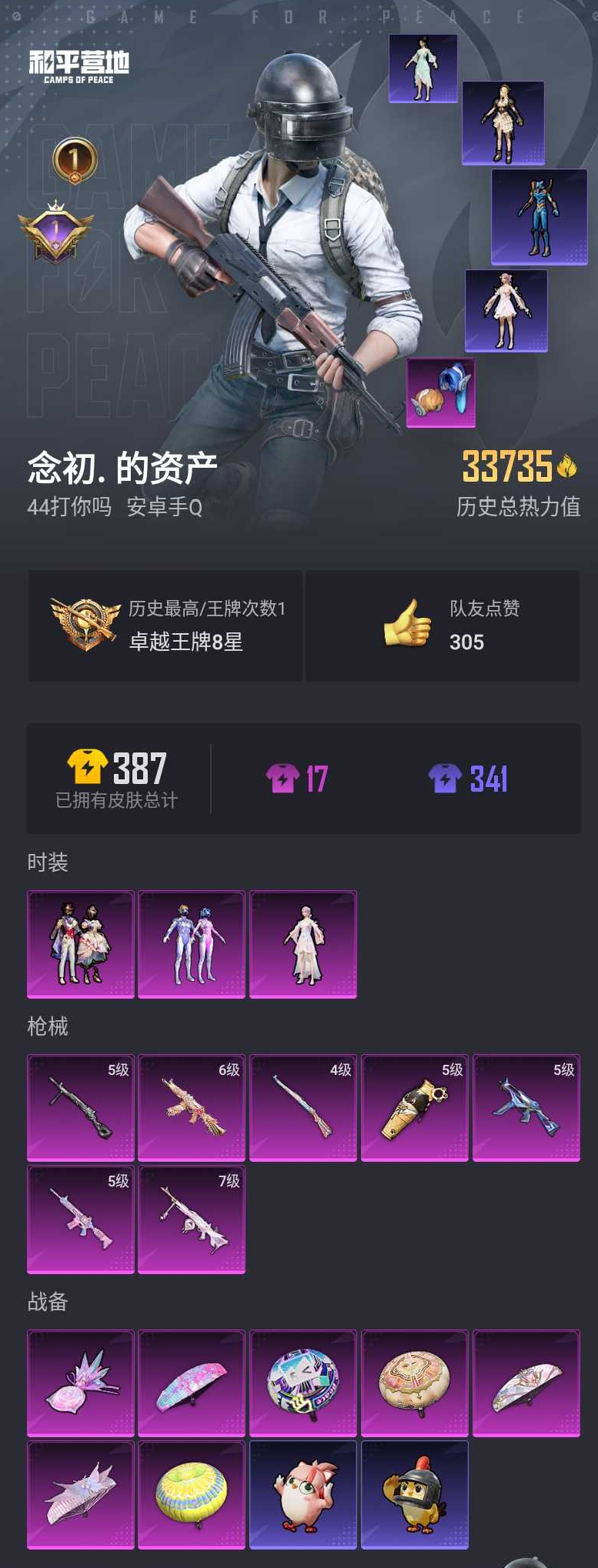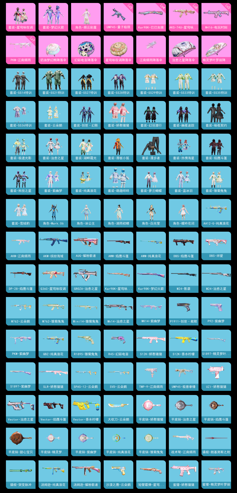 【和平精英】【lyhp17566】3粉装7特效呛 梦幻火箭 星穹咏叹调 满级pkm 满级盐雾蛋 3粉装,7特效呛,0载具,历史最高段位:卓越王牌8星 王牌印记1次 热力值:33735,60套装,123呛械,140装备,46战备;套装:套装-梦幻火箭,角色-烟云彩露,套装-星穹咏叹调,套装-蓝色运动,套装-竞技名士,套装-长空猛禽,套装-漫步者,套装-魅力单车,套装-都市漫游者,套装-甜蜜熊情侣,套装-缤纷果语,套装-龙魂突击队,套装-耀动青春,套装-麻辣教官,套装-暗夜契约,套装-滑板小狐,套装-萌黄之夏,套装-战术大师,套装-治愈之星,套装-科技之星,套装-热情海星,套装-纯真浪花,套装-ss14特训,套装-ss21特训,套装-萌趣咩咩,套装-娇憨猪猪,套装-冰河战士,套装-焰鹰斗篷,套装-幽夜迷踪,套装-幻羽潜行,套装-ss27特训,套装-恋语绒绒,套装-ss28特训,角色-蝶吟花词,角色-湖雨初晴,角色-白光莹,角色-冰公主,角色-mark.06,套装-海盐绵绵冰,套装-蝶变,套装-创世·幻影,套装-湖畔霞光,套装-ss29特训,套装-雏菊兔兔,套装-萝兰蝴蝶,套装-ss31特训,套装-紫幽梦,套装-ss33特训,套装-云朵鹅,套装-ss32特训,套装-蓝冰羽,套装-顶瓜瓜,套装-雪绒豹,套装-极速光影,套装-炫彩糖果,套装-元气之梦,套装-ss34特训,套装-ss35特训,套装-粉黛兰香,套装-ss36特训;呛皮:groza-治愈之星,groza-海盐豹豹,scar-l-玉兔迎春,scar-l-海盐豹豹,akm-缤纷海域,akm-破晓战魂,akm-夜灯,akm-江南烟雨,akm-霓彩脉冲,5级m416-电玩时刻,m416-红色方程式,蜜獾-娇憨猪猪,蜜獾-天降萌叽,蜜獾-精灵梦叶罗丽,蜜獾-乌木金纹,aug-耀粉歌者,aug-冰晶雪宝,mk47-乌木金纹,g36c-星穹咏叹调,m762-彩虹符号,m762-雏菊兔兔,m762-云朵鹅,famas-乌木金纹,ac-val-天降萌叽,m16a4-幻世战舞者,m16a4-冰河战士,q-纯真浪花,awm-天降萌叽,awm-焰鹰斗篷,awm-纯真浪花,awm-乌木金纹,win94-乌木金纹,4级kar98k-巳巳如意,kar98k-梦幻火箭,kar98k-彩虹符号,kar98k-星穹咏叹调,kar98k-乌木金纹,m24-影袭,m24-治愈之星,m200-乌木金纹,svd-云朵鹅,sks-夜灯,sks-心之恋语,sks-炫彩节奏,mini14-炫彩节奏,mini14-雏菊兔兔,mk14-治愈之星,mk14-冰河战士,mk14-紫幽梦,slr-娇憨猪猪,m417-玩趣呆呆,mk20-h-乌木金纹,5级ump45-量子极限,ump45-生命誓言,ump45-海盐豹豹,ump45-极意拳锋,vect-彩虹符号,vect-治愈之星,vect-香水柠檬,vect-焰鹰斗篷,汤姆逊-耀粉歌者,汤姆逊-天降萌叽,汤姆逊-纯真浪花,6级aks-74u-星穹咏叹调,aks-74u-粉粉喵呜,aks-74u-乌木金纹,mp5k-乌木金纹,野牛-雏菊兔兔,uzi-娇憨猪猪,uzi-天降萌叽,uzi-冰河战士,uzi-炫彩糖果,p90-玩趣呆呆,spas-12-云朵鹅,s12k-香水柠檬,s12k-娇憨猪猪,s12k-玩趣呆呆,s12k-霓彩脉冲,s1897-炫彩节奏,s1897-精灵梦叶罗丽,s1897-紫幽梦,dbs-焰鹰斗篷,dbs-绊爱,dbs-乌木金纹,s686-红色方程式,s686-冰封烈焰,aa12-g-纯真浪花,m249-糯团青竹,m249-乌木金纹,5级dp-28-豹影疾电,dp-28-彩虹符号,dp-28-焰鹰斗篷,7级pkm-江南烟雨,pkm-紫幽梦,mg3-乌木金纹,r1895-雏菊兔兔,p1911-创世·救赎,蝎式手呛-奶油梦幻熊,沙墨之鹦-云朵鹅,tmp-9-江南烟雨,p92-紫幽梦,短管霰弹-星穹咏叹调,r45-幻彩电音,平底锅-甜心宝贝,平底锅-治愈之星,平底锅-娇憨猪猪,平底锅-焰鹰斗篷,平底锅-精灵梦叶罗丽,平底锅-纯真浪花,平底锅-雏菊兔兔,平底锅-紫幽梦,平底锅-属我最6,撬棍-突变脉冲,撬棍-朗基努斯之呛,大砍刀-云朵鹅,破片手留单-糯粉咩咩,破片手留单-海盐豹豹,破片手留单-拽到爆炸,铝热弹-炫彩糖果,5级盐雾蛋-猫咪绅士,盐雾蛋-糯粉咩咩,盐雾蛋-鸢尾晶梦,战术弩-江南烟雨;降落伞:炫彩糖果飞行器,破刃行动尾迹; 详情看图