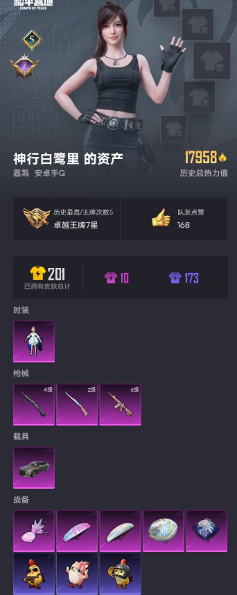 【和平精英】【lyhp17514】1粉3特1载 洛天依 6级心之恋语 1粉装,3特效呛,1载具,历史最高段位:卓越王牌7星 王牌印记5次 热力值:17958,34套装,60呛械,62装备,35战备;套装:角色-洛天依,套装-白色伏地魔,套装-竞技名士,套装-长空猛禽,套装-缤纷果语,套装-粉红小猪,套装-霓虹街区,套装-战术大师,套装-耀粉歌者,套装-天籁歌者,套装-福星高照,套装-绯格组合,套装-ss25特训,套装-惊鸿侠骨,套装-锦衣飞扬,套装-龙的传人,套装-ss26特训,套装-空岛之星,套装-ss27特训,套装-ss28特训,套装-海盐绵绵冰,套装-蝶变,套装-湖畔霞光,套装-ss29特训,套装-ss31特训,套装-智谋强哥,套装-ss33特训,套装-巳巳如意,套装-狂鲨锋刃,套装-炫彩糖果,套装-ss34特训,套装-ss35特训,套装-ss36特训,套装-萌鸡速递;呛皮:m16a4-红色方程式,m16a4-幻世战舞者,aug-耀粉歌者,aug-天降萌叽,aug-闲梦青缨,scar-l-炫彩节奏,scar-l-海盐豹豹,famas-霓彩脉冲,famas-乌木金纹,akm-彩虹符号,akm-龙的传人,akm-霓彩脉冲,m762-天降萌叽,6级m416-心之恋语,groza-无面战甲,m200-惊鸿侠骨,m200-乌木金纹,amr-乌木金纹,2级kar98k-巳巳如意,kar98k-洛神天依,win94-乌木金纹,awm-天降萌叽,m417-惊鸿侠骨,mini14-耀粉歌者,mk20-h-乌木金纹,mk14-冰河战士,p90-玩趣呆呆,p90-巳巳如意,p90-乌木金纹,汤姆逊-耀粉歌者,汤姆逊-天降萌叽,mp5k-乌木金纹,uzi-红色方程式,uzi-天降萌叽,uzi-啾咪啾咪,uzi-炫彩糖果,ump45-极意拳锋,aks-74u-乌木金纹,spas-12-狂鲨锋刃,s686-彩虹符号,s12k-破晓战魂,s12k-玩趣呆呆,s12k-霓彩脉冲,dbs-乌木金纹,mg3-幻世战舞者,mg3-惊鸿侠骨,m249-破晓战魂,m249-彩虹符号,m249-无面战甲,4级dp-28-豹影疾电,p1911-无面战甲,蝎式手呛-闲梦青缨,平底锅-惊鸿侠骨,平底锅-超新星,平底锅-空岛之星,破片手留单-呆爆全场,破片手留单-拽到爆炸,破片手留单-爆破雪人,爆炸猎弓-惊鸿侠骨,铝热弹-炫彩糖果;载具:宾利飞驰布罗德盖棕双色;降落伞:炫彩糖果飞行器,空岛之星尾迹,狂鲨锋刃飞行器,鸡智如我飞行器; 详情看图