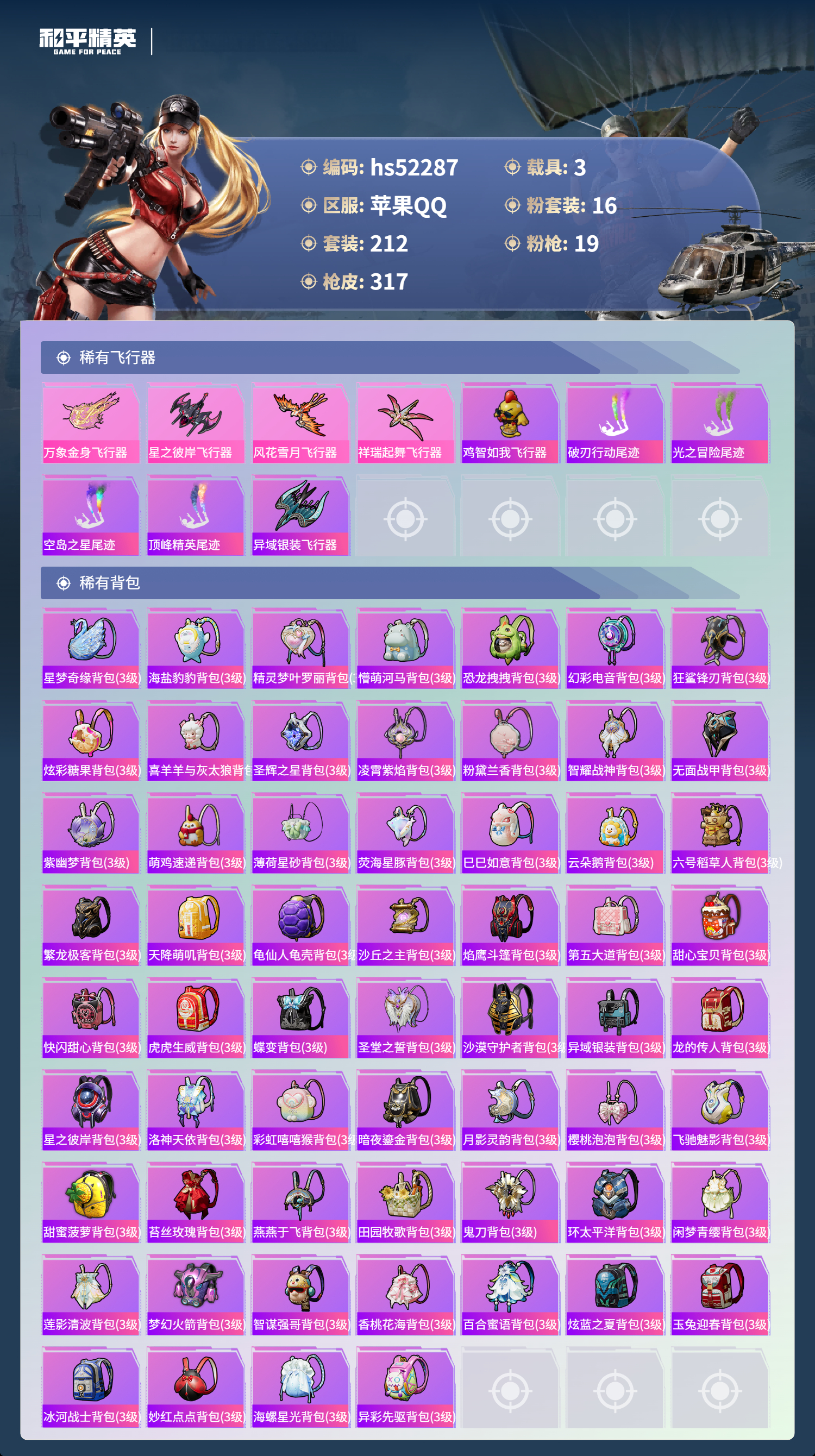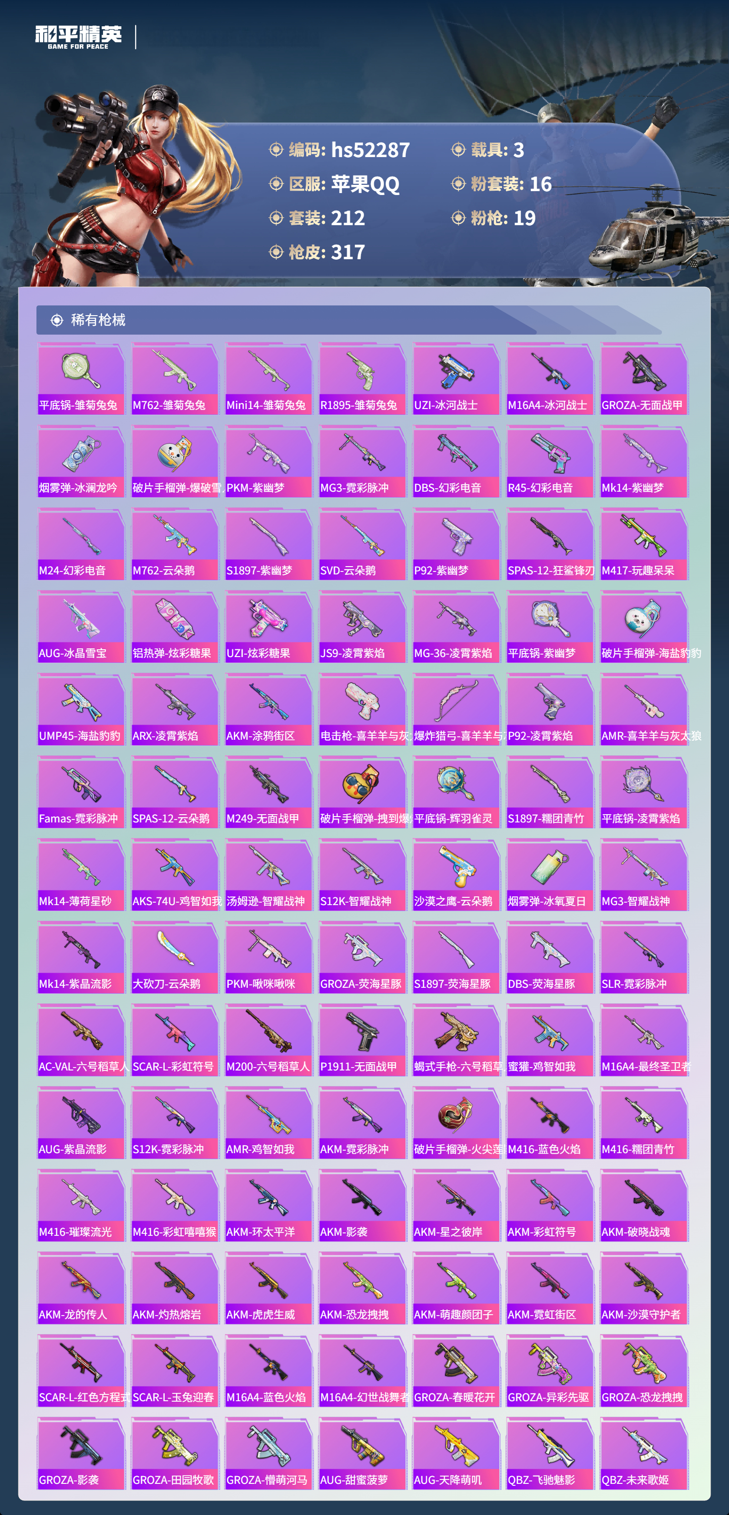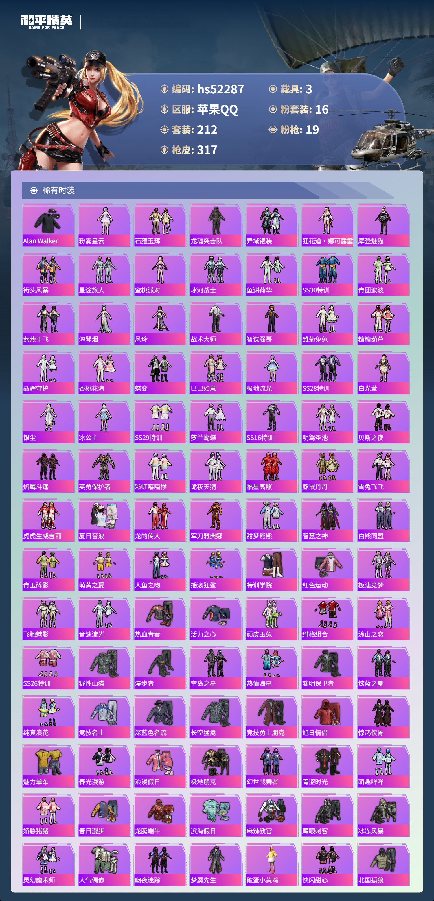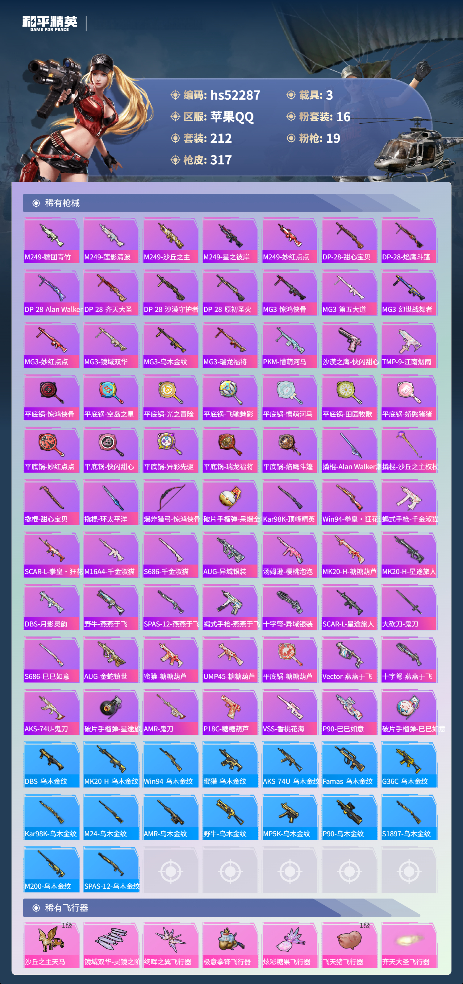 hs52287 苹果手q-18王牌印记-1红装-16粉装-19特效呛-3载具-热力值-212套装-317呛皮-4卓越印记-4传奇印记【1红装】沙丘之主-图卡盟/5级【16粉装】套装-冰霜白皇套装-齐天大圣套装-放客神游套装-梦幻火箭角色-樱桃泡泡套装-天使彩虹糖套装-星之彼岸角色-烟云彩露套装-莲影清波套装-蝶舞迷情套装-闲梦青缨角色-月影灵韵套装-宝贝奶