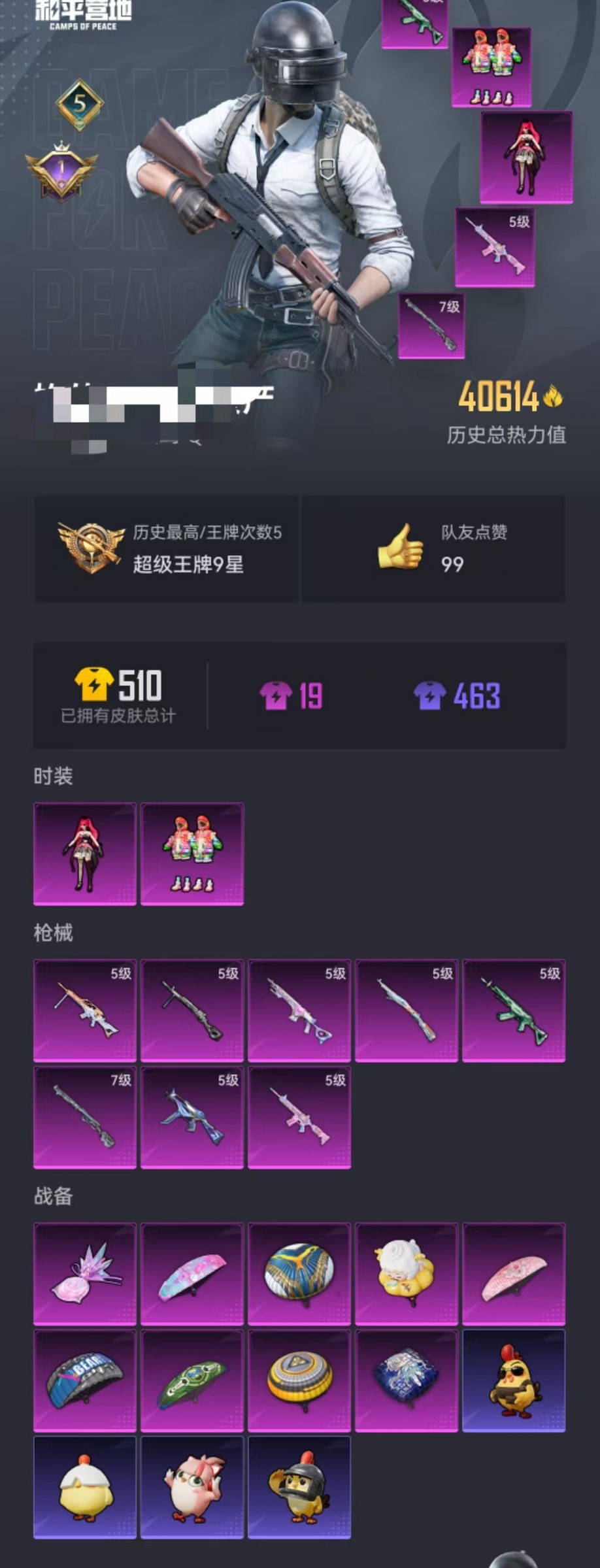 可二次【连体号2粉装8特效呛带王者255皮肤1典藏1珍品6传说】 安卓q区-40614热力值-5印记-100套装-145呛皮 【2粉装】 炫光之旅 角色-绯穹魔姬【8特效呛】 m416-电玩时刻5级 ump45-量子极限5级 m762-青锋波束5级 mk14-甜梦熊击5级 莫辛纳甘-未来领航者7级 kar98k-巳巳如意5级 dp-28-豹影疾电5级 mg-36-沧焰双生5级【19热门】 m416-蓝色火焰 长空猛禽 霓虹街区 破蛋小黄鸡 小丑鱼 白色伏地魔 ss27特训 ss26特训 ss25特训 ss24特训 kar98k-王子的夏天 scar-l-玉兔迎春 mk47-乌木金纹 uzi-娇憨猪猪 ump45-蓝色火焰 m249-彩虹符号 mg3-幻世战舞者 akm-虎虎生威【3飞行器】 粉色滑翔尾迹 空岛之星尾迹 炫彩糖果飞行器 营地id:795661813
