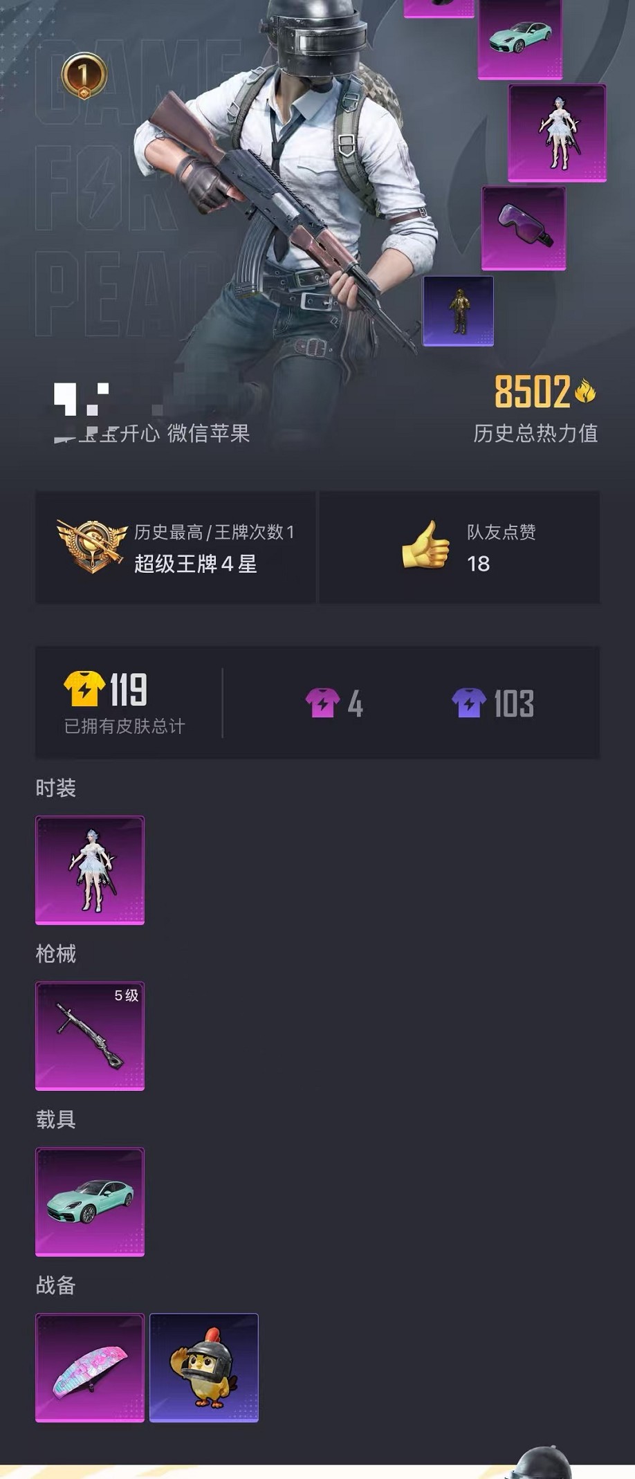 【保时捷 1粉装1特效呛1载具 安全保护】 苹果v区-8502热力值-1印记-25套装-26呛皮 【1载具】 保时捷panamera梦幻青【1稀有】 星河浪客【1粉装】 角色-冰魄【1特效呛】 dp-28-豹影疾电1级【1热门】 白色伏地魔 营地id:983753577