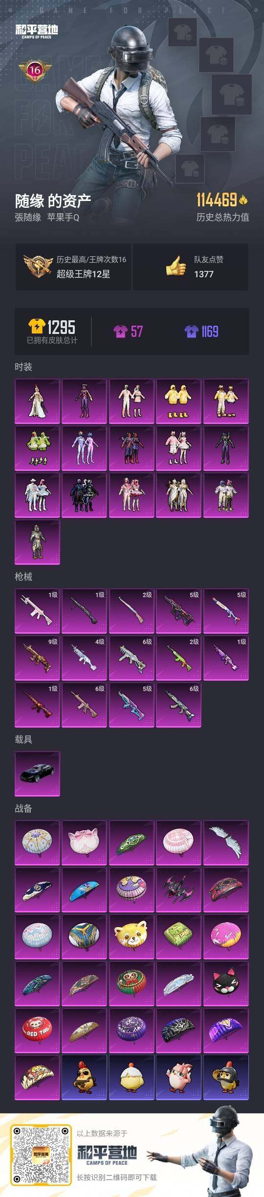 1载具-265套装-359呛皮-可二次【店主推荐捡漏号!可直接换绑】/素材身法号/scar-l-天蓬元帅九级 苹果 手q-16粉装-14特效呛-1载具-2粉色飞行器-11.4w热力值-16王牌印记-265套装-359呛皮【热门品类】:粉装-梦幻火箭,套装-浪漫天命,套装-都市猎人,套装-深海小丑鱼,套装-奇异狩猎者,套装-暗夜