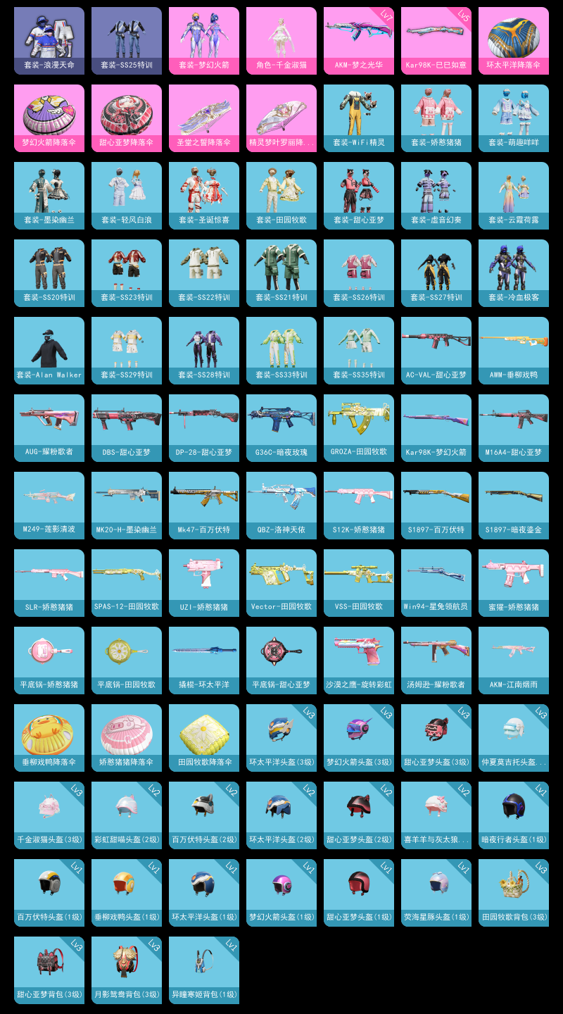 【和平精英】【txhp4755】2粉装,3特效呛,0载具,历史最高段位:超级王牌7星 王牌印记2次 热力值:25860,74套装,84呛械,66装备,46战备;套装:套装-梦幻火箭,角色-千金淑猫,套装-红色运动,套装-黄色运动,套装-黑色伏地魔,套装-竞技名士,套装-猛禽,套装-长空猛禽,套装-黎明保卫者,套装-冷焰舞者,套装-浪漫天命,套装-活力之心,套装-甜蜜告白,套装-沙漠毒蛇,套装-蓝彩潮人,套装-怒火燎原,套装-魅力单车,套装-都市漫游者,套装-野性战心,套装-都市魅力,套装-极地朋克,套装-幻世战舞者,套装-缤纷果语,套装-滨海厨神,套装-alan walker,套装-龙魂突击队,套装-冰川特警,套装-冷血极客,套装-wifi精灵,套装-麻辣教官,套装-霓虹街区,套装-萌黄之夏,套装-探宝勇士,套装-牛气满满,套装-战术大师,套装-牛气冲天,套装-吉莉礼服,套装-福星高照,套装-炫蓝之夏,套装-ss20特训,套装-甜心亚梦,套装-虚音幻奏,套装-圣诞惊喜,套装-ss21特训,套装-萌趣咩咩,套装-娇憨猪猪,套装-墨染幽兰,套装-玉兔迎春,套装-ss22特训,套装-田园牧歌,套装-轻风白浪,套装-ss23特训,套装-柠萌假日,套装-龟仙人,套装-ss25特训,套装-云霞荷露,套装-龙的传人,套装-冰河战士,套装-ss26特训,套装-空岛之星,套装-云魄琉璃,套装-ss27特训,套装-ss28特训,套装-海盐绵绵冰,套装-ss29特训,套装-ss30特训,角色-光矢逐梦,套装-ss31特训,套装-智谋强哥,套装-ss33特训,套装-元气之梦,套装-ss34特训,套装-薄荷星砂,套装-ss35特训;呛皮:q-彩虹符号,q-洛神天依,ac-val-甜心亚梦,ac-val-天降萌叽,蜜獾-娇憨猪猪,蜜獾-天降萌叽,groza-田园牧歌,m16a4-甜心亚梦,m16a4-幻世战舞者,m16a4-冰河战士,7级akm-梦之光华,akm-破晓战魂,akm-龙的传人,akm-江南烟雨,m416-红色方程式,m416-糯团青竹,scar-l-红色方程式,scar-l-炫彩节奏,scar-l-玉兔迎春,scar-l-海盐豹豹,mk47-百万伏特,mk47-乌木金纹,g36c-暗夜玫瑰,m762-天降萌叽,famas-乌木金纹,aug-耀粉歌者,amr-鸡智如我,amr-乌木金纹,m200-乌木金纹,5级kar98k-巳巳如意,kar98k-梦幻火箭,awm-垂柳戏鸭,awm-天降萌叽,win94-星兔领航员,莫辛纳甘-乌木金纹,m24-乌木金纹,mini14-鸡智如我,vss-田园牧歌,vss-彩虹符号,slr-娇憨猪猪,sks-糯团青竹,mk14-乌木金纹,mk14-冰河战士,mk14-薄荷星砂,mk20-h-墨染幽兰,mk20-h-乌木金纹,uzi-娇憨猪猪,uzi-天降萌叽,mp5k-乌木金纹,vect-生命誓言,vect-彩虹符号,vect-田园牧歌,汤姆逊-耀粉歌者,汤姆逊-天降萌叽,ump45-蓝色火焰,ump45-生命誓言,aks-74u-乌木金纹,p90-玩趣呆呆,p90-巳巳如意,p90-乌木金纹,dbs-甜心亚梦,dbs-乌木金纹,s1897-百万伏特,s1897-炫彩节奏,s1897-暗夜鎏金,spas-12-田园牧歌,spas-12-乌木金纹,s12k-娇憨猪猪,s12k-幻世战舞者,s686-彩虹符号,mg3-幻世战舞者,mg3-乌木金纹,m249-彩虹符号,m249-莲影清波,4级dp-28-豹影疾电,dp-28-甜心亚梦,沙墨之鹦-旋转彩虹,平底锅-甜心亚梦,平底锅-娇憨猪猪,平底锅-田园牧歌,平底锅-空岛之星,撬棍-环太平洋,撬棍-幻世战舞者,破片手留单-呆爆全场;降落伞:粉色滑翔尾迹,空岛之星尾迹; 详情看图千金淑猫 梦幻火箭 满级梦之光华