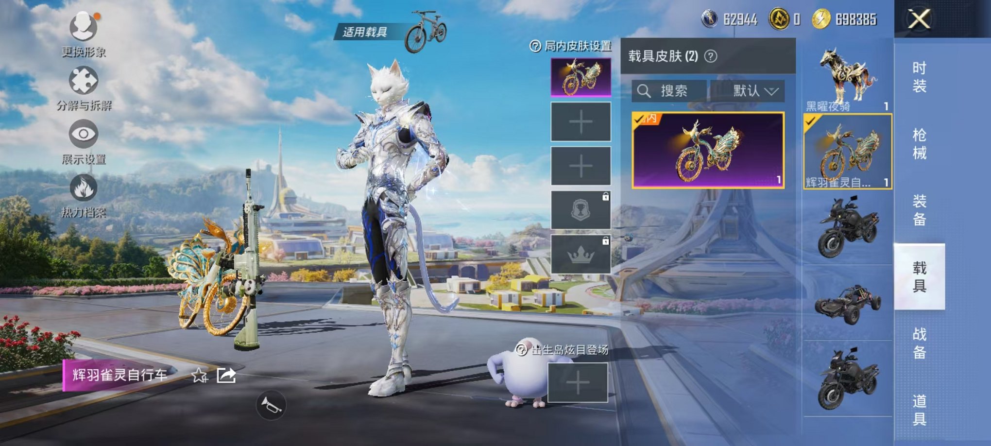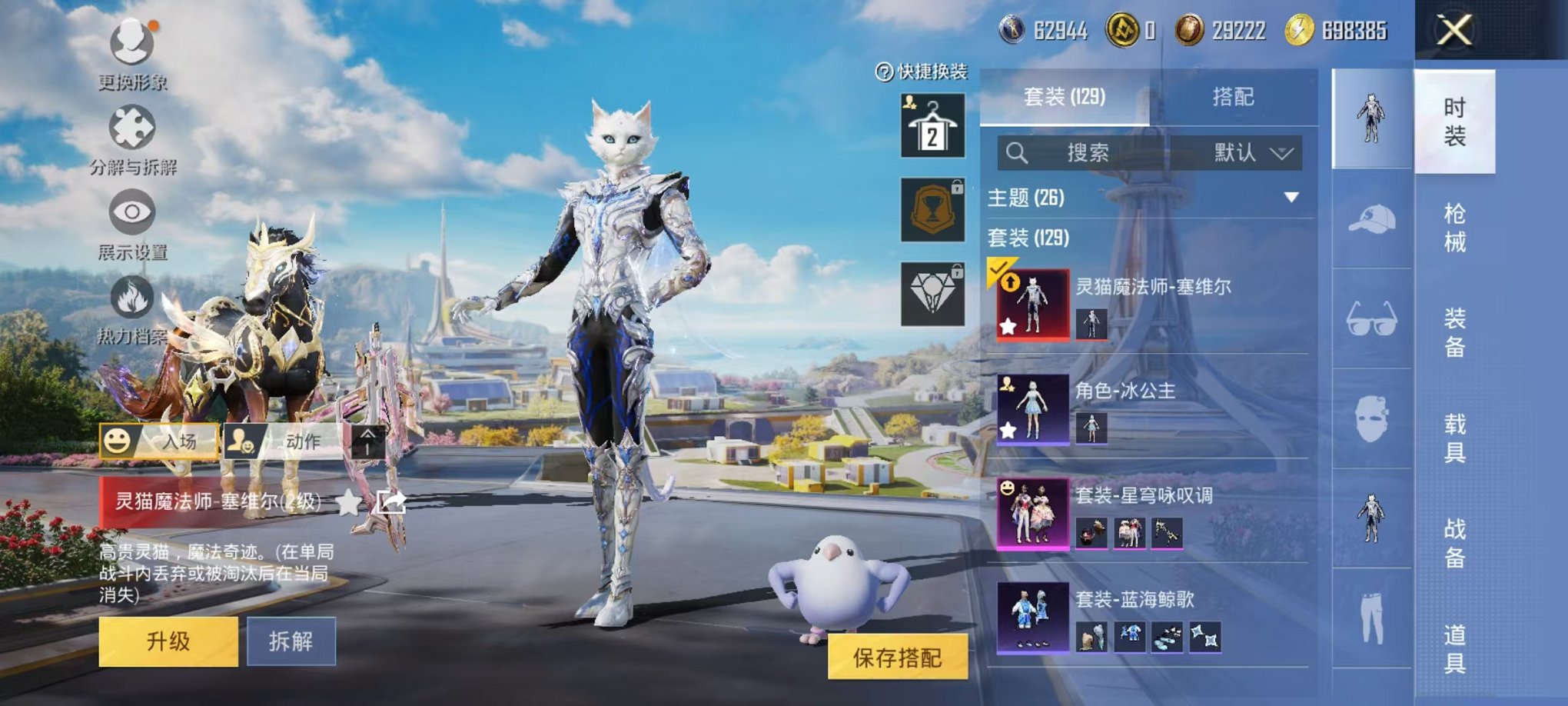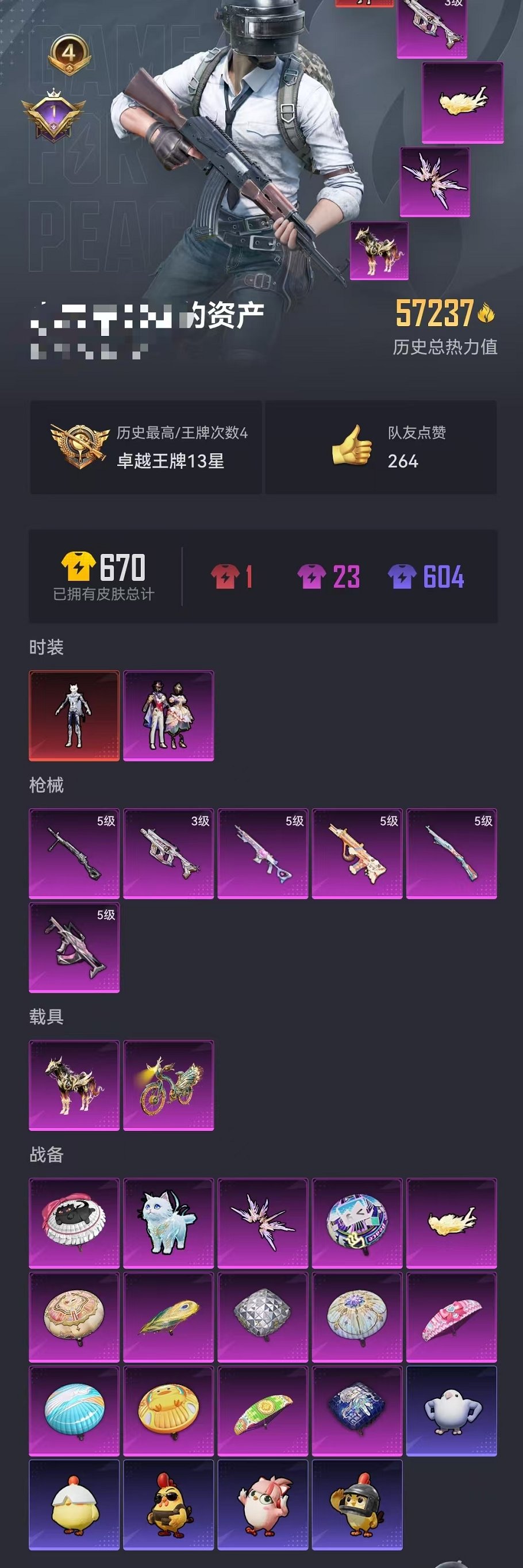 2载具-129套装-197呛皮-可二次【1红装2级灵猫1粉装6特效呛2载具可秒换绑】 安卓q区-57292热力值-4印记-129套装-197呛皮 【1红装】 灵猫魔法师-塞维尔2级【2载具】 辉羽雀灵自行车 黑曜夜骑【1粉装】 星穹咏叹调【6特效呛】 mk14-甜梦熊击5级 vect-最终圣卫者3级 groza-镜光银凌5级 kar98k-巳巳如意5级 dp-28-豹影疾电5级 a