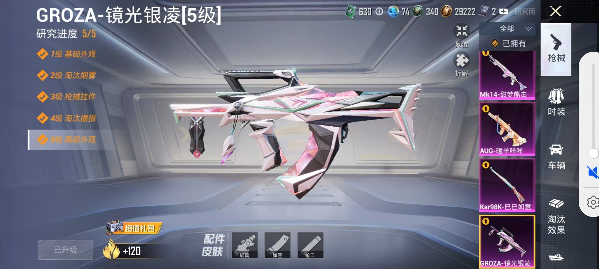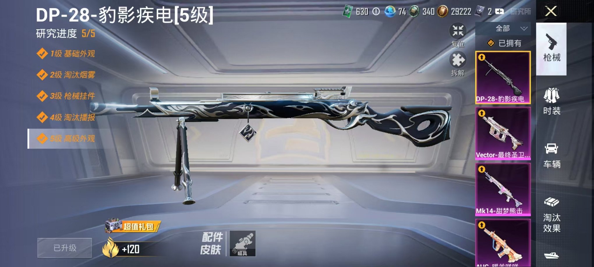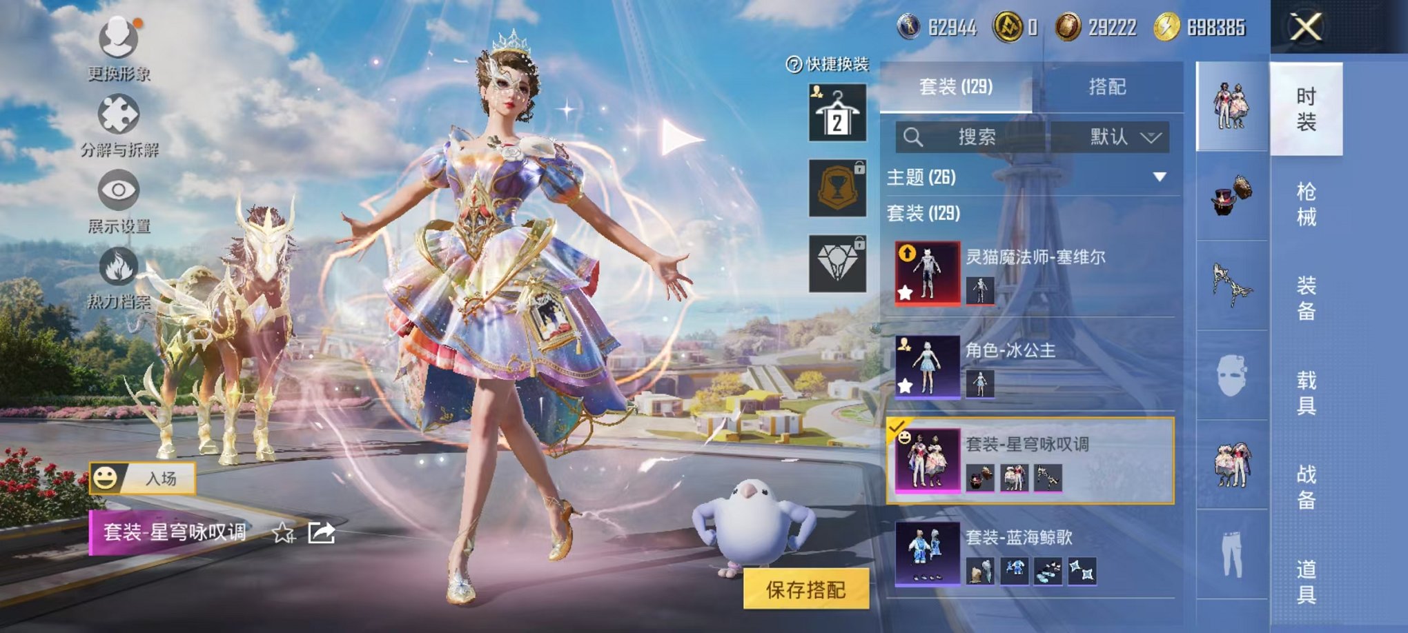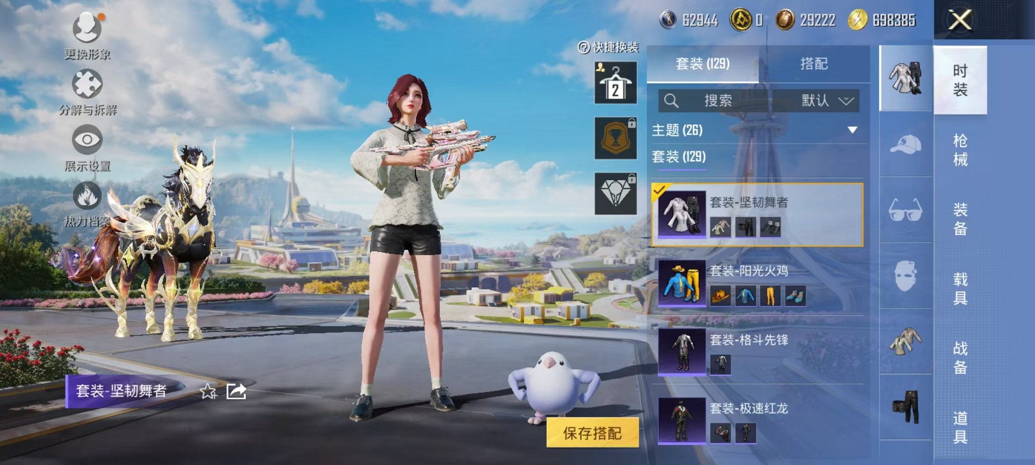 2载具-129套装-197呛皮-可二次【1红装2级灵猫1粉装6特效呛2载具可秒换绑】 安卓q区-57292热力值-4印记-129套装-197呛皮 【1红装】 灵猫魔法师-塞维尔2级【2载具】 辉羽雀灵自行车 黑曜夜骑【1粉装】 星穹咏叹调【6特效呛】 mk14-甜梦熊击5级 vect-最终圣卫者3级 groza-镜光银凌5级 kar98k-巳巳如意5级 dp-28-豹影疾电5级 a