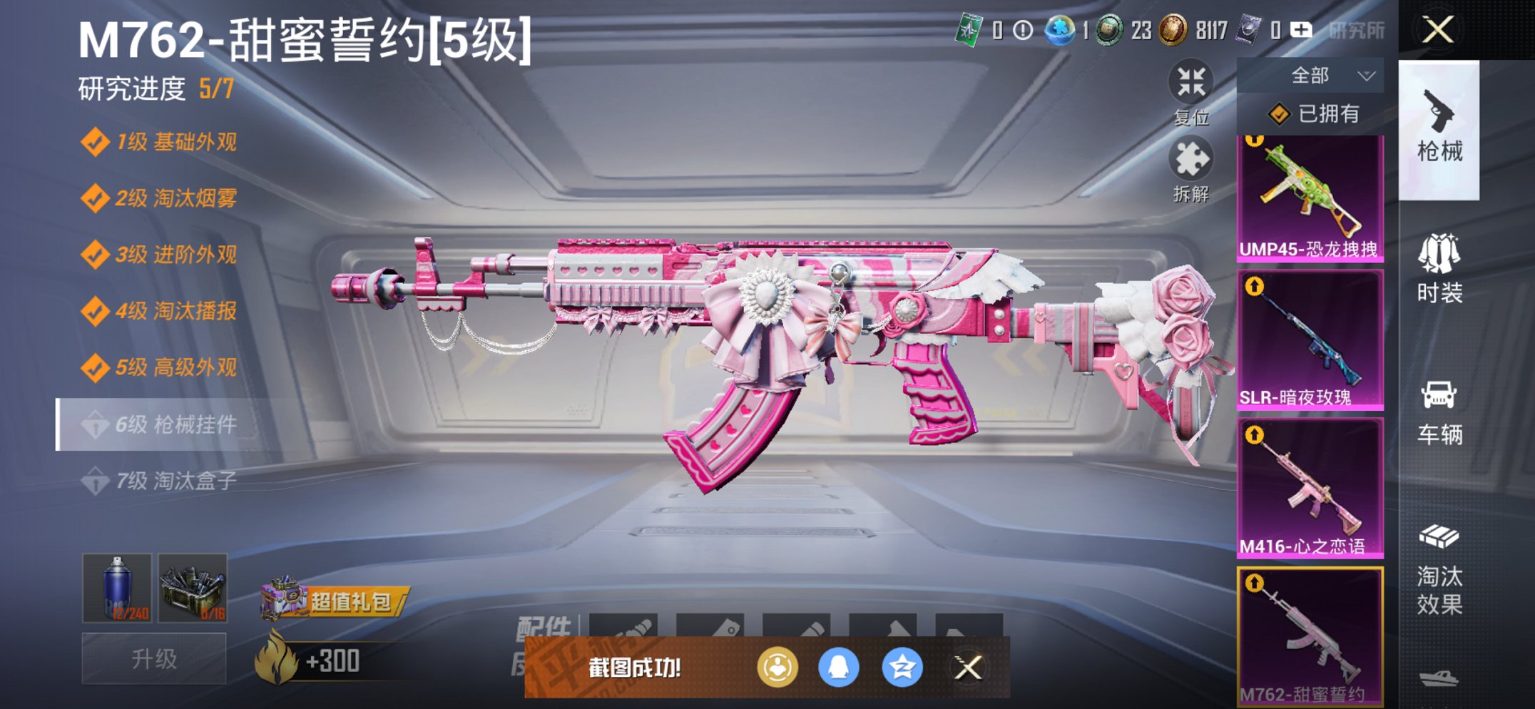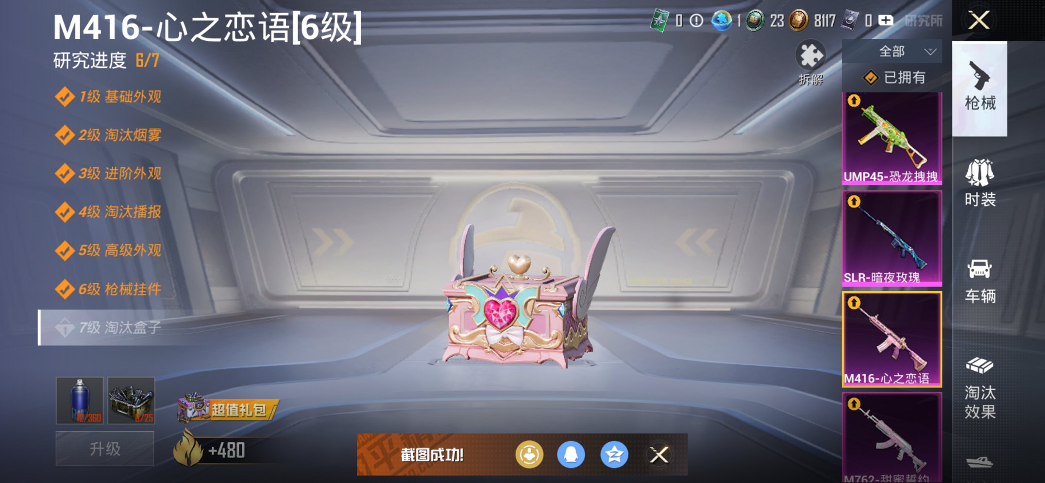 1载具-66套装-112呛皮-可二次实名【梦幻火箭m4心之恋语5粉装6特效呛1载具 秒换绑不用等】 苹果q区-41370热力值-1印记-66套装-112呛皮 【1载具】 路特斯el花绽灰【5粉装】 梦幻火箭 宝贝奶油派 恐龙拽拽 暗夜玫瑰 复仇流浪者【6特效呛】 m416-心之恋语6级 ump45-恐龙拽拽5级 m762-甜蜜誓约5级 slr-暗夜玫瑰1级 vect-环太平洋2级 d