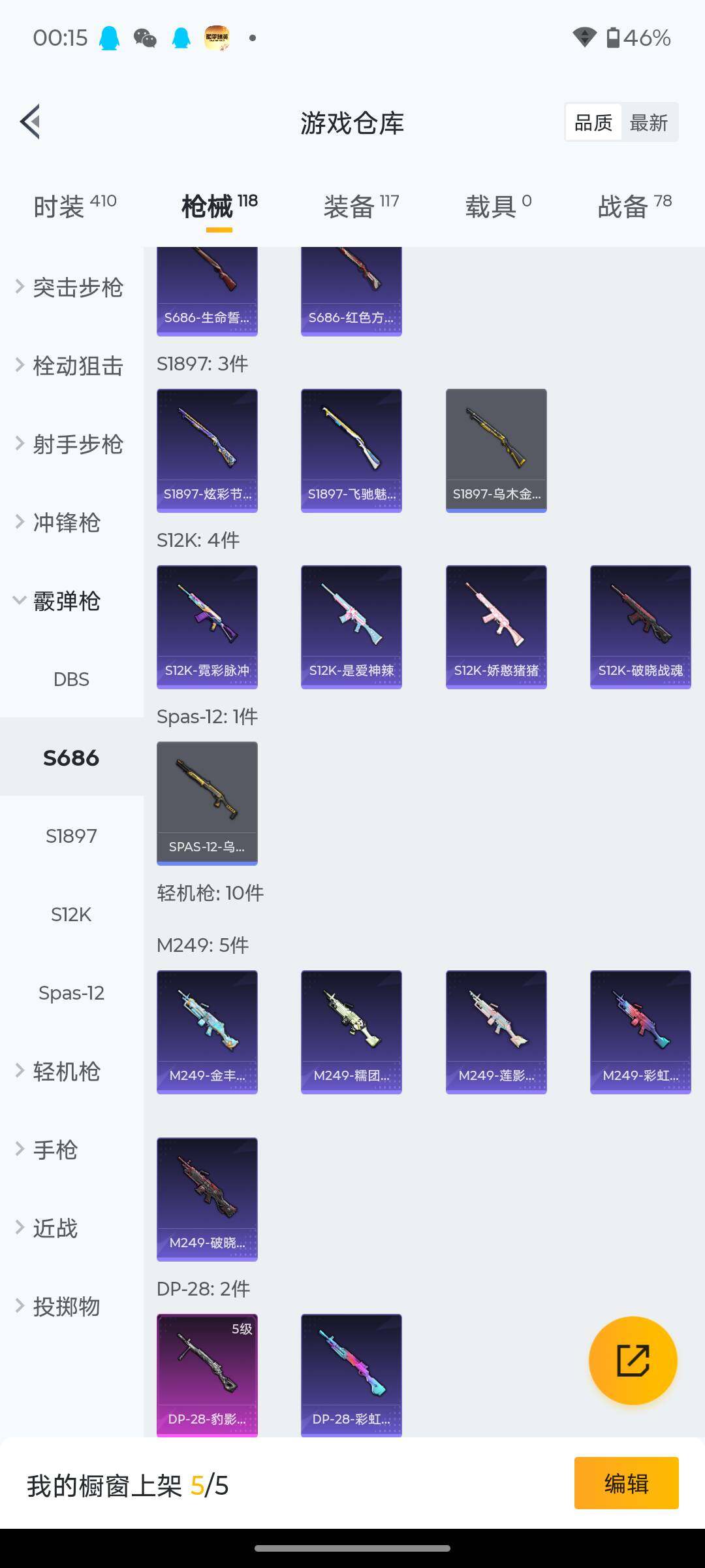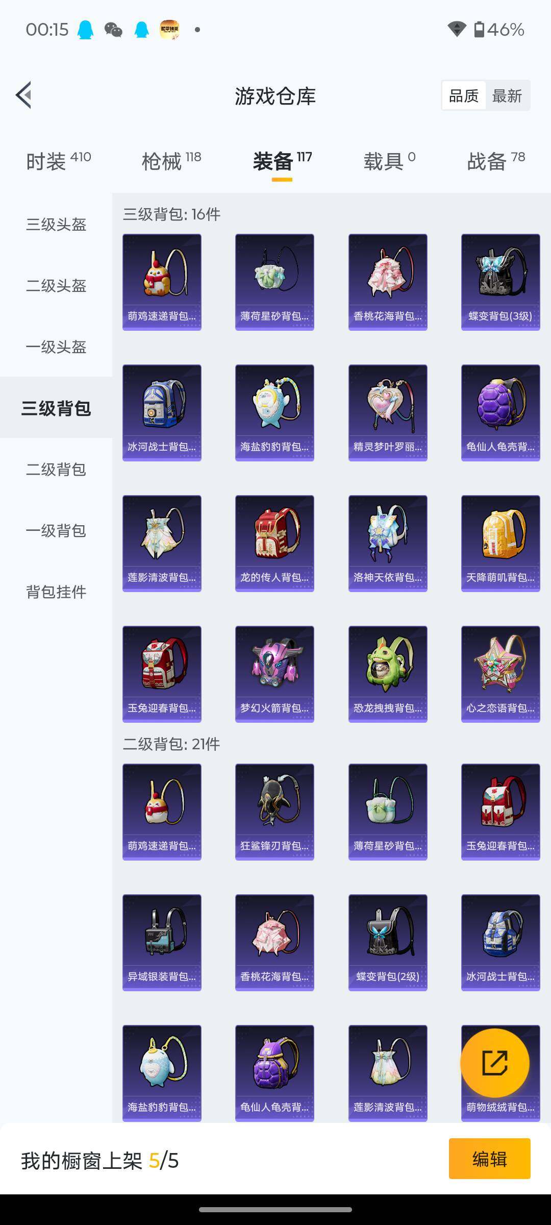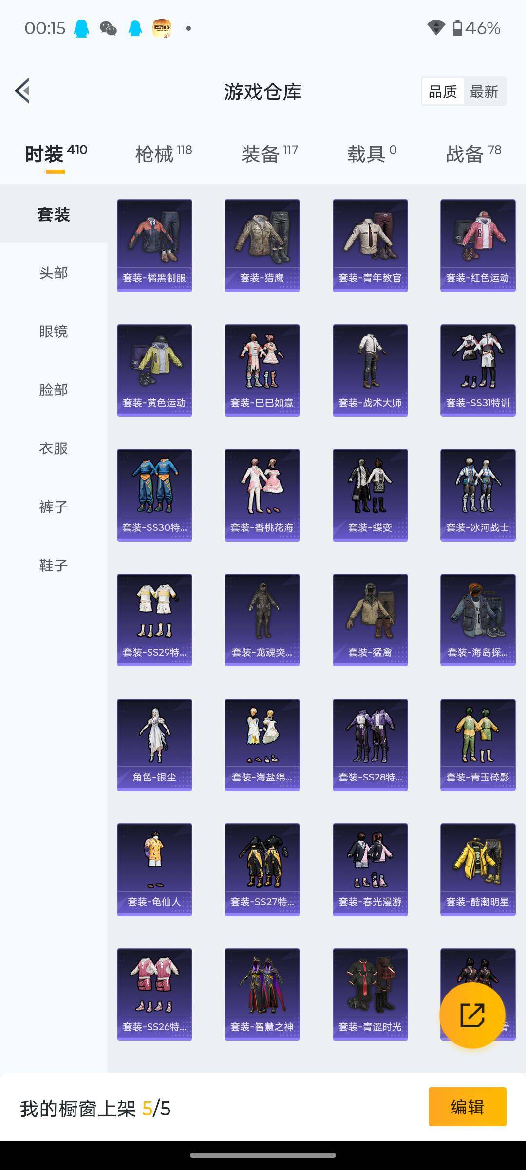 安卓 手q-1粉装-2特效呛-0载具-0粉色飞行器-32640热力值-1王牌印记-102套装-118呛皮 【热门品类】:套装-龟仙人,套装-粉红小猪 【粉色套装】:粉装-极致幻想 【粉色呛皮等级】:kar98k-巳巳如意五级,dp-28-豹影疾电五级 【粉色呛皮】:kar98k-巳巳如意,dp-28-豹影疾电 【粉色降落伞】:激战未来降落伞,星之彼岸降落伞,恐龙拽拽降落伞,仲夏莫吉托降