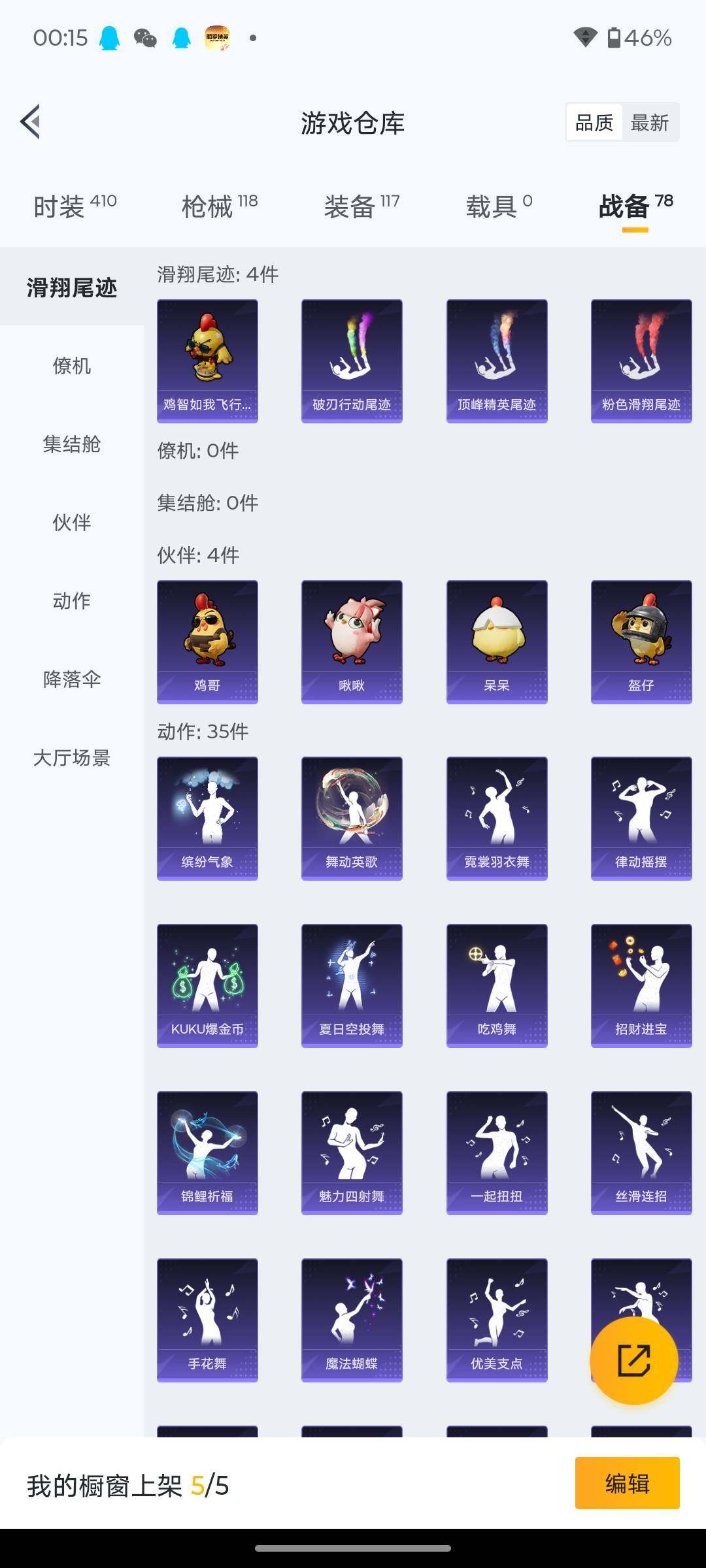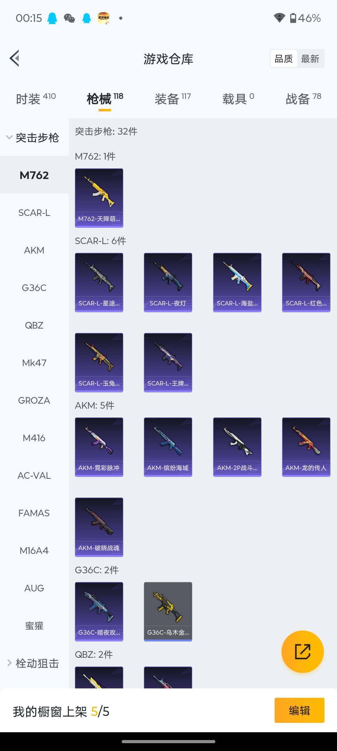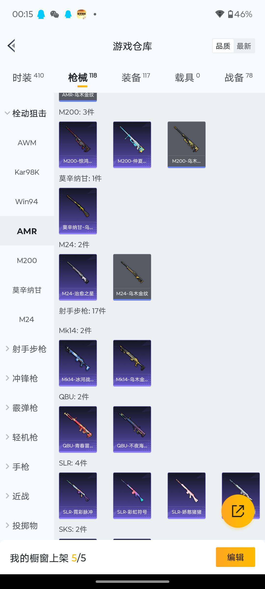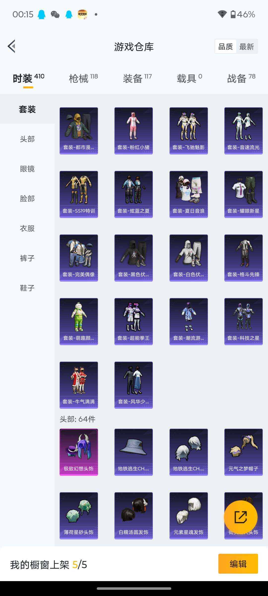 安卓 手q-1粉装-2特效呛-0载具-0粉色飞行器-32640热力值-1王牌印记-102套装-118呛皮 【热门品类】:套装-龟仙人,套装-粉红小猪 【粉色套装】:粉装-极致幻想 【粉色呛皮等级】:kar98k-巳巳如意五级,dp-28-豹影疾电五级 【粉色呛皮】:kar98k-巳巳如意,dp-28-豹影疾电 【粉色降落伞】:激战未来降落伞,星之彼岸降落伞,恐龙拽拽降落伞,仲夏莫吉托降