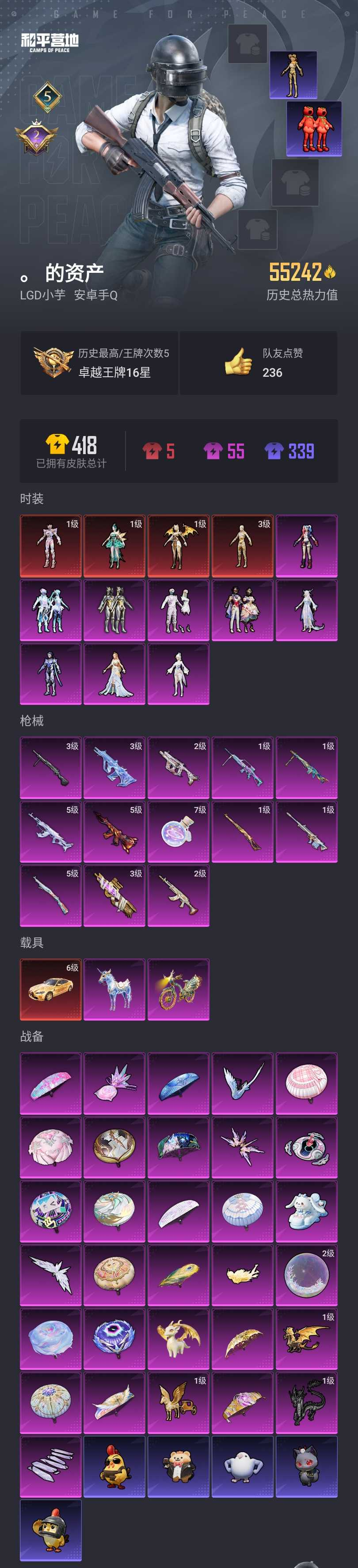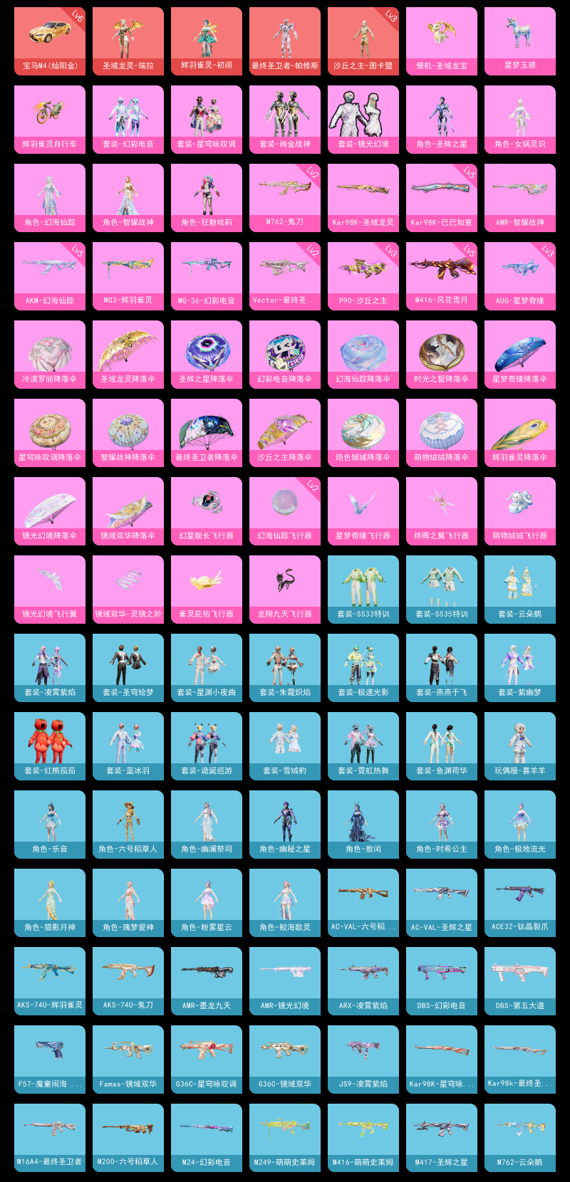 【和平精英】【lyhp17630】4红装9粉装13特效呛3载具 3级图卡盟 1级孔雀 1级瑞拉 狂魅哈莉 绚金战神 红熊番茄 六号稻草人 3级aug星梦奇缘 3级p90沙丘之主 1级mg3孔雀 满级手蕾 满级宝马m4 9粉装,13特效呛,3载具,历史最高段位:卓越王牌16星 王牌印记5次 热力值:55242,55套装,122呛械,156装备,69战备;套装:沙丘之主-图卡盟,辉羽雀灵-初翊,圣域龙灵-瑞拉,最终圣卫者-帕修斯,套装-绚金战神,套装-镜光幻境,角色-女娲灵识,角色-智耀战神,角色-圣辉之星,角色-狂魅哈莉,套装-幻彩电音,角色-幻海仙踪,套装-星穹咏叹调,套装-青涩时光,套装-缤纷果语,套装-战术大师,套装-红熊茄茄,套装-青玉碎影,角色-极地流光,角色-粉雾星云,套装-小鸟芋圆,角色-六号稻草人,套装-诡诞巡游,套装-ss31特训,套装-鱼渊荷华,套装-燕燕于飞,角色-瑰梦爱神,套装-紫幽梦,套装-ss33特训,角色-猎影月神,套装-云朵鹅,套装-ss32特训,角色-幽秘之星,套装-蓝冰羽,套装-顶瓜瓜,套装-雪绒豹,套装-大橘大利,套装-圣穹绘梦,套装-兰香蝶语,角色-幽澜祭司,套装-极速光影,角色-时希公主,角色-鲛海歌灵,套装-星渊小夜曲,套装-霓虹热舞,套装-炫彩糖果,角色-乐音,玩偶服-喜羊羊,套装-ss34特训,套装-朱霞炽焰,套装-凌霄紫焰,角色-敖闰,套装-ss35特训,套装-粉黛兰香,套装-萌鸡速递;呛皮:2级m762-鬼刀,m762-彩虹符号,m762-萌物绒绒,m762-云朵鹅,3级aug-星梦奇缘,aug-异域银装,aug-月影灵韵,g36c-镜域双华,g36c-星穹咏叹调,g36c-乌木金纹,famas-镜域双华,famas-霓彩脉冲,famas-乌木金纹,5级m416-风花雪月,m416-萌萌史莱姆,m416-错位像素,5级akm-幻海仙踪,akm-霓彩脉冲,ac-val-天降萌叽,ac-val-圣辉之星,ac-val-六号稻草人,ace32-钛晶裂爪,scar-l-炫彩节奏,scar-l-玉兔迎春,m16a4-最终圣卫者,arx-凌霄紫焰,蜜獾-乌木金纹,mk47-幻海仙踪,1级kar98k-圣域龙灵,5级kar98k-巳巳如意,kar98k-星穹咏叹调,kar98k-最终圣卫者,win94-乌木金纹,1级amr-智耀战神,amr-镜光幻境,amr-墨龙九天,m24-幻彩电音,m200-六号稻草人,m200-乌木金纹,svd-云朵鹅,mk20-h-星梦奇缘,mk20-h-圣域龙灵,mk20-h-狂鲨锋刃,sks-圣域龙灵,mk14-紫幽梦,mk14-幻星舰长,m417-圣辉之星,mini14-辉羽雀灵,slr-墨龙九天,slr-圣穹绘梦,slr-霓彩脉冲,野牛-沙丘之主,野牛-燕燕于飞,野牛-最终圣卫者,野牛-魔童闹海 敖闰,汤姆逊-星梦奇缘,汤姆逊-智耀战神,汤姆逊-幻星舰长,3级p90-沙丘之主,p90-巳巳如意,js9-凌霄紫焰,2级vect-最终圣卫者,vect-燕燕于飞,uzi-天降萌叽,uzi-炫彩糖果,ump45-海盐豹豹,ump45-圣穹绘梦,aks-74u-鬼刀,aks-74u-辉羽雀灵,aks-74u-乌木金纹,s686-时光之誓,s12k-智耀战神,s12k-霓彩脉冲,dbs-第五大道,dbs-幻彩电音,s1897-紫幽梦,s1897-糯团青竹,spas-12-燕燕于飞,spas-12-云朵鹅,m249-彩虹符号,m249-萌萌史莱姆,3级dp-28-豹影疾电,dp-28-彩虹符号,pkm-啾咪啾咪,pkm-紫幽梦,1级mg-36-幻彩电音,mg-36-凌霄紫焰,1级mg3-辉羽雀灵,mg3-第五大道,mg3-镜域双华,mg3-智耀战神,mg3-霓彩脉冲,蝎式手呛-燕燕于飞,蝎式手呛-六号稻草人,信号呛-异瞳寒姬,f57-魔童闹海 敖闰,p92-紫幽梦,p92-凌霄紫焰,r45-幻彩电音,沙墨之鹦-圣穹绘梦,沙墨之鹦-云朵鹅,短管霰弹-圣域龙灵,短管霰弹-星穹咏叹调,大砍刀-鬼刀,大砍刀-云朵鹅,平底锅-绝色倾城,平底锅-紫幽梦,平底锅-属我最6,平底锅-辉羽雀灵,平底锅-凌霄紫焰,撬棍-沙丘之主权杖,撬棍-冷漠罗丽,撬棍-双重狂想,7级破片手留单-瓶中星球,破片手留单-海盐豹豹,破片手留单-拽到爆炸,十子怒-异瞳寒姬,十子怒-燕燕于飞,十子怒-异域银装,燃烧瓶-甜梦桃焰,铝热弹-炫彩糖果,燃点复合弓-幻海仙踪;载具:星梦玉骢,6级宝马m4灿阳金,辉羽雀灵自行车;降落伞:萌物绒绒飞行器,镜光幻境飞行翼,星梦奇缘飞行器,镜域双华-灵镜之阶,雀灵庇佑飞行器,幻星舰长飞行器,终晖之翼飞行器,炫彩糖果飞行器,沙丘之主天马,龙翔九天飞行器,圣域金龙飞行器,幻海仙踪飞行器,破刃行动尾迹;滑翔尾迹:僚机-圣域龙宝; 详情看图