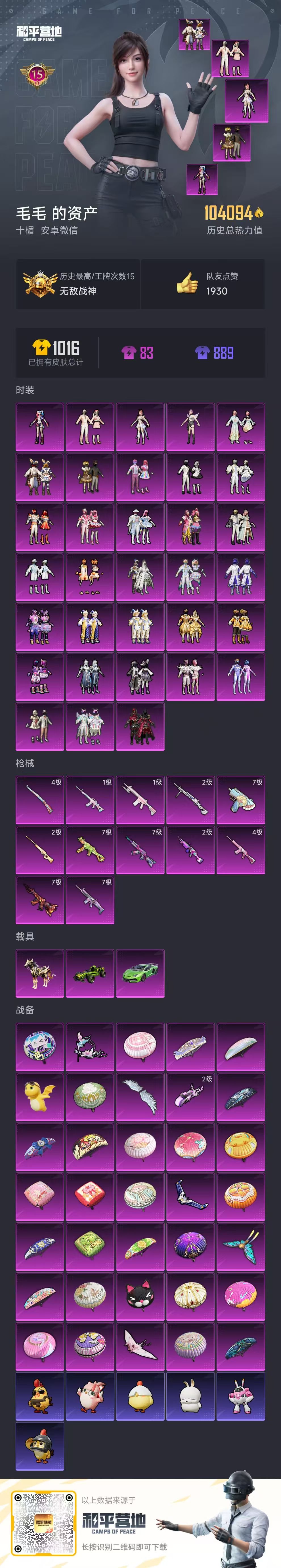 [14454072]33粉装 12特效呛 3载具 15印记 可二次 可修改实名 战神框 安全保护中 【热门装扮】:狂魅哈莉梦幻火箭新101 甜心巧克力天使彩虹糖宝贝奶油派缤纷油彩猪妹猪脸妹新星烈龙小白龙童趣迷兔馨动时刻炙焰红王冰霜白皇彩虹鹿灵山涧鹿灵吟月归客黄伞悠悠黑伞漫漫蓝莓炮弹绚金瑰梦流星咚咚精灵娃娃酣梦娃娃海盐物语海渊国主筑梦精灵橘柚倾心霞光圣骑寒光使者冰川幽秘第五大道独舞天鹅茉莉星莲影清波圣堂之誓兔兔白日梦动感兔斯基神秘黑猫软萌银虎奇迹天团胖达圆圆奶芙汪汪萌神柯基激萌罗小黑大橘为重潮萌小黄鸭迅捷狂鲨鹰眼刺客万圣娃娃呆萌铁蟹爱崽白熊深海小丑鱼好奇恐龙 【载具】:黑曜夜骑合金龙骨(绿)兰博基尼aventad svj翡翠绿僚机-萌酷奶龙 【稀有呛皮】:m16a4-晶梦幻蝶kar98k-巳巳如意m416风花雪月scar-l梦幻火箭akm炫紫旋律m249蓝莓炮弹s12k海渊国主ump45恐龙拽拽uzi筑梦精灵awm橘柚倾心m417第五大道dp-28圣堂之誓 【七级特效呛】:七级akm-炫紫旋律七级scar-l-梦幻火箭七级ump45-恐龙拽拽七级m416-风花雪月七级uzi-筑梦精灵 【四级特效呛】:四级kar98k-巳巳如意四级s12k-海渊国主 【二级特效呛】:二级dp-28-圣堂之誓二级m249-蓝莓炮弹二级awm-橘柚倾心 【一级特效呛】:一级m16a4-晶梦幻蝶一级m417-第五大道 【紫色装扮】:ss34特训套装朱霞炽焰ss31特训套装ss30特训套装云朵鹅雪绒豹ss33特训套装顶瓜瓜诡诞巡游混沌火种极速光影香榭午后田园牧歌轻风白浪ss22特训莱茵河畔ss23特训浪漫假日夏日倾情夏日音浪怒火燎原军械专家冰川特警北国孤狼千禧之恋紫芒星ss16特训冰爽风暴爆裂葡萄龙宫之主暴风机械师瑞龙福将团圆交子醒狮腾龙ss17特训炫光向阳魔力冰咖时空追击者月蓝流光梦起落英暗夜傀儡绿翡凌光异彩先驱甜心亚梦虚音幻奏猎梦纪元ss20特训墨染幽兰梦幻奶油娇憨猪猪萌趣咩咩ss21特训缤纷焰火极速竞梦ss18特训水晶王族智慧隐士