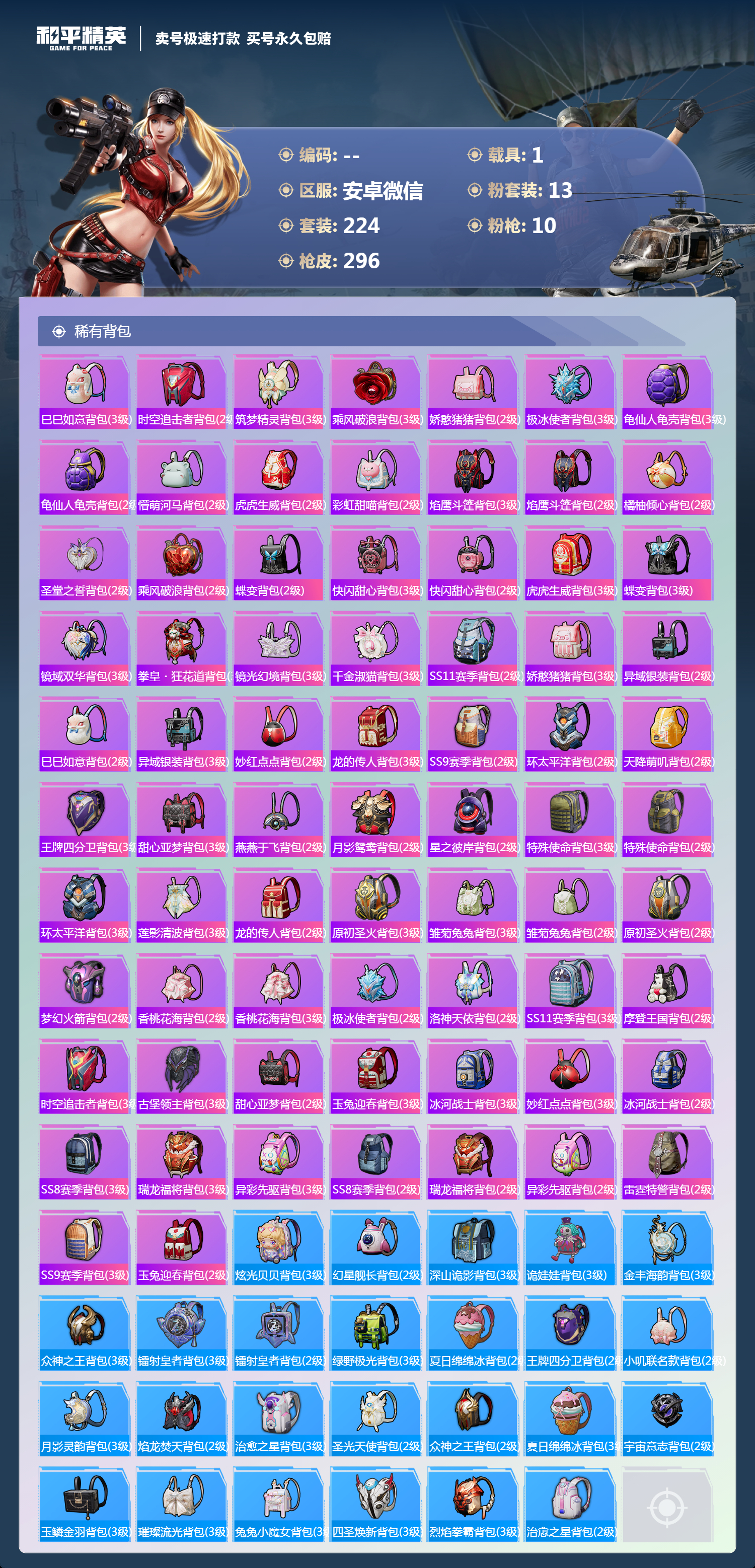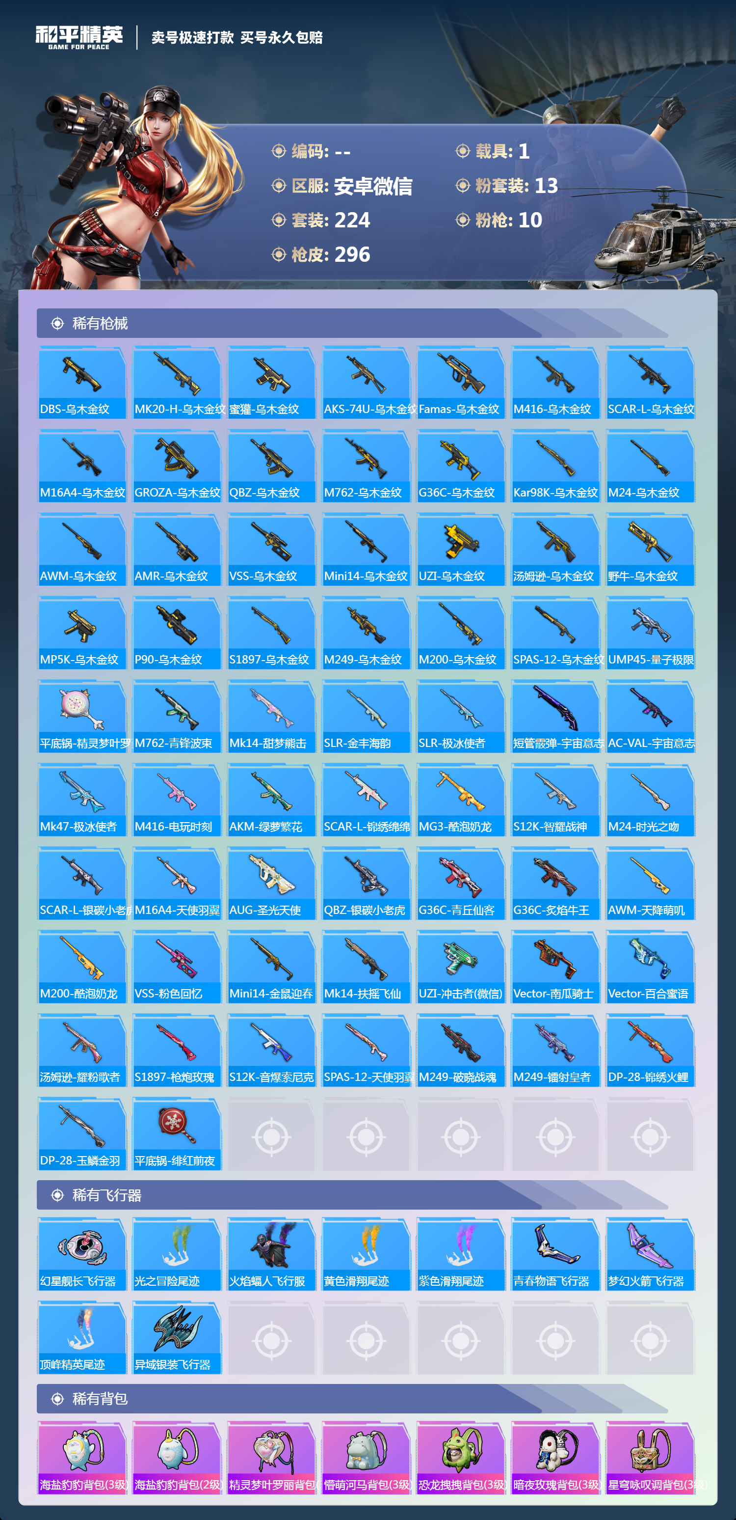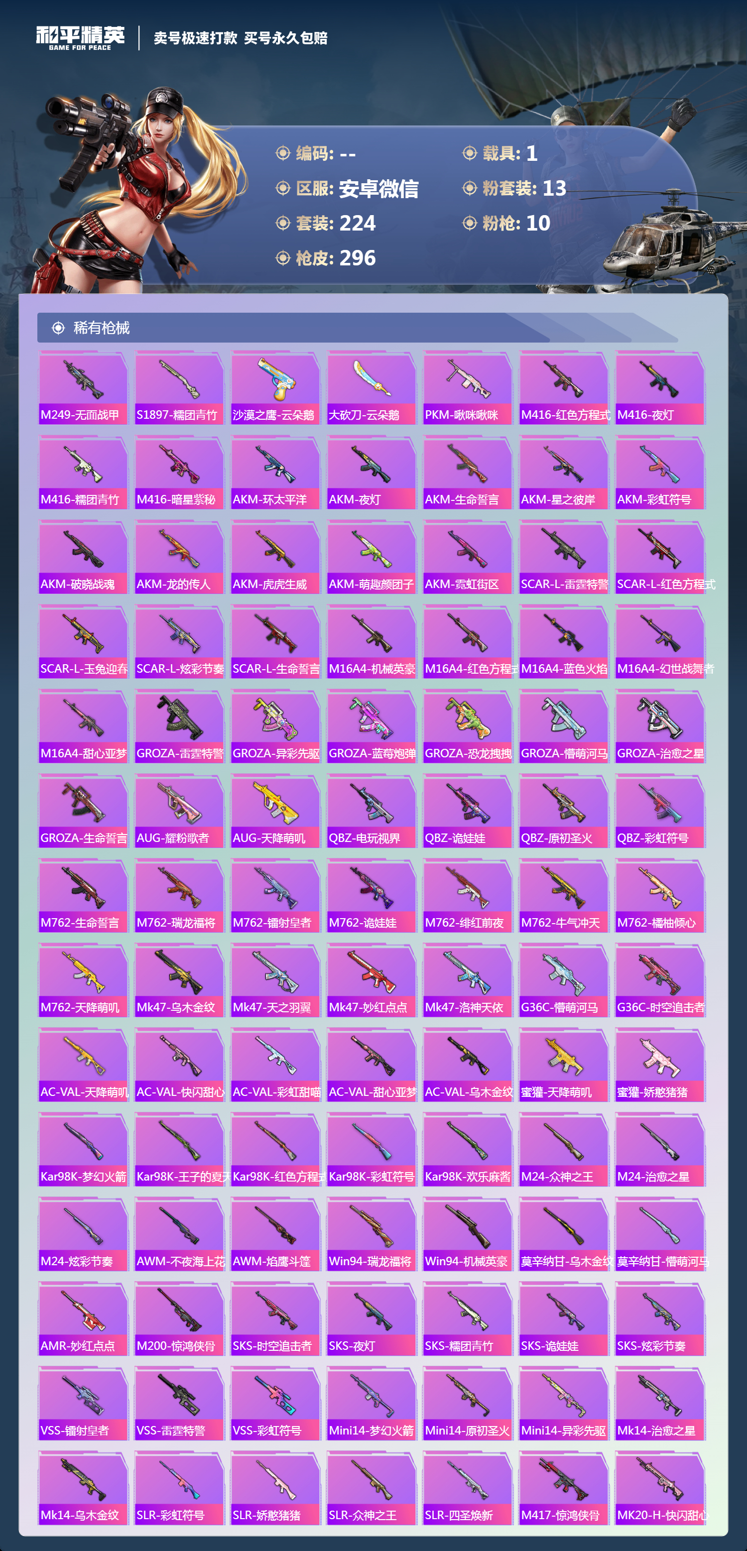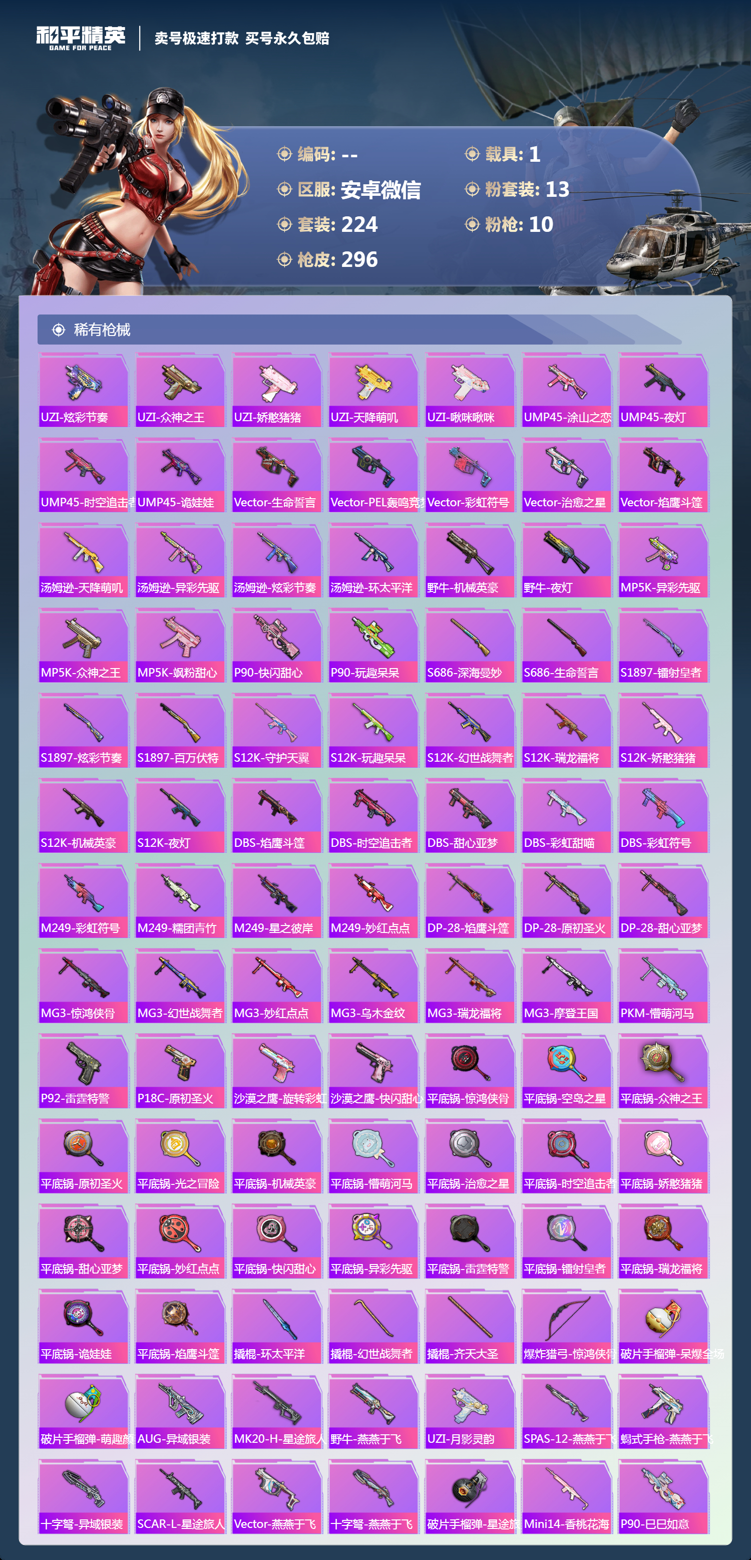 1载具-224套装-296呛皮-【呛皮号加1载具】安卓微信-2王牌印记-13粉装-10特效呛-1载具-94887热力值-224套装-296呛皮-0卓越印记-0传奇印记【13粉装】梦幻火箭小叽联名款新星烈龙千金淑猫