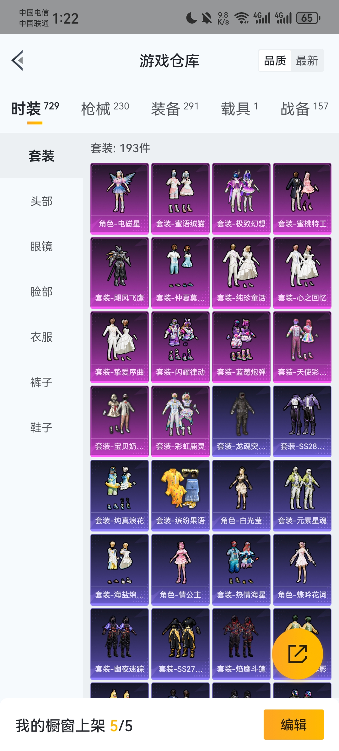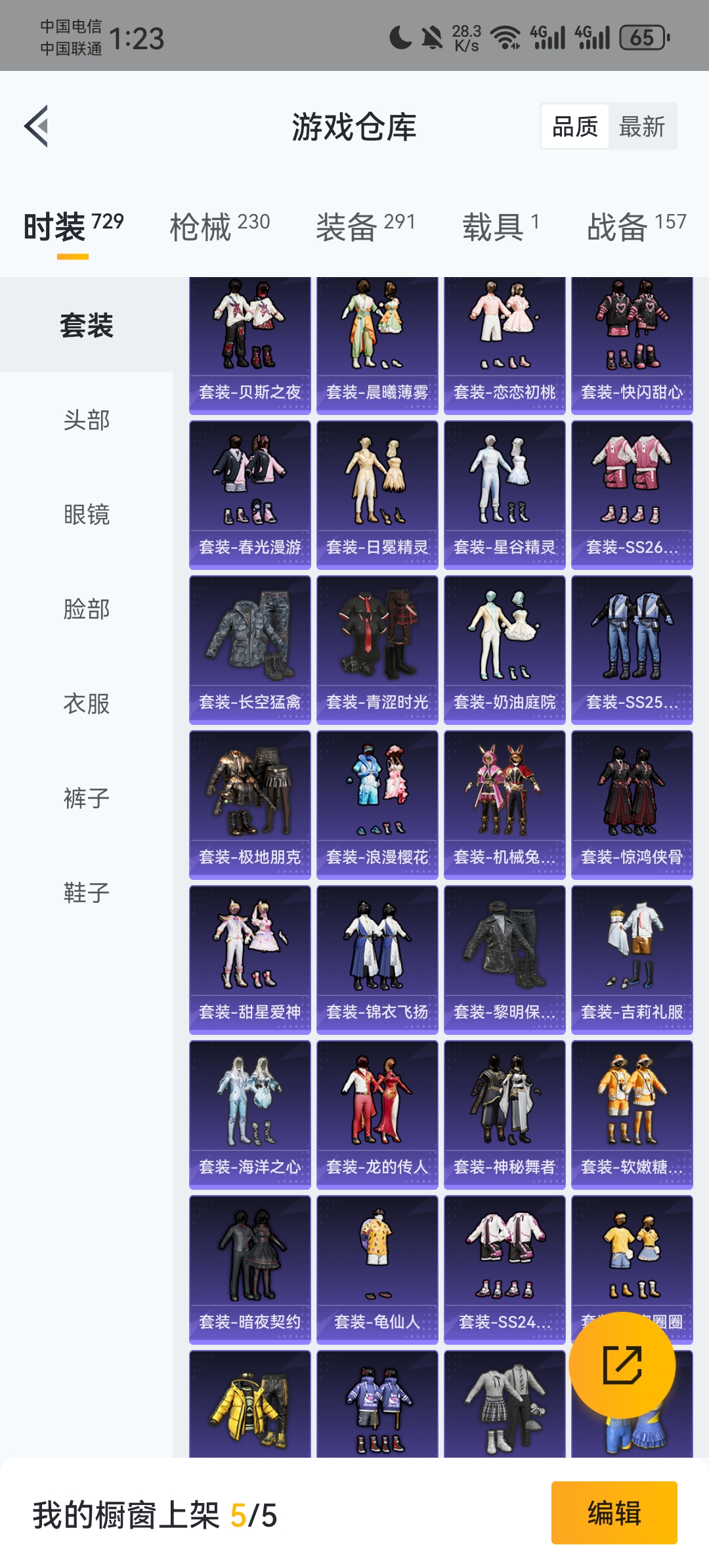 1载具-193套装-230呛皮-套装-雪山精英套装-宝贝奶油派套装-天使彩虹糖套装-极致幻想套装-彩虹鹿灵套装-蜜桃特工套装-飓风飞鹰套装-蓝莓炮弹套装-闪耀律动套装-纯珍童话套装-心之回忆套装-挚爱序曲套装-仲夏莫吉托套装-蜜语绒猫套装-老实芭蕉角色-电磁星akm-绿萝繁花scar-l-锦绣绵绵