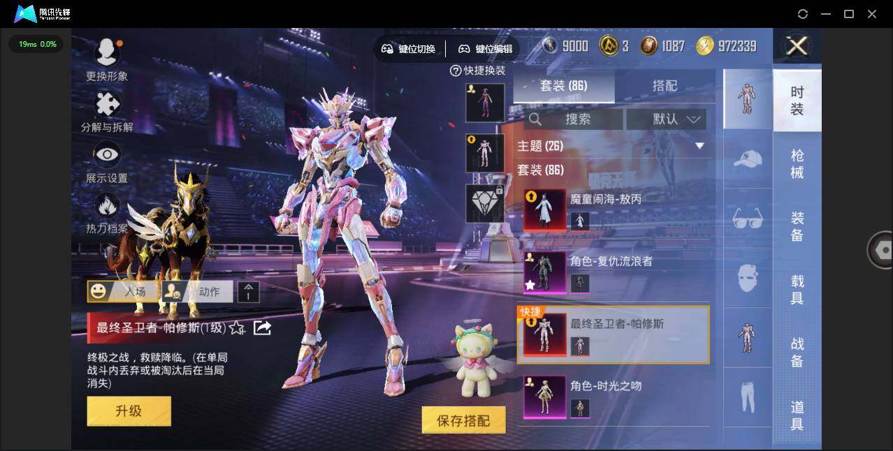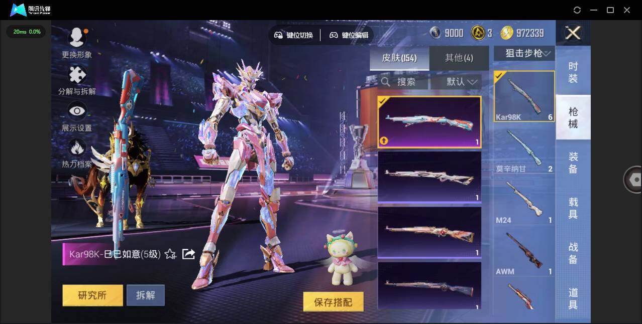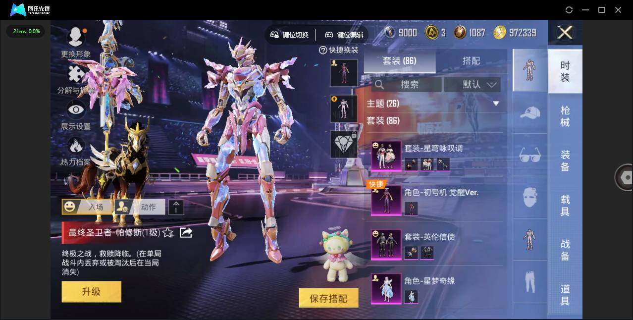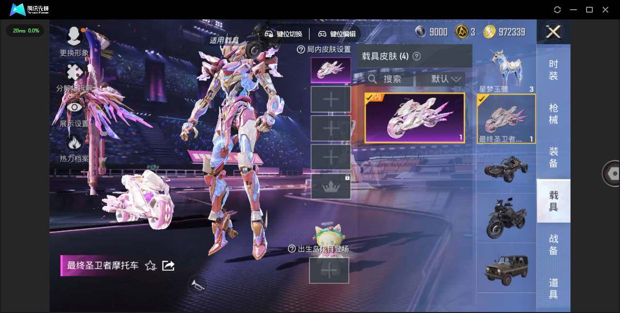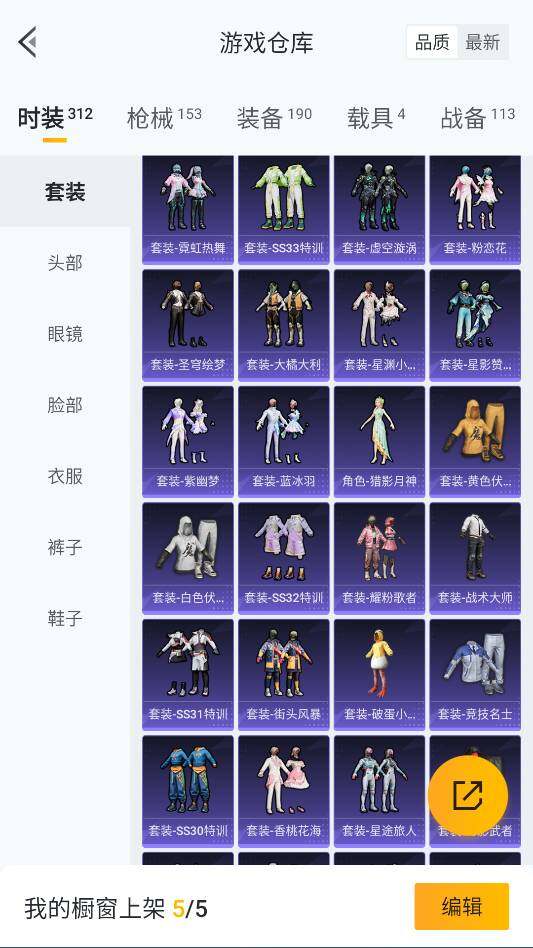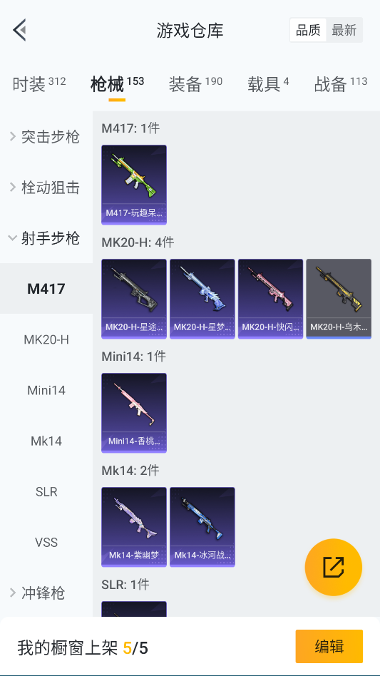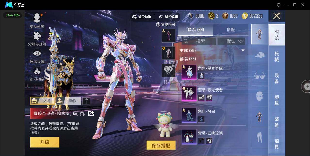 4载具-312套装-153呛皮-时装数: 86 载具数: 4 呛械数: 153 战备数: 113 热门装扮: 寒光使者复仇流浪者星梦奇缘初号机 觉醒ver.英伦信使 载具: 星梦玉骢 稀有呛皮: 七级mg3-梦幻舞会 五级scar-l-锦绣绵绵五级akm-绿萝繁花五级kar98k-巳巳如意五级dp-28-豹影疾电三级