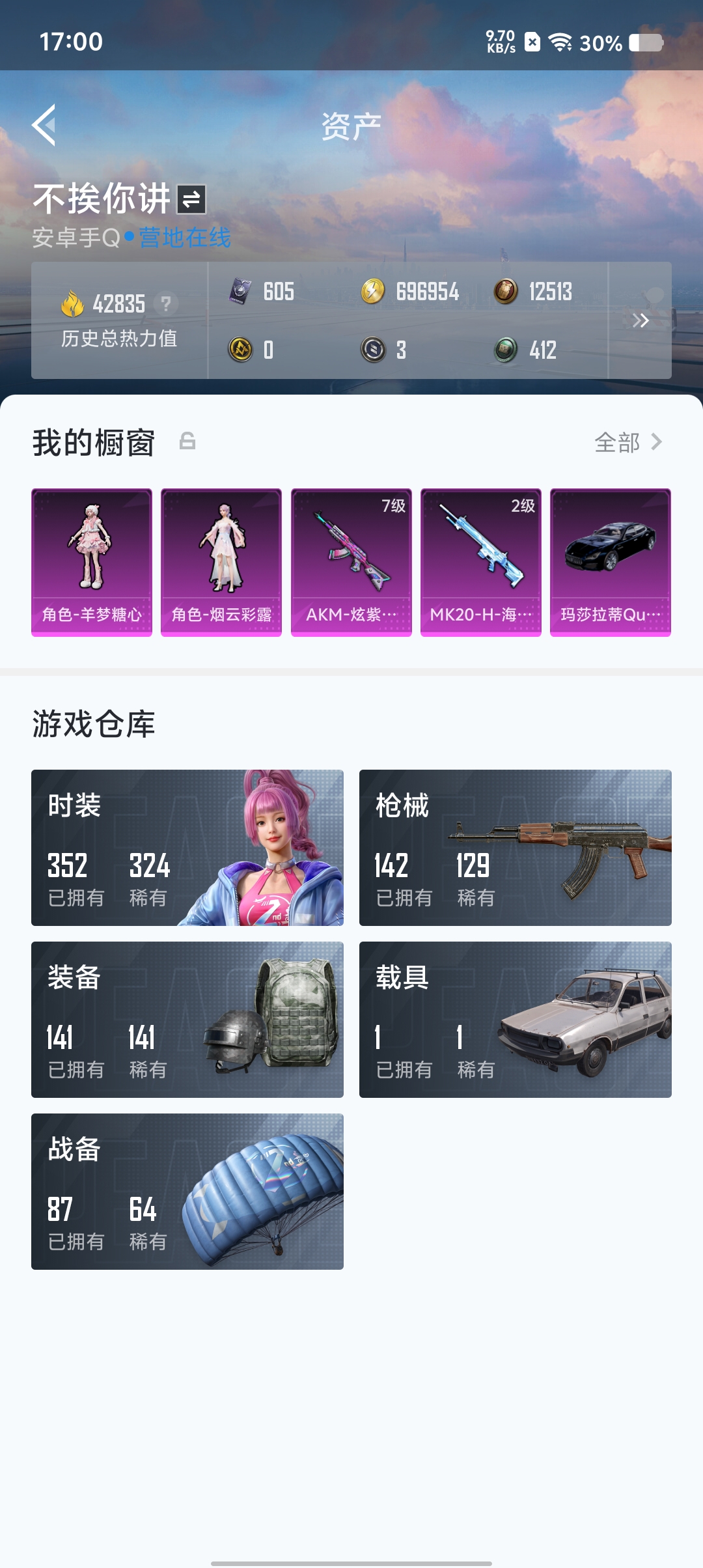 1载具-92套装-142呛皮-4.28万热力值,角色-军刀雅典娜套装-未来歌姬角色-圣堂之誓套装-老实芭蕉角色-烟云彩露角色-羊梦糖心,akm-炫紫旋律kar98k-巳巳如意m24-莲影清波mk20-h-海螺星光dp-28-豹影疾电,玛莎拉蒂quattropte夜幕蓝,异域银装飞行器至尊龙雀飞行服,9