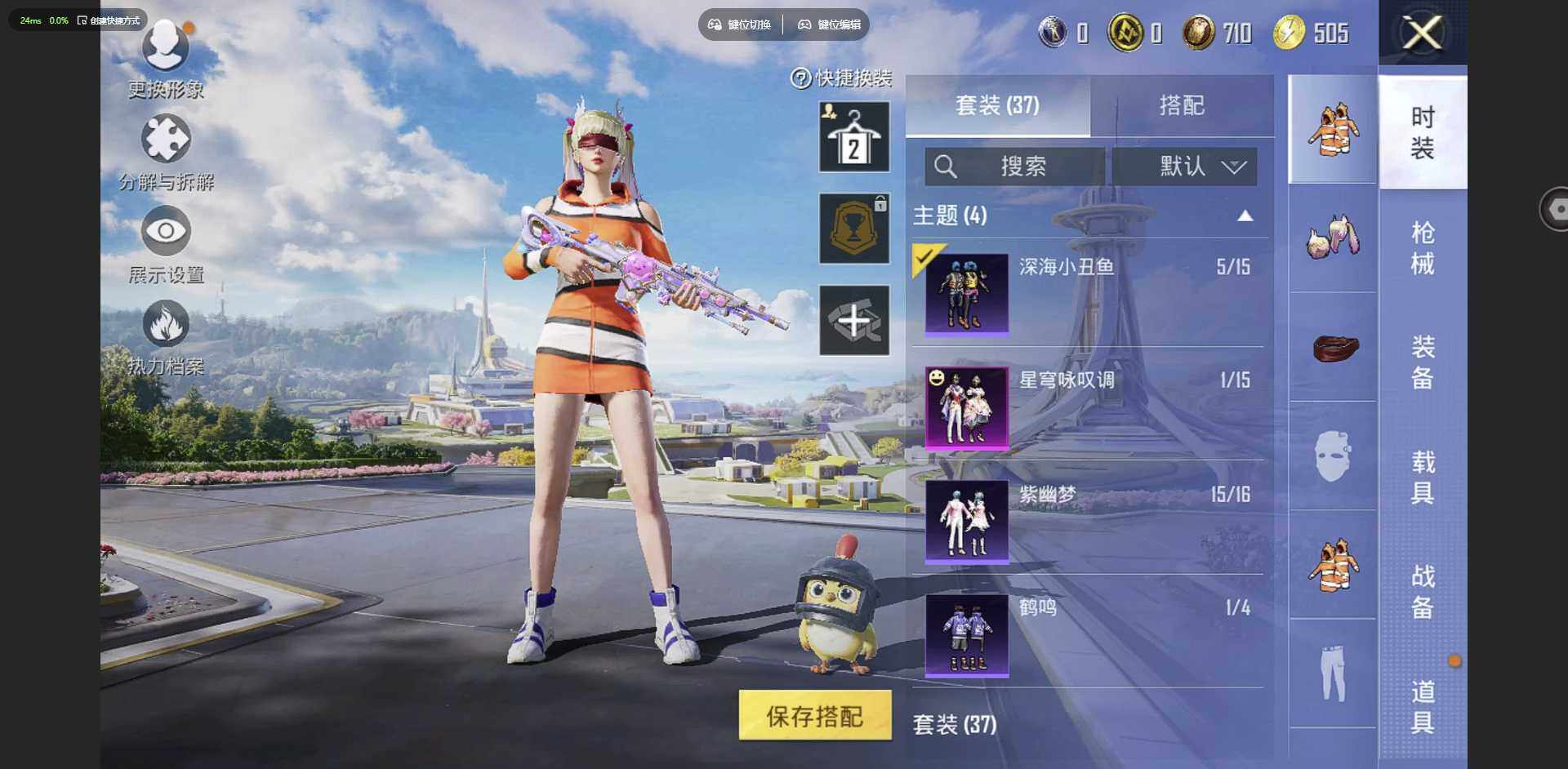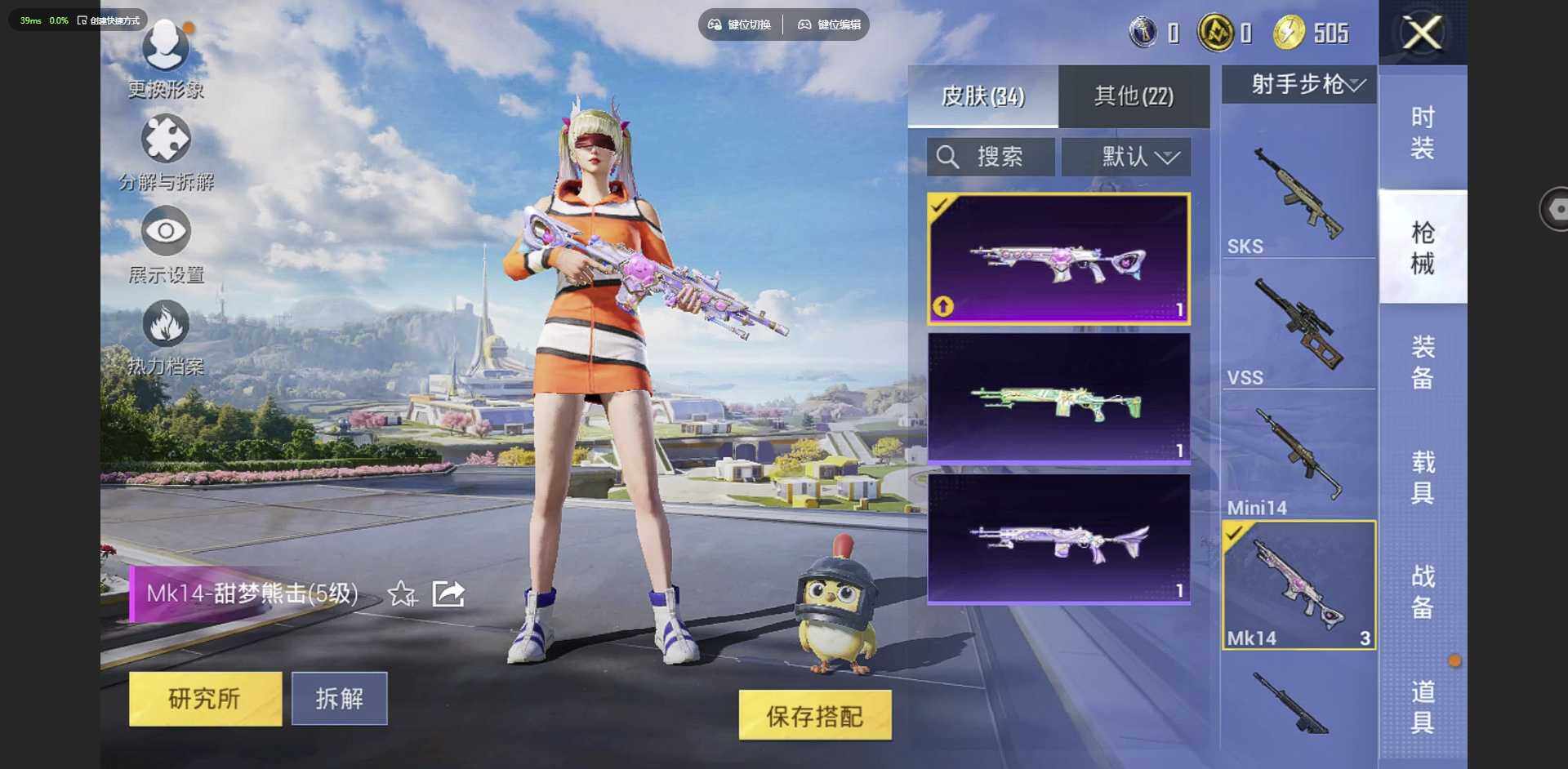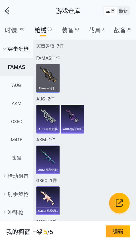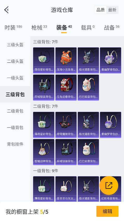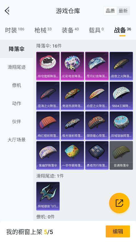 0载具-186套装-33呛皮-时装数: 37 呛械数: 33 战备数: 36 稀有呛皮: 五级mk14-甜梦熊击五级dp-28-豹影疾电,四级kar98k-巳巳如意