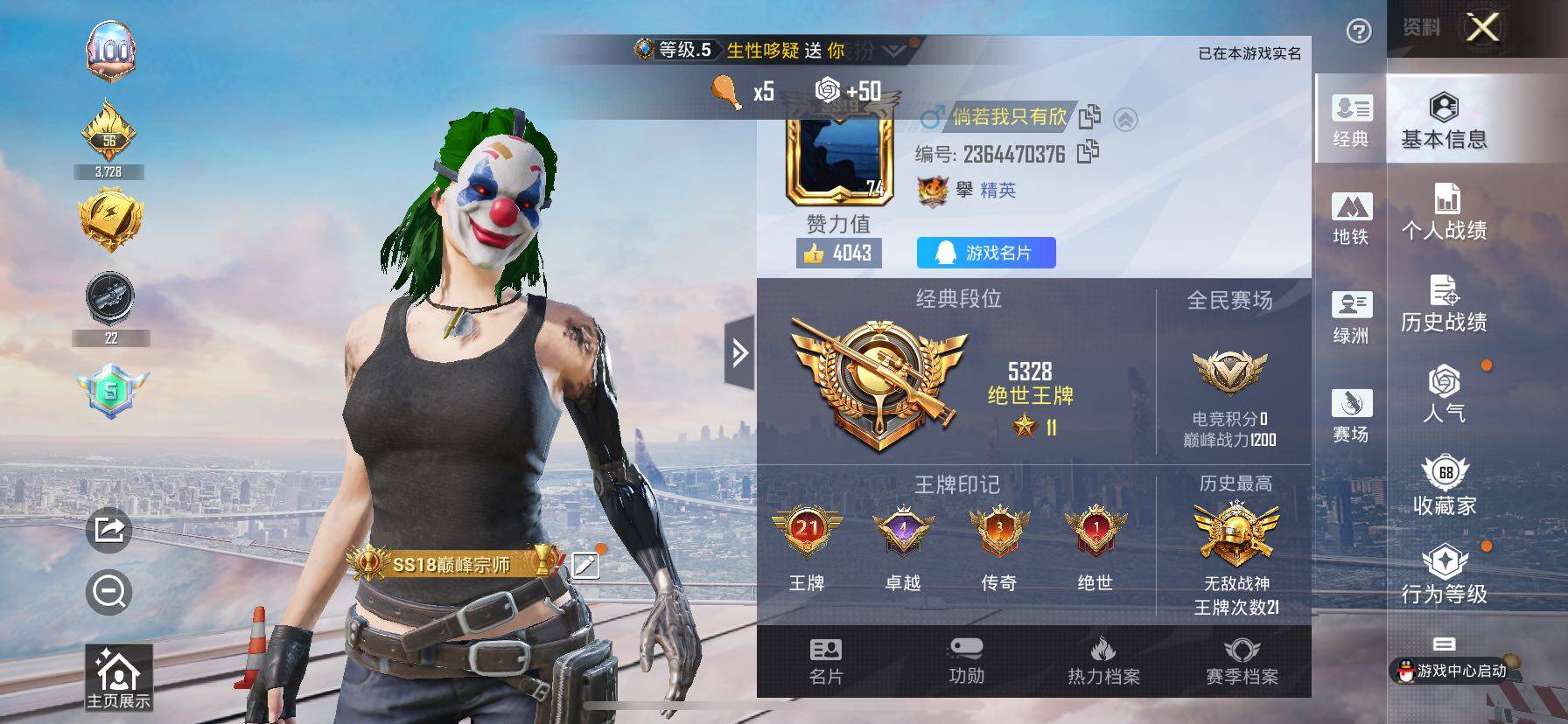 【战神框 都市 天网 胖达 小丑 哥特】c18699-【不可二次】【因赛季更新游戏段付以上号为准!】 苹果q-4稀有7粉装6特效呛18热门194套装237呛皮 21印记 历史无敌战神 【4稀有】 akm-缤纷海域 都市猎人 浪漫天命 天网终结者 【7粉装】 美琪 美雪 绯穹魔姬 怪诞乔克 莲影清波 俏皮狐尾 暗夜玫瑰 【6特效呛】 m416-五爪金龙 7级 kar98k-巳巳