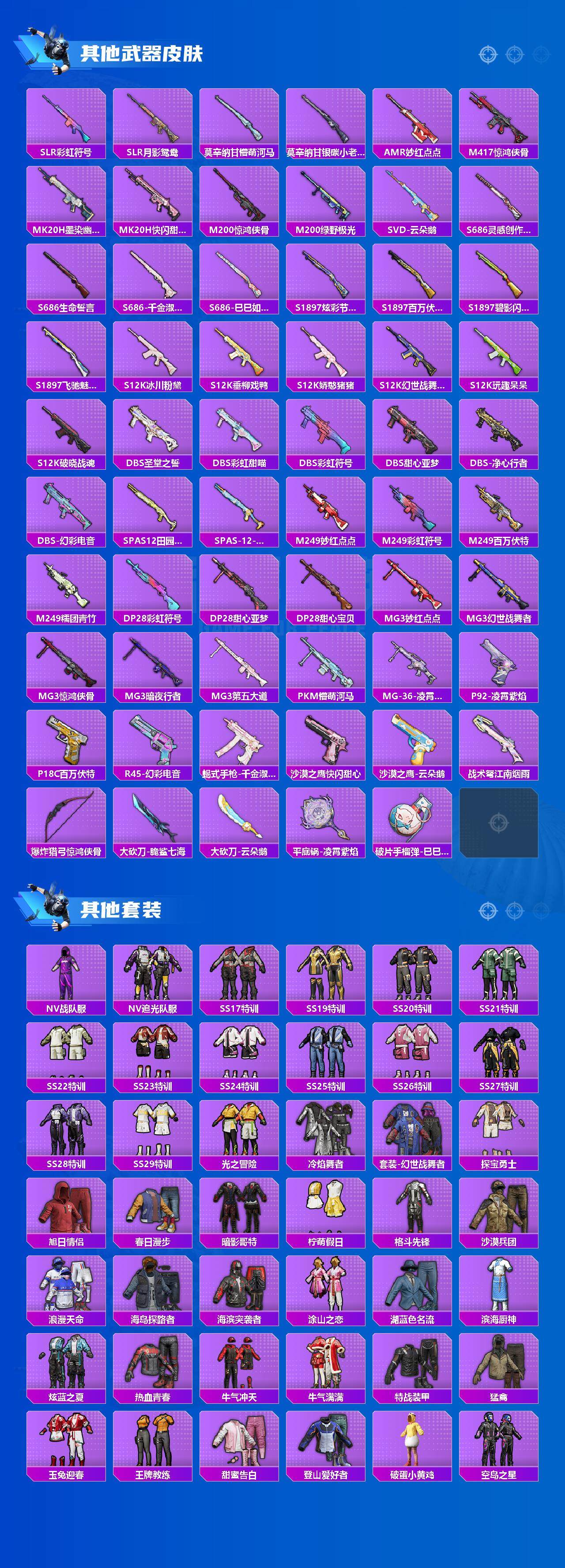 1载具-178套装-243呛皮-178套装/呛械7/装备328/载具1/战备178/王牌印记16/热力值83015/七级m416-心之恋语/m416-风花雪月/六级m416-超新星/五级kar98k-巳巳如意/七级spas-12-音爆索尼克/七级m249-彩虹甜喵/五级dp-28-豹影疾电/粉装-梦幻火箭/套装-浪漫天命/都市猎人/胖达团团/2b战斗服款/2p战斗服款/套装-龟仙人/套装-暗影哥特/套装-粉红小猪/星梦玉骢/