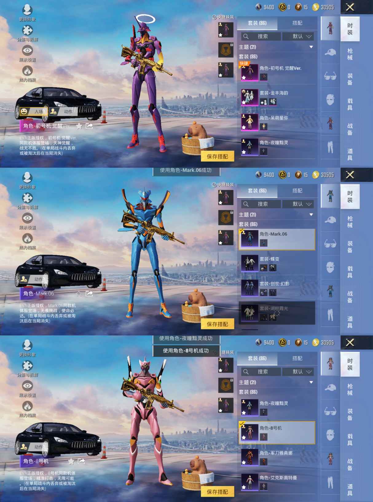 1载具-86套装-133呛皮-【3粉4特效1载具三色螳螂】安卓q-1载具3粉装4特效呛9热门86套装133呛皮 38539热力值 6印记 历史超级王牌8星 【1载具】 玛莎拉蒂q蓝色 【3粉装】 觉醒初号机 金丰海韵 呆萌星弥 【4特效呛】 famas-觉醒初号机 5级 m416-五爪金龙 6级 dp-28-豹影疾电 5级 vect-环太平洋 4级 【9热门】 8号机 mark.06 鹰