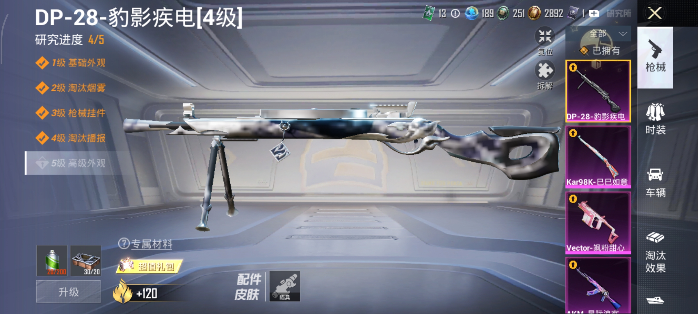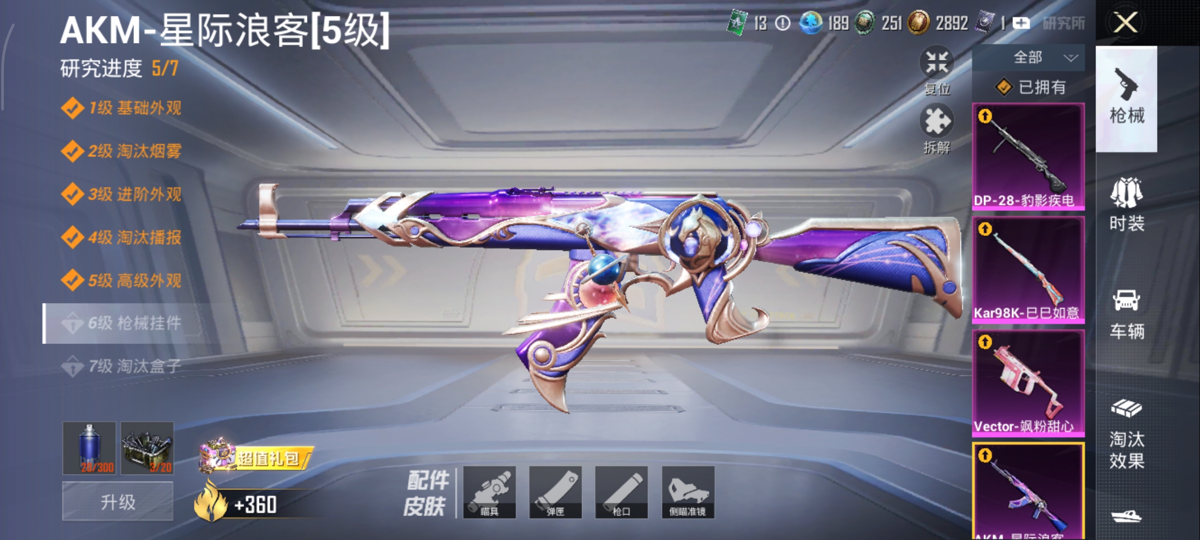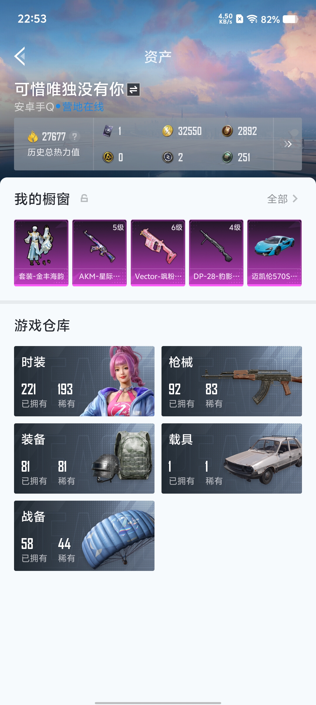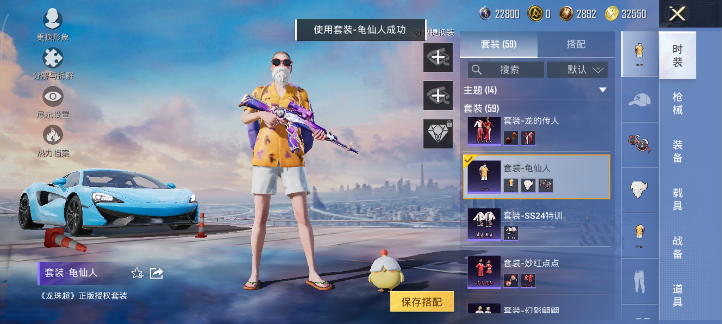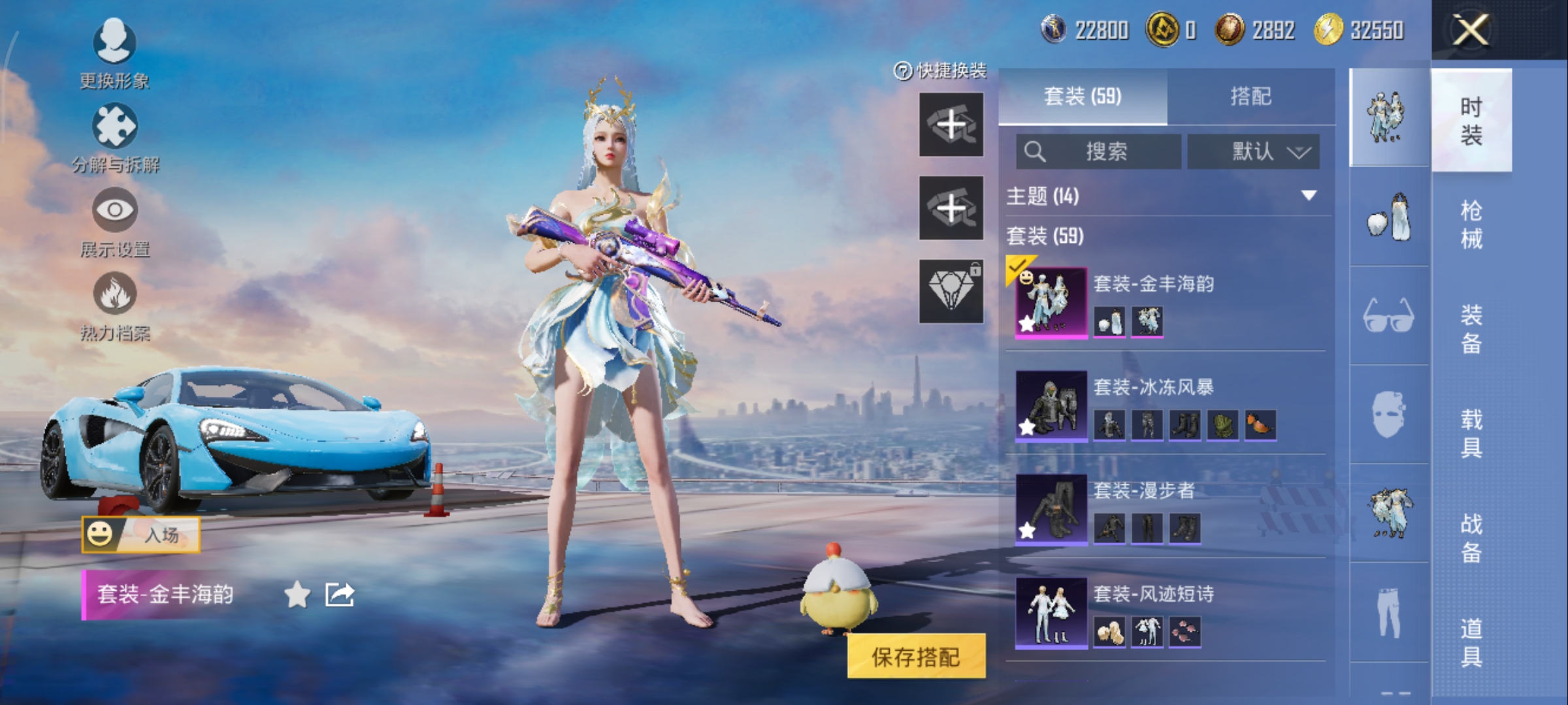 1载具-59套装-92呛皮-套装-金丰海韵,akm-星际浪客kar98k-巳巳如意vect-飒粉甜心dp-28-豹影疾电,迈凯伦570s天际蓝,鸡智如我飞行器,编号:sxrfq54