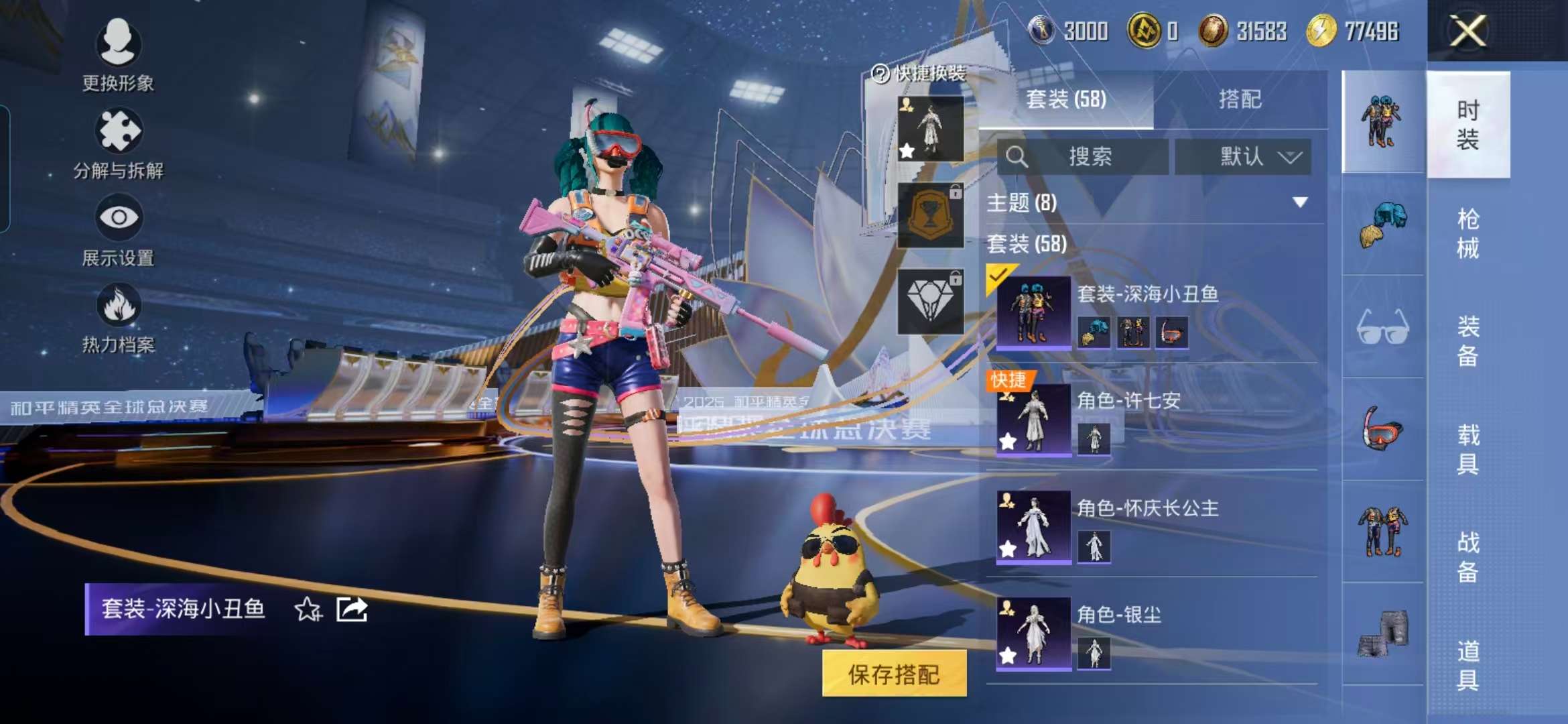 【身法深海小丑鱼 6满级特效呛】 安卓q-6特效呛4热门58套装85呛皮 23511热力值 3印记 历史卓越王牌9星 【6特效呛】 scar-l-锦绣绵绵 5级 m416-电玩时刻 5级 kar98k-巳巳如意 5级 dp-28-豹影疾电 5级 aug-暖羊咩咩 5级 groza-镜光银凌 5级 【4热门】 龟仙人 深海小丑鱼 破蛋小黄鸡 m762-奇异